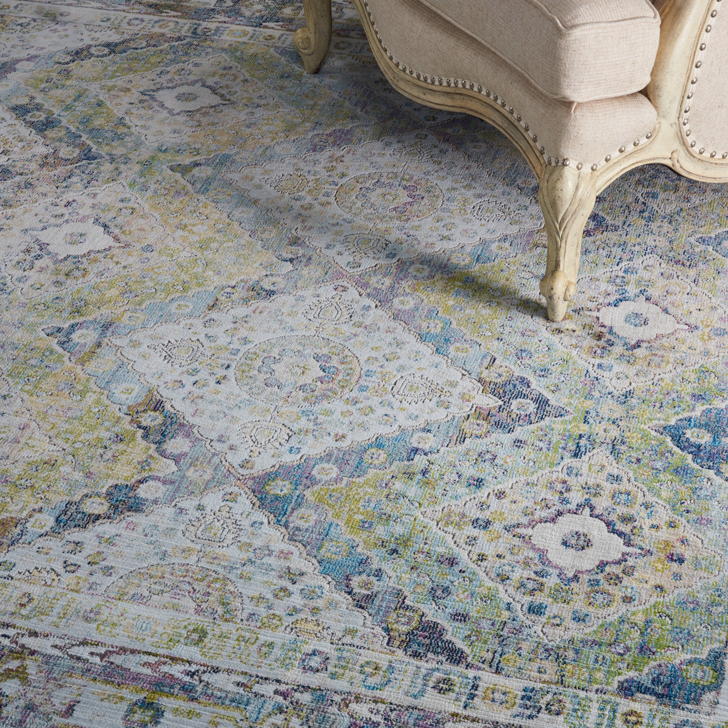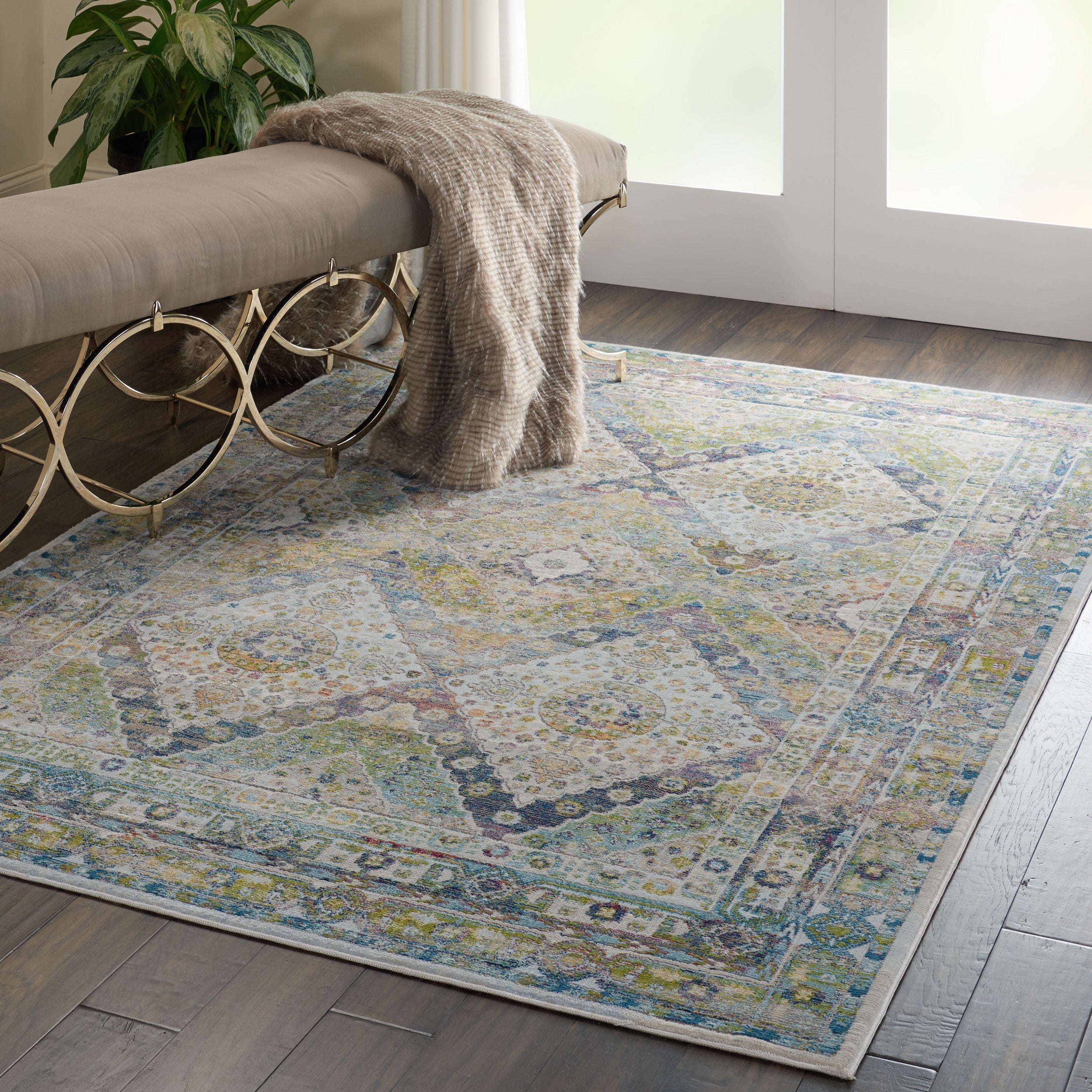 A rug isn't just a pretty piece of art for your home; it also serves the important role of making your home more cozy and comfortable; which is achieved elegantly by our Nourison Ankara Global ANR07 Blue Green Rug. The beauty and regal appeal of a vintage Persian rug is illustrated by this stunning rug. Distressed gold and green tones on a silky distressed pile bring relaxation and comfort into this unforgettably exotic rug. It is made from Polypropylene-Polyester blend which makes it highly durable, soft, hard-wearing and easy to clean. These rugs feature intricate distressed patterns ranging from dense floral to traditional center medallions with a silky texture and sheen emphasized by subtle high-low carved pile.