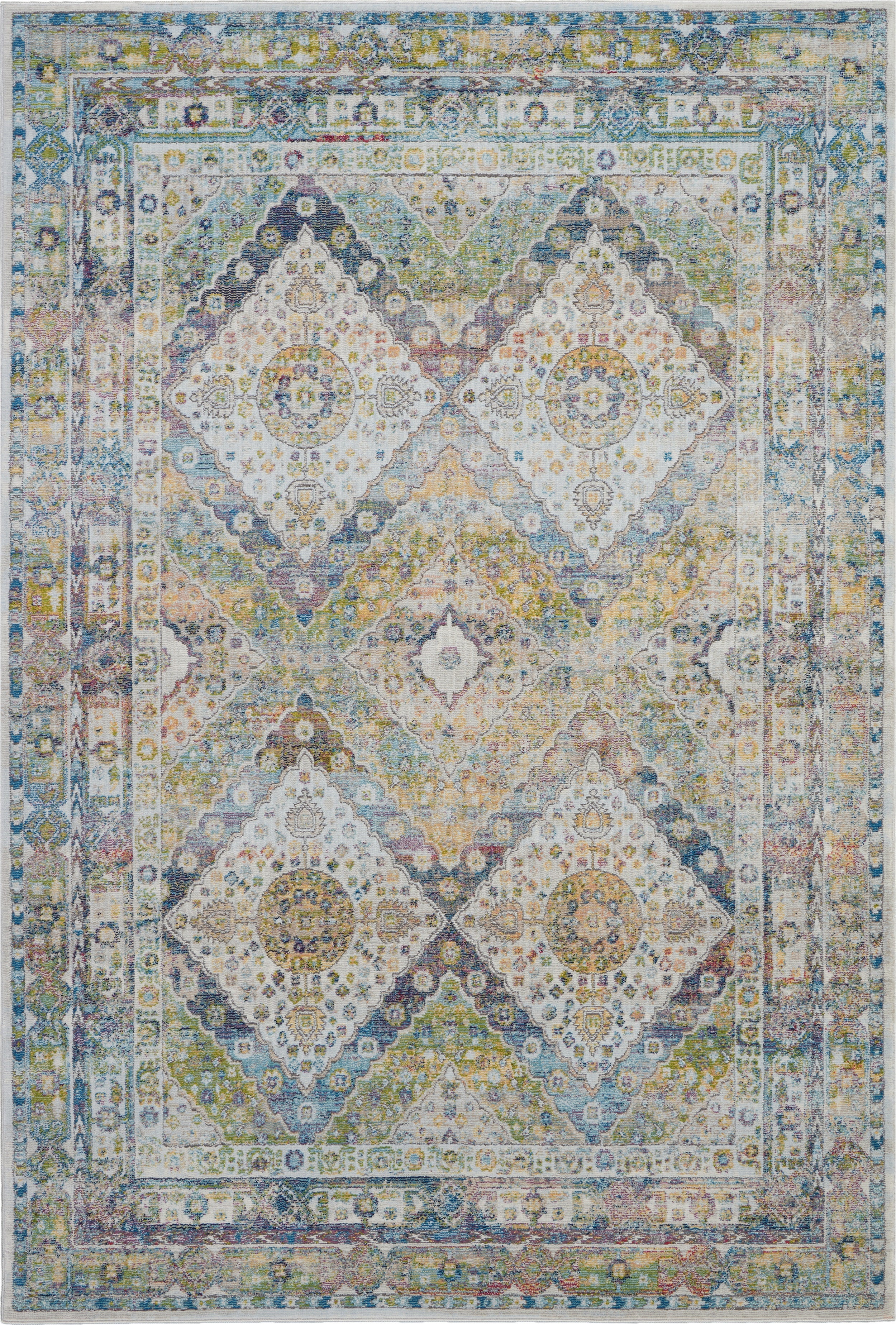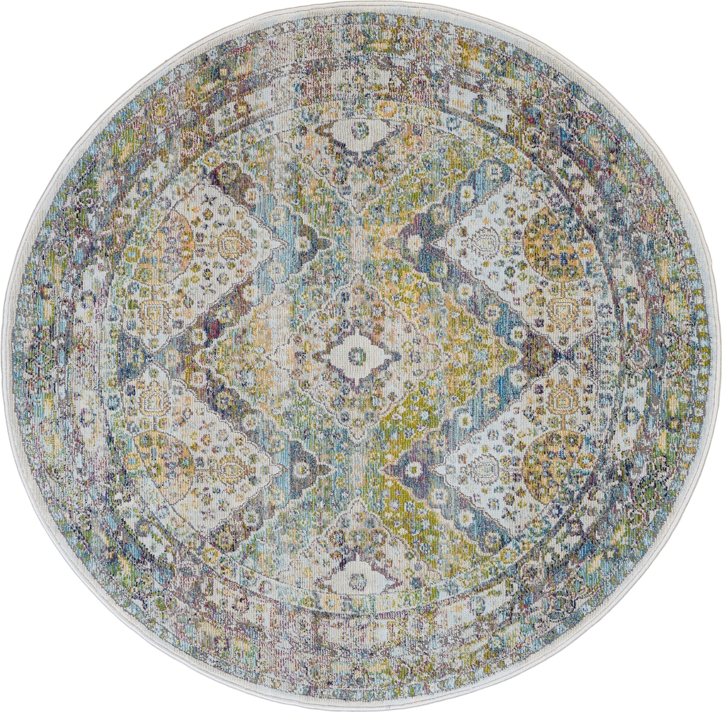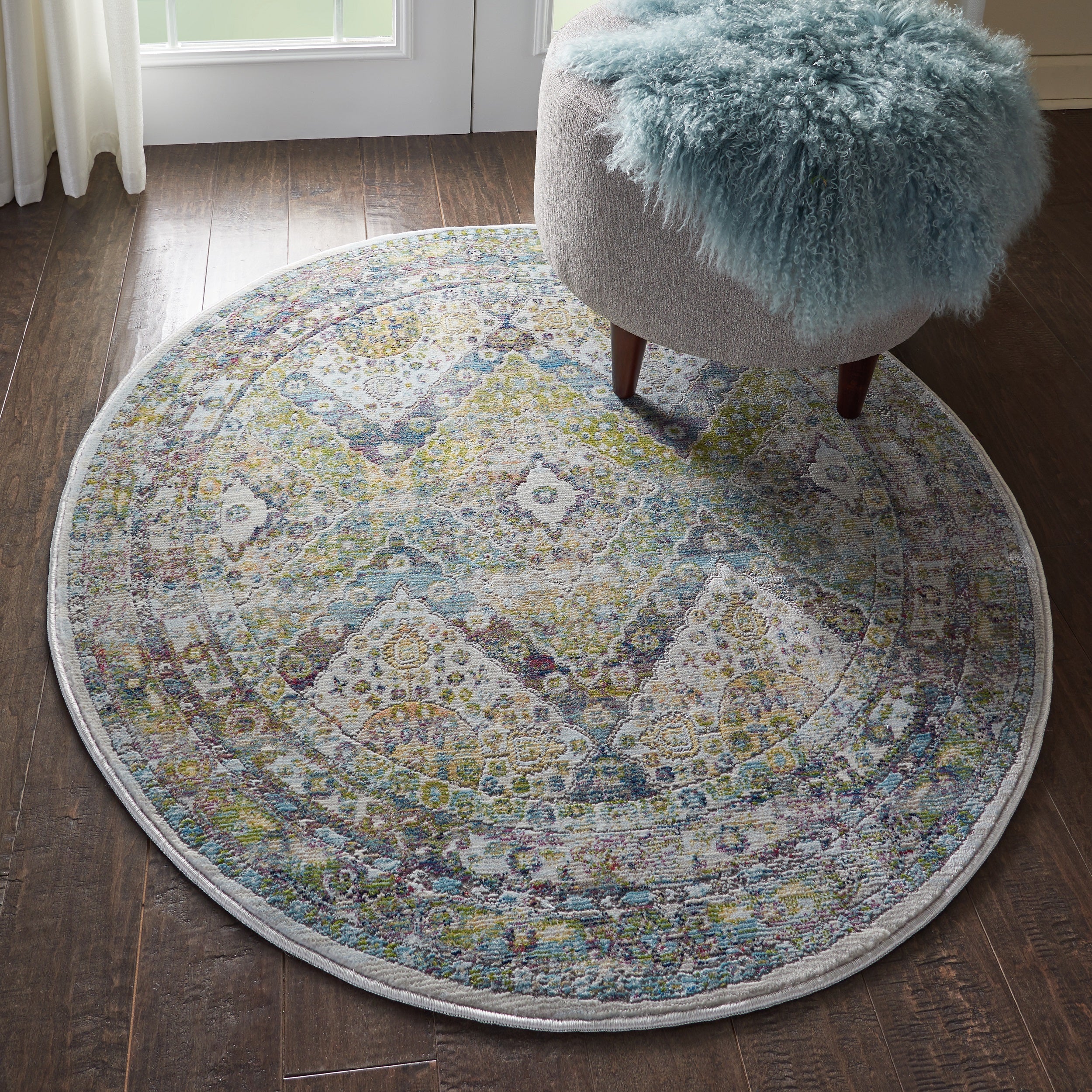 Home Shop Circle Rugs Nourison Ankara Vintage Antique Traditional ANR07 Rug Runner Round in Blue Green