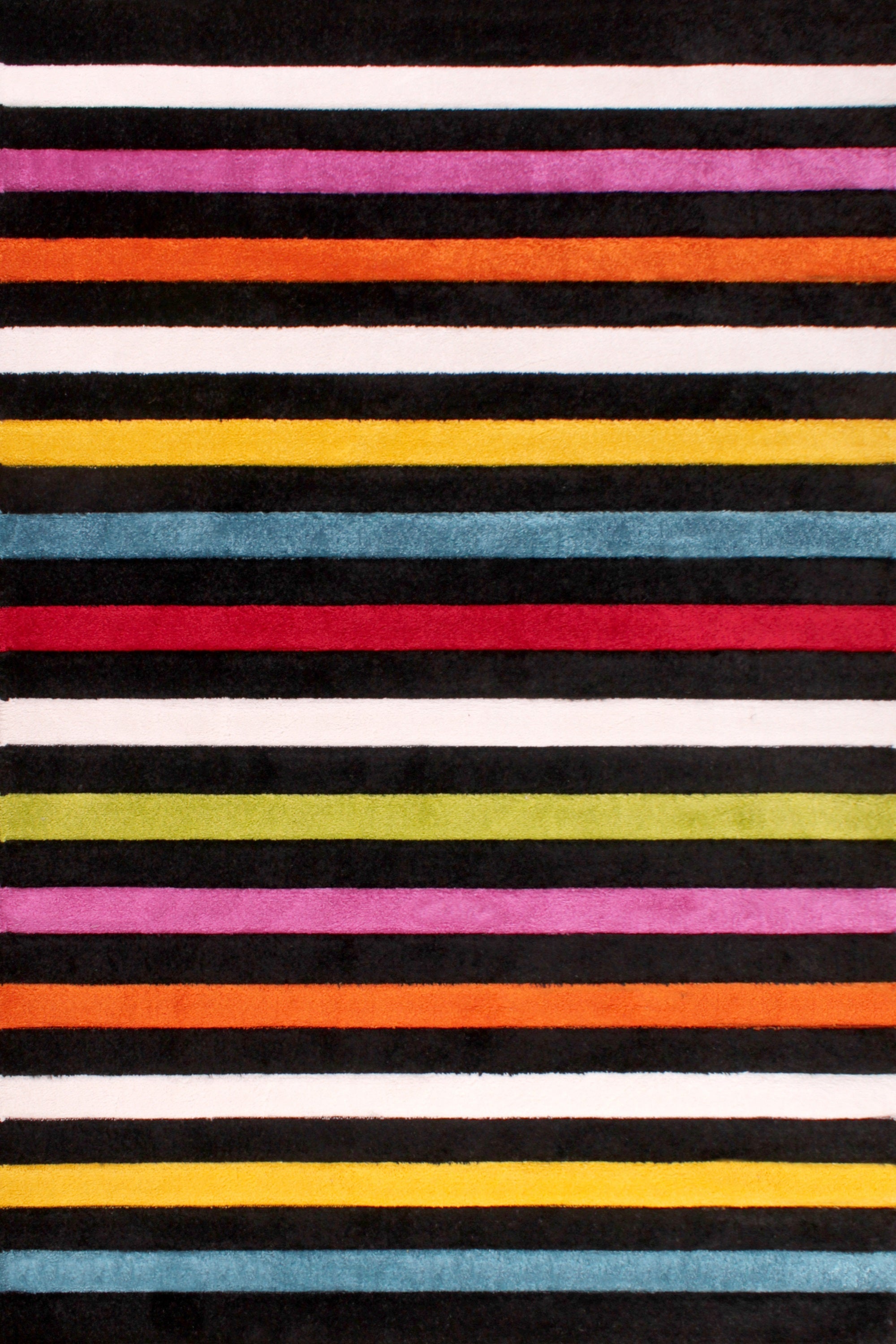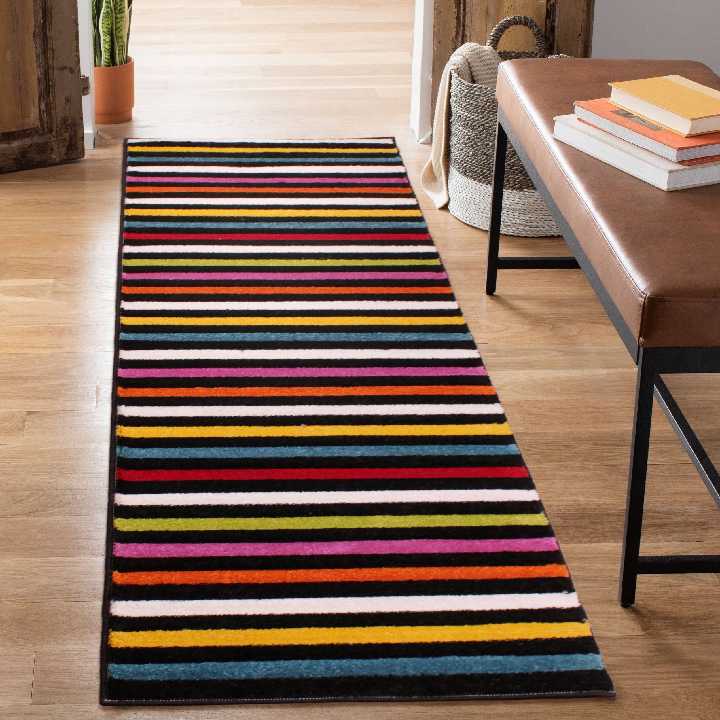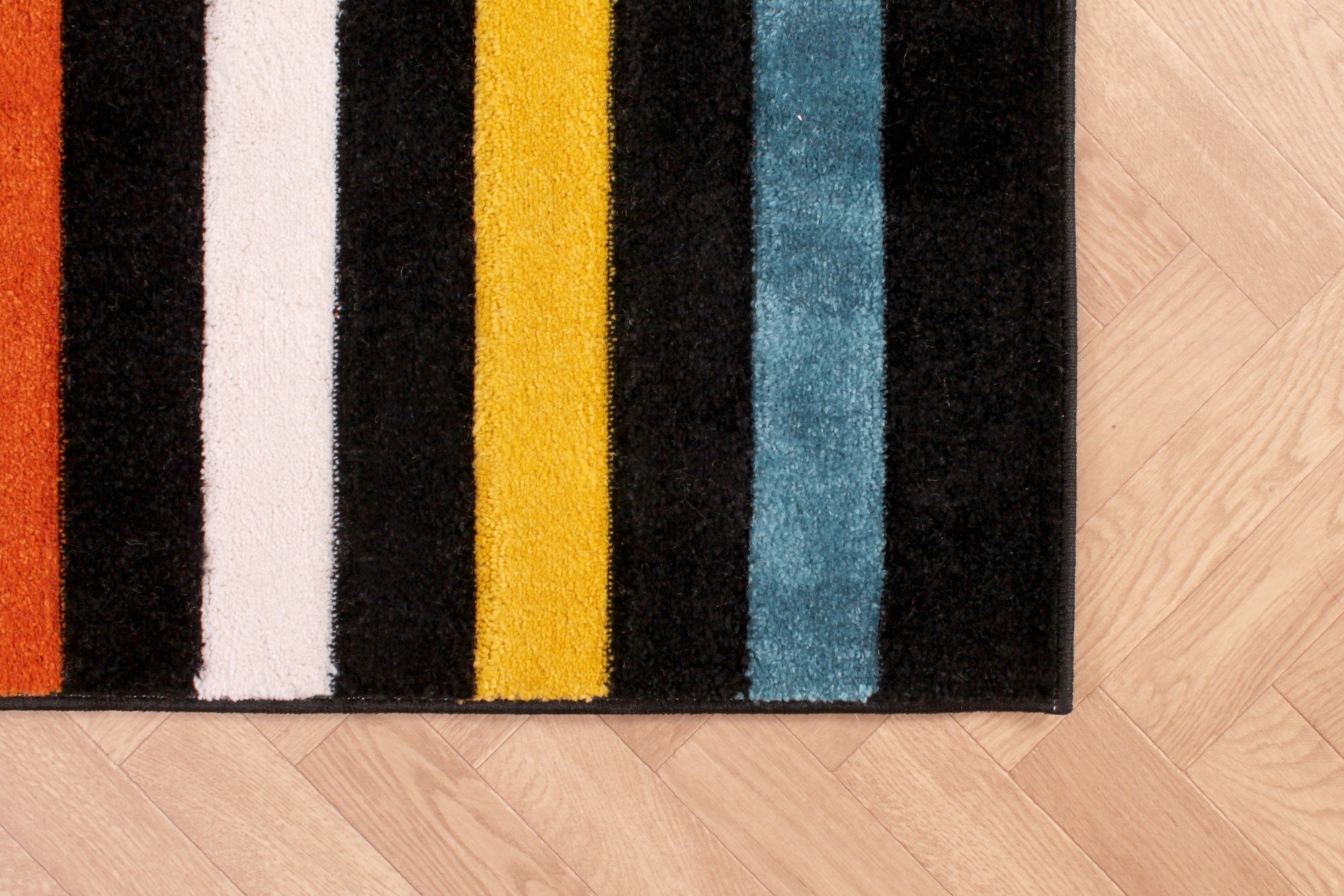 Spectra Carved Stilo Geometric Striped Rainbow Bright Multi Coloured Soft Rug Runner Round