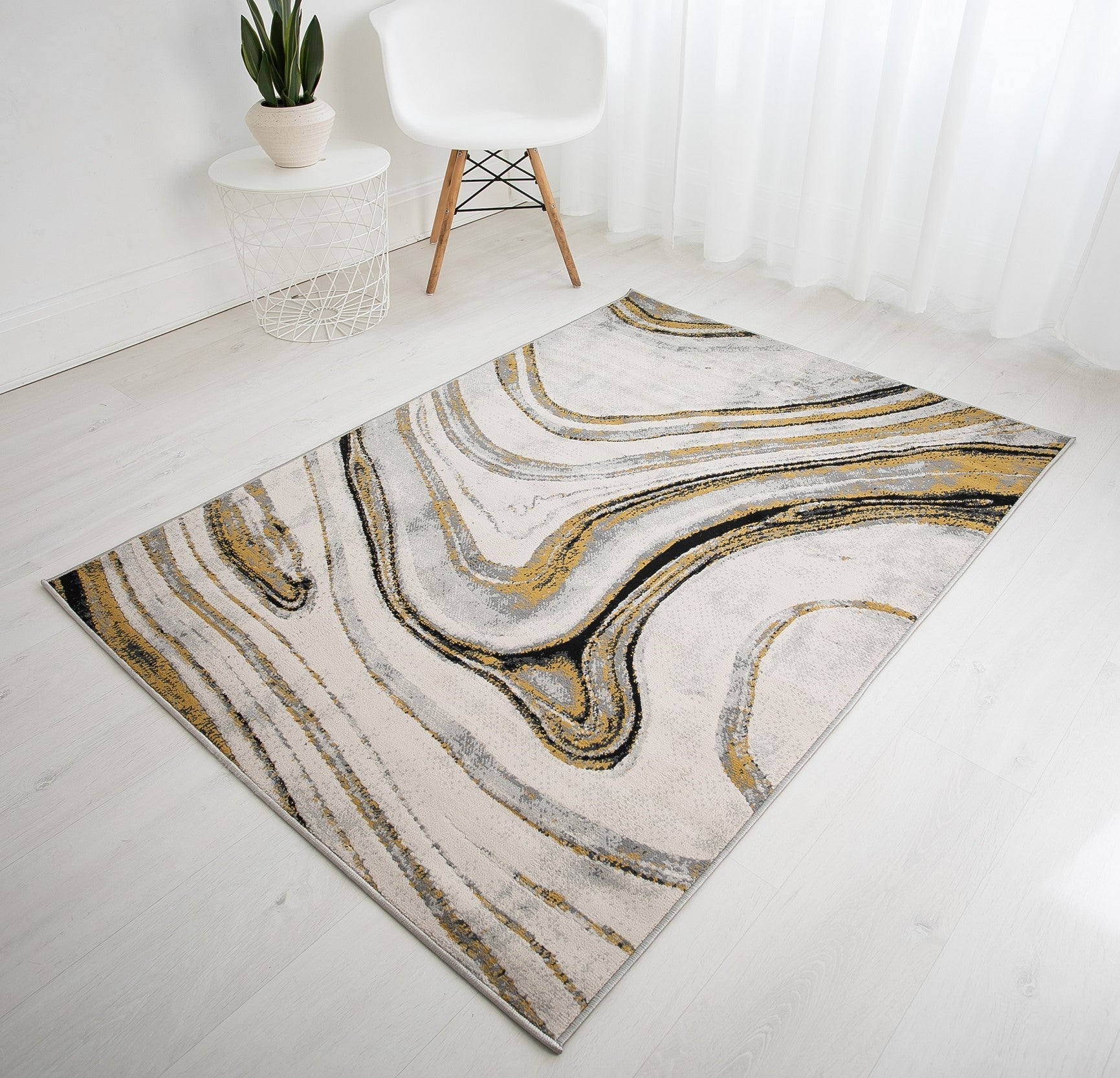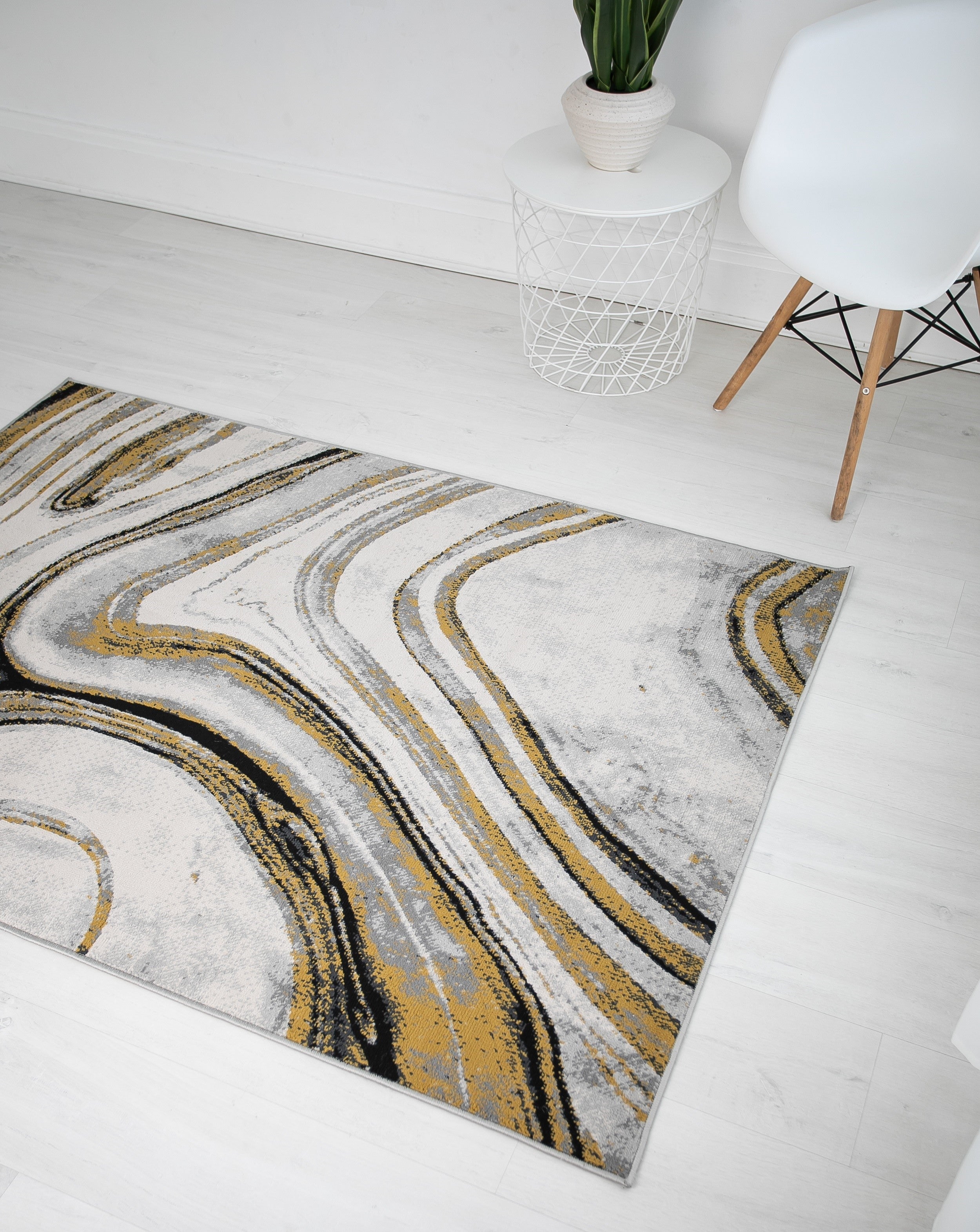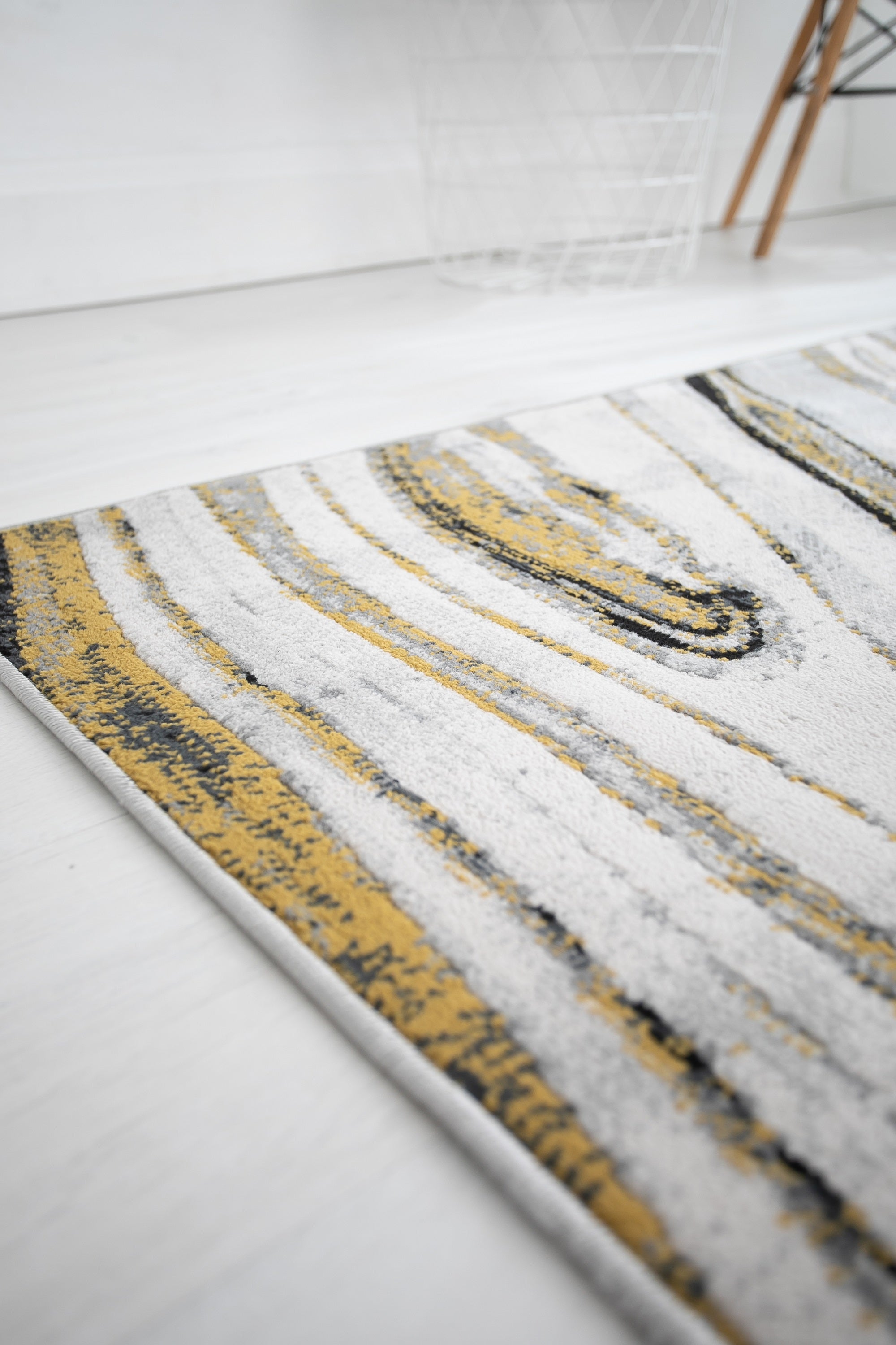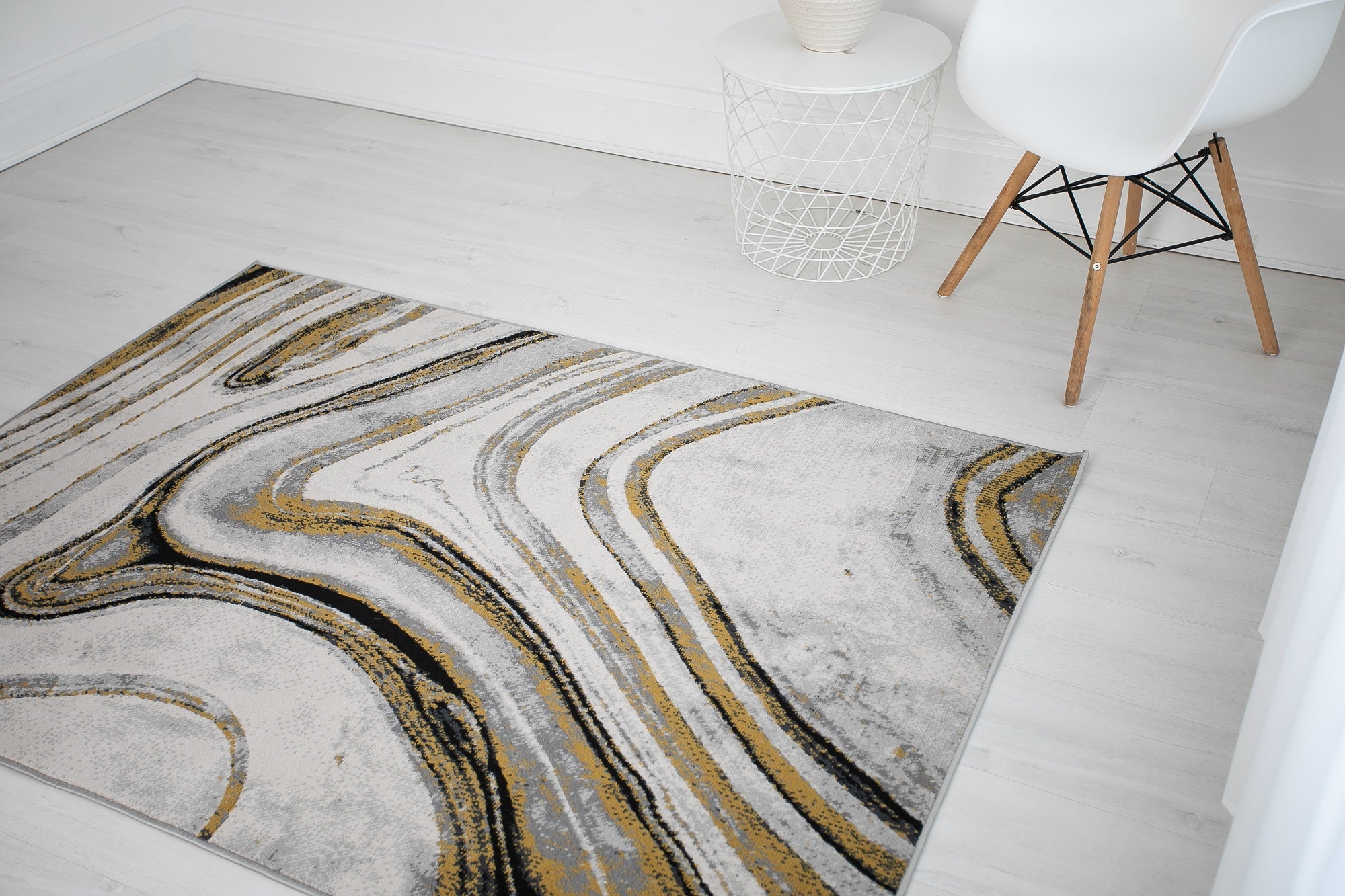 Balletto 18BA Rug Modern Abstract Living Room Bedroom Soft Rugs in Grey and Ochre