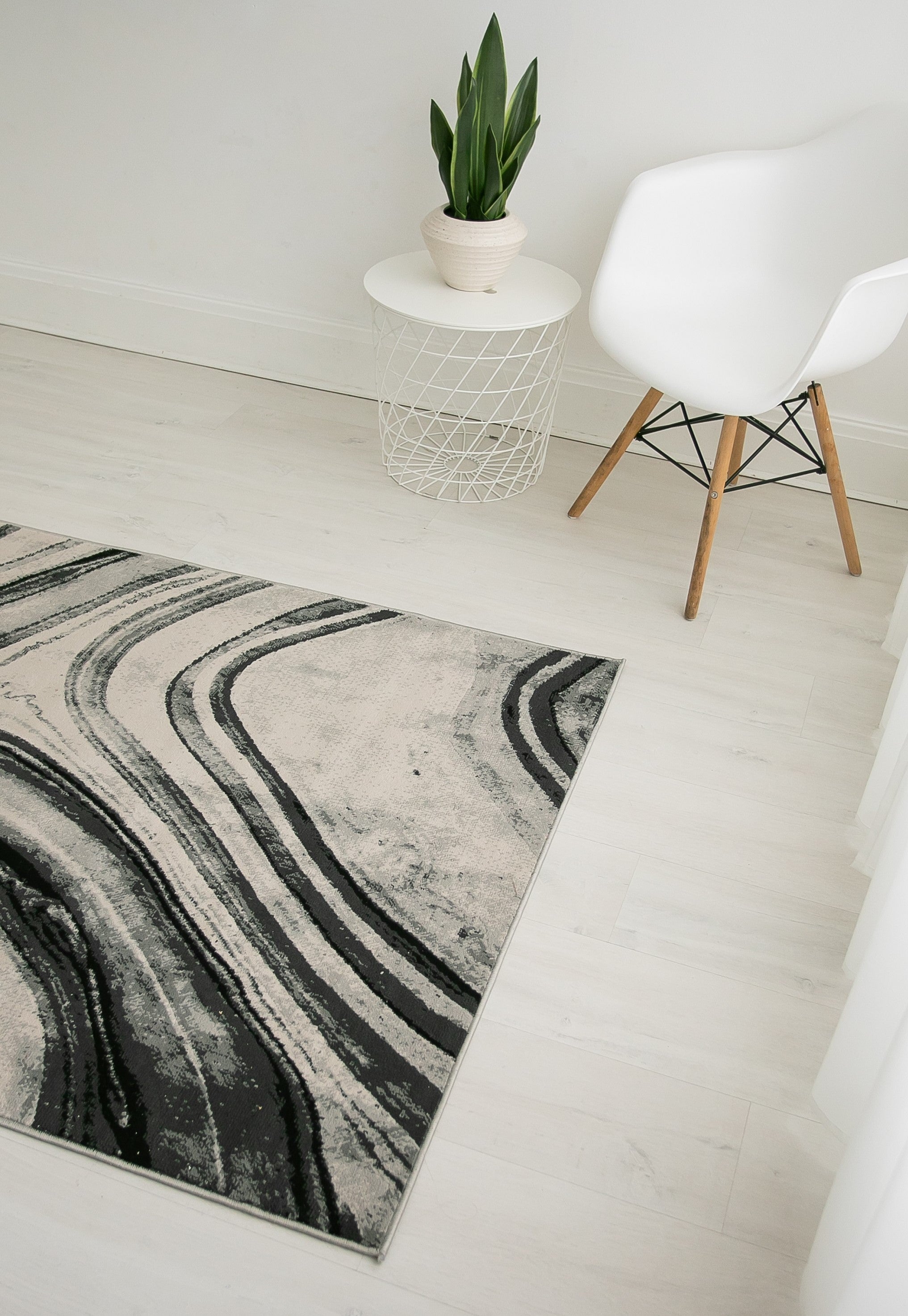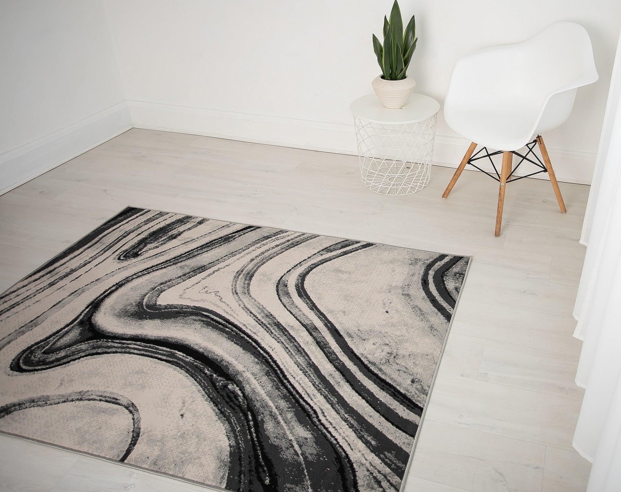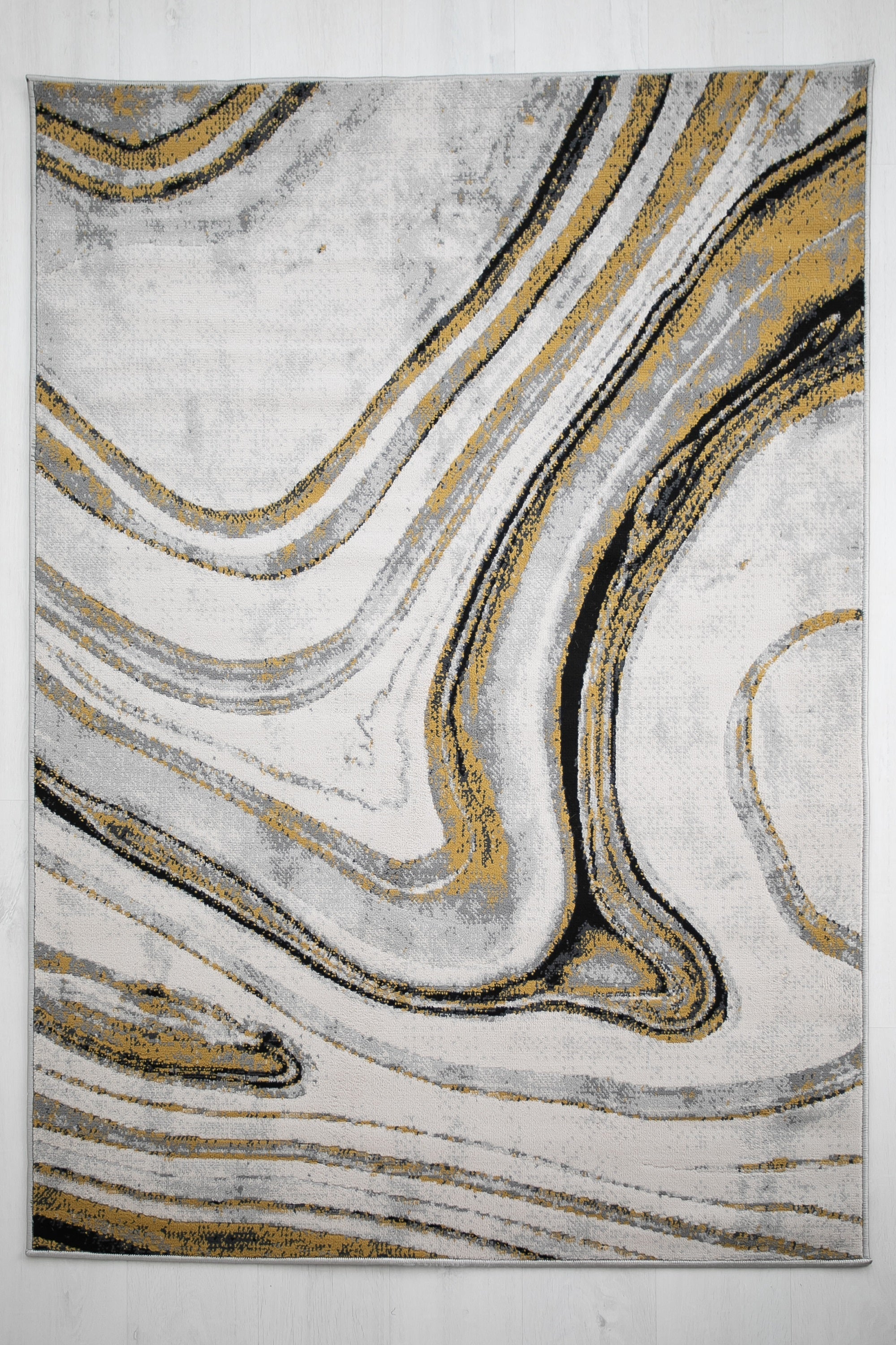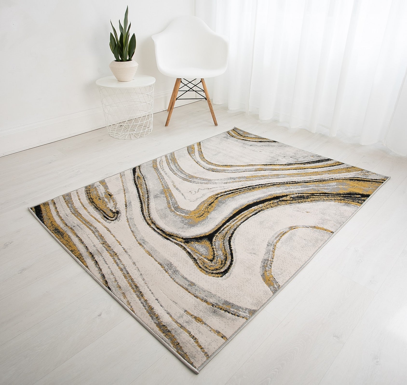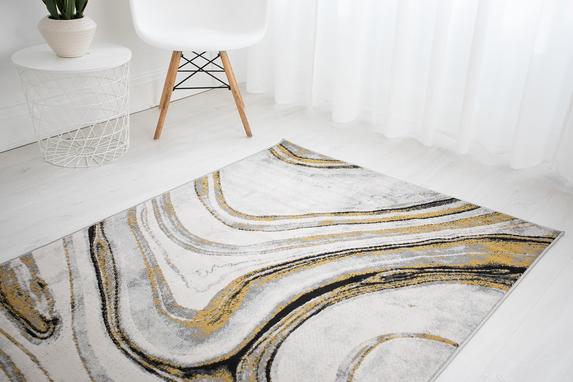 Balletto 18BA Rug Modern Abstract Living Room Bedroom Soft Rugs in Grey and Ochre
