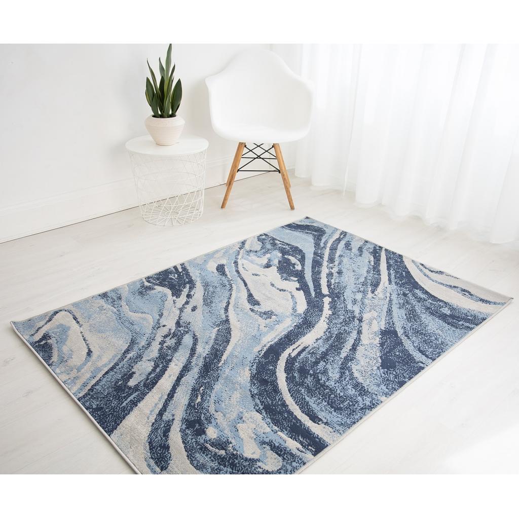 Home Shop Modern Rugs Balletto 21EA Rug Modern Abstract Living Room Bedroom Soft Rugs in Black Grey Ochre and Blue Colours