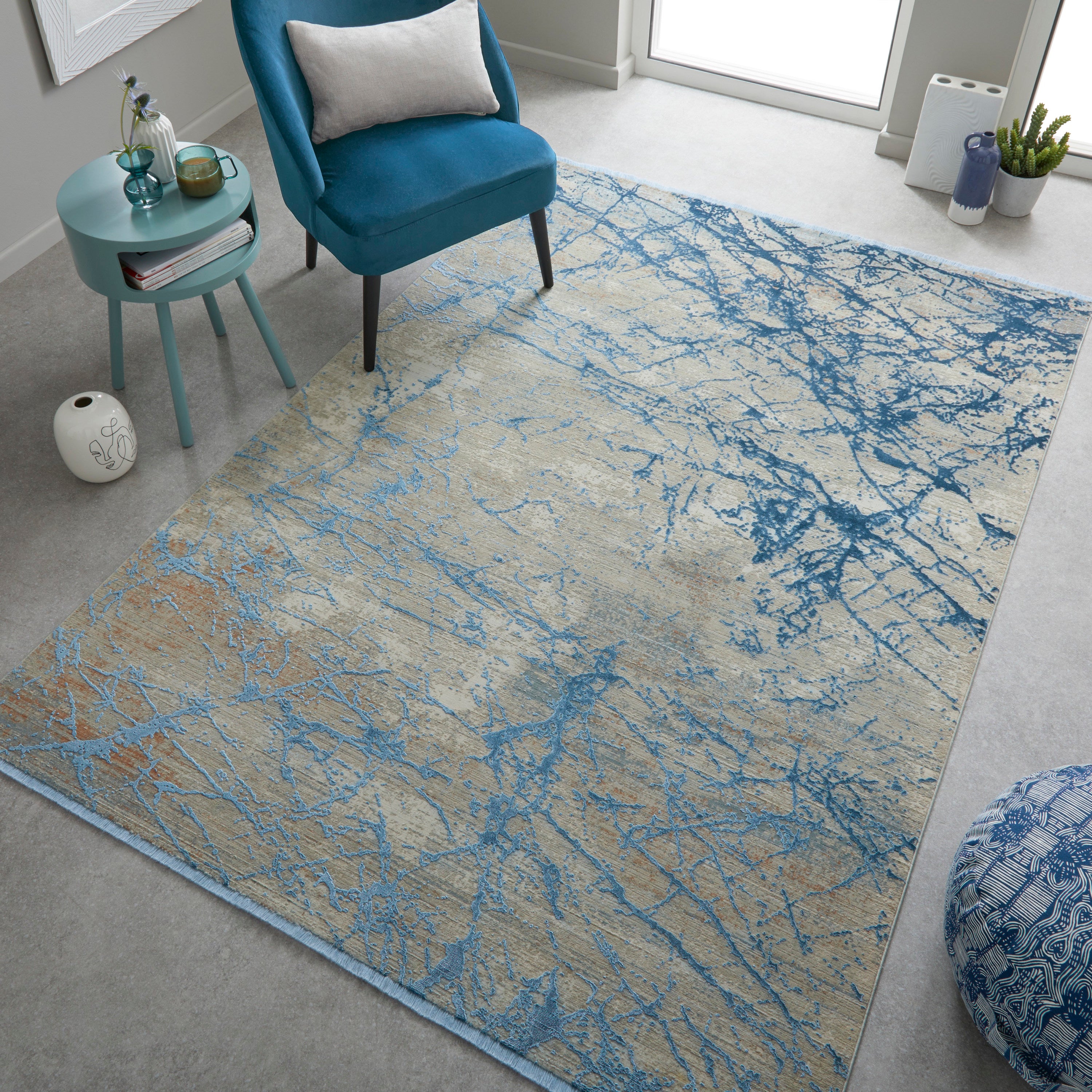 Emerald EMR101 Rug Modern Abstract Silky Rug in Blue