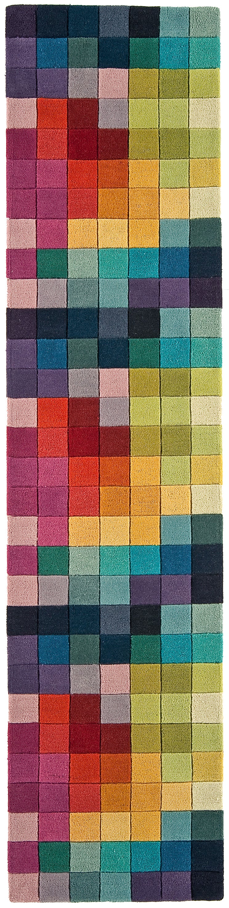 Funk Hand Tufted Wool Bright Multi Coloured Natural Boxes Squares Checked Rug Hall Runner