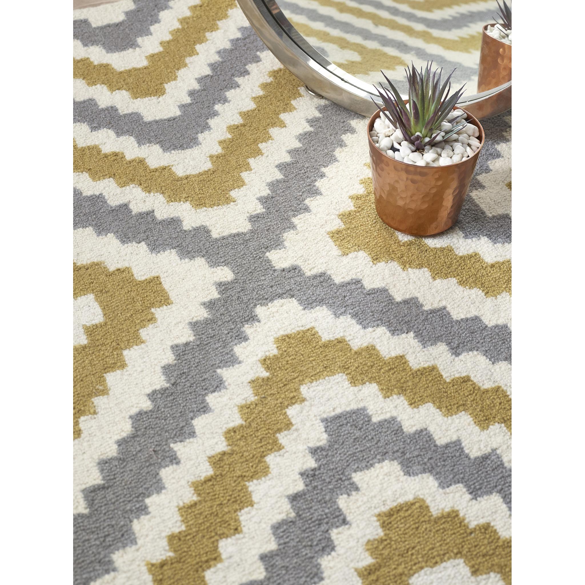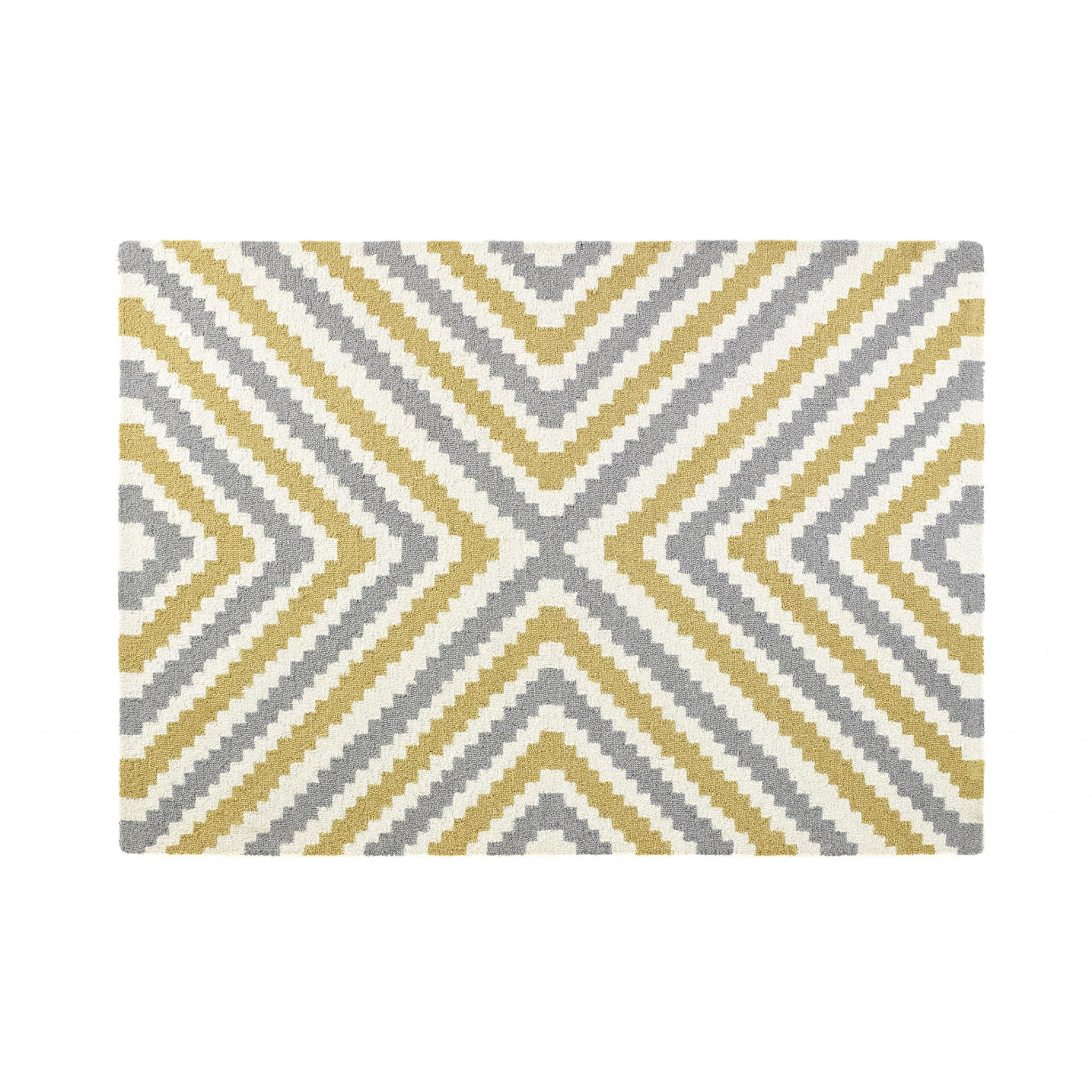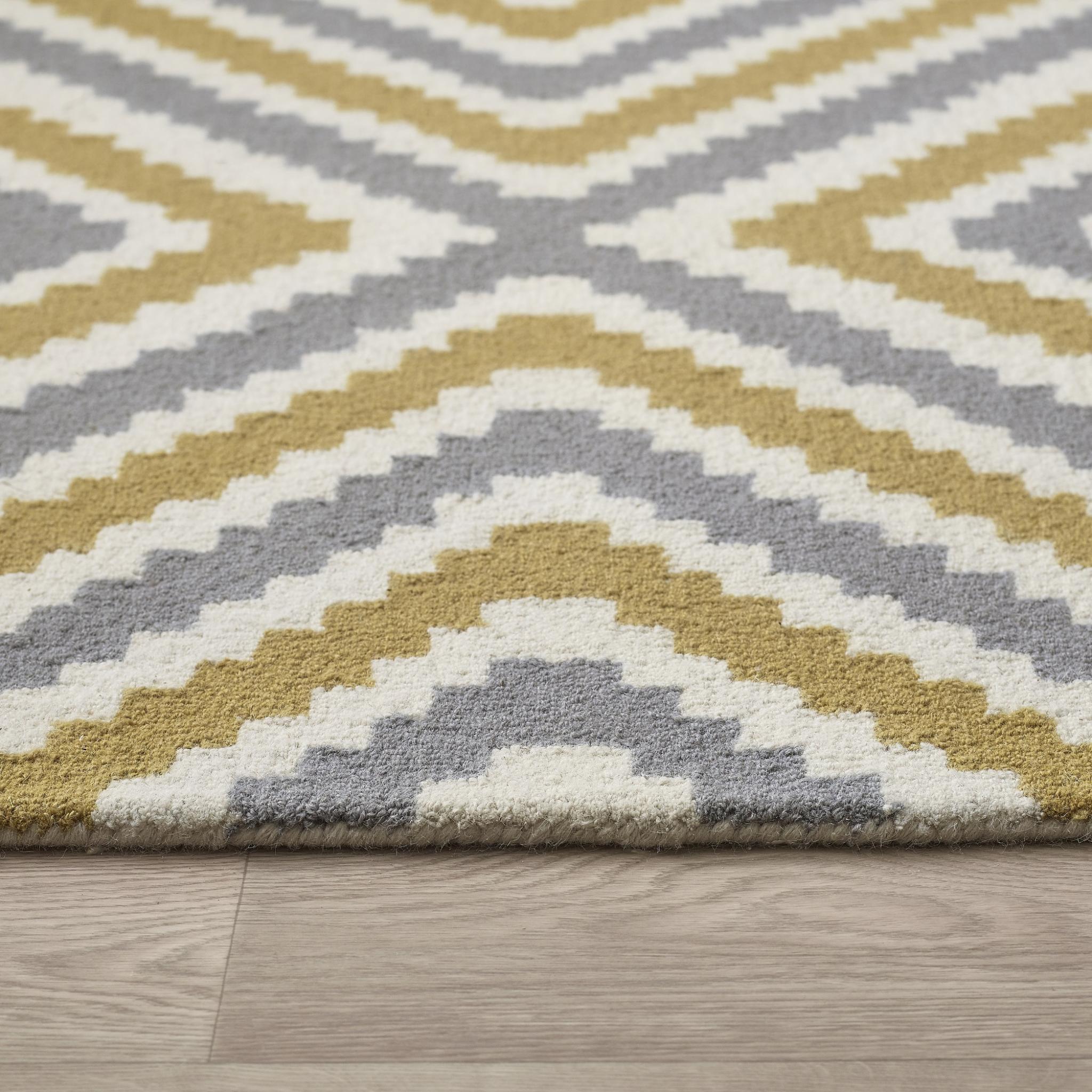 Lulu Modern Handmade Wool Geometric Rug in Ochre Grey Smalll 80x150 cm