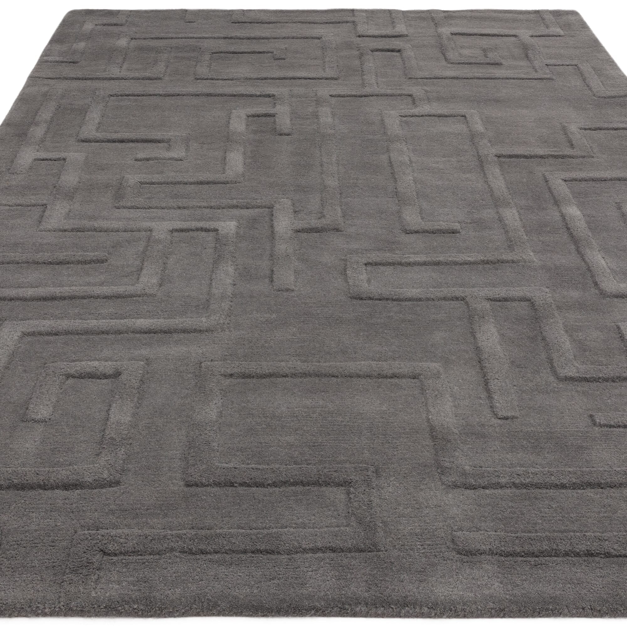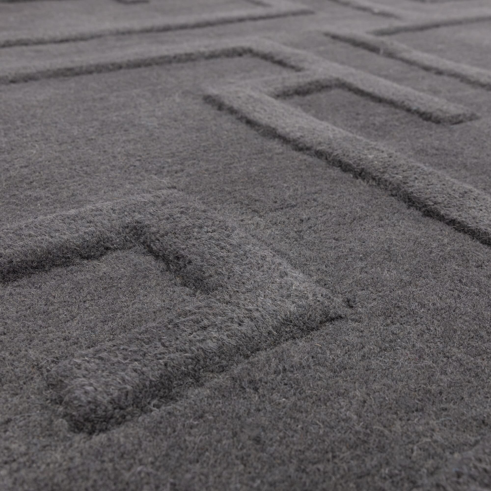 Maze Wool Rug Hand Tufted Modern Classic in Charcoal Grey