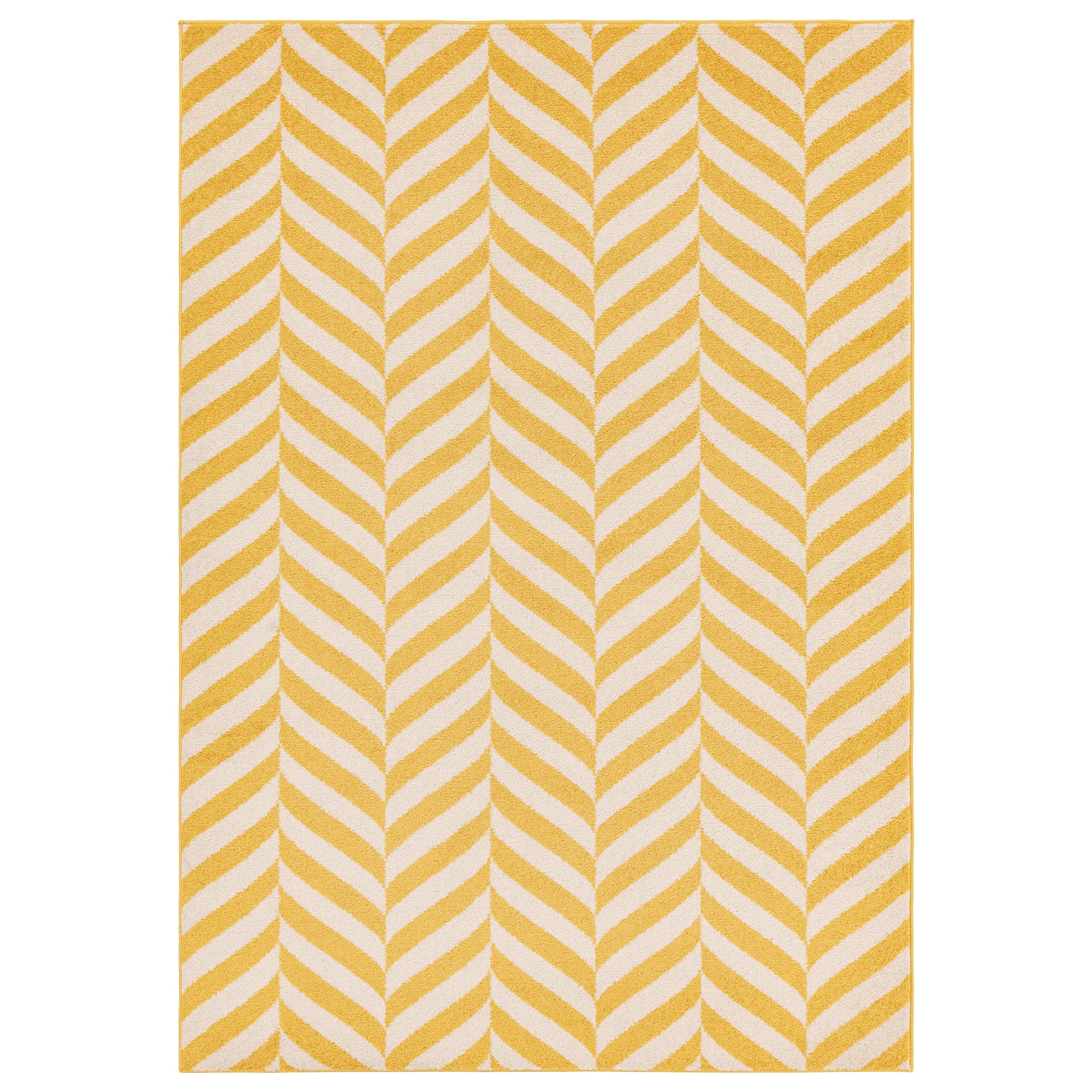 Muse Modern 3D Geometric Zig-Zag Chevron Striped Grey and Yellow Rug Hallway Runner