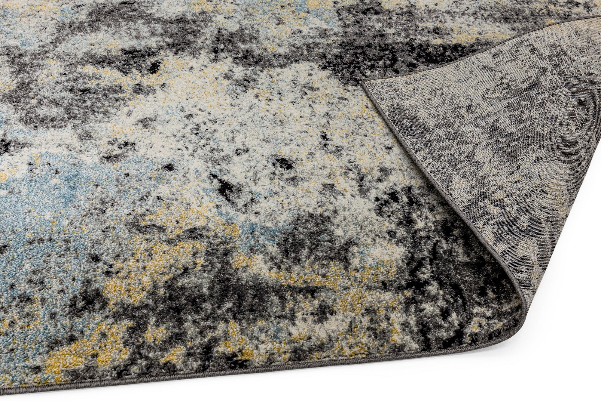 Nova NV32 Abstract Modern Blue Yellow Black Grey Shades Rug