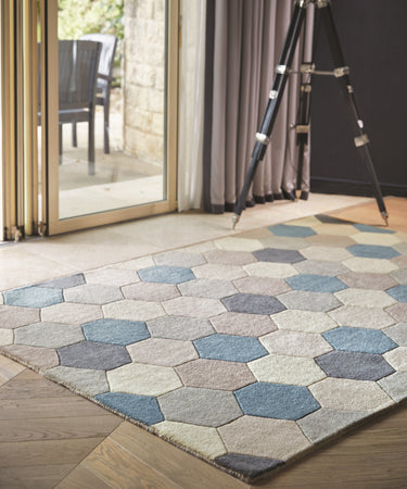 Origins Farah Hexagon Rug Geometric Hand Carved Wool Modern Hand Made Rug in Pastel Multi Colours