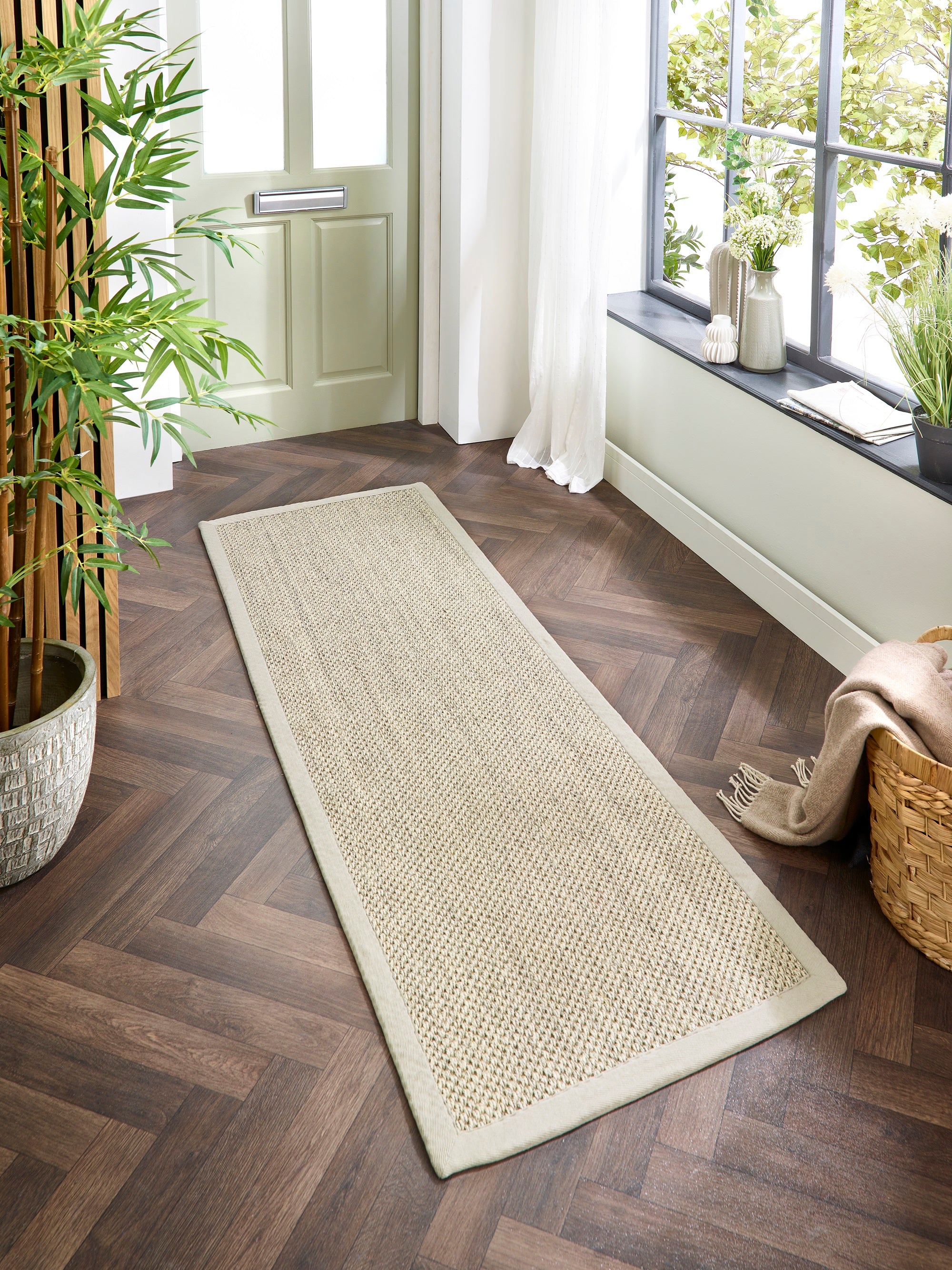- Durable and practical sisal rugs with a cotton border and anti slip backing.