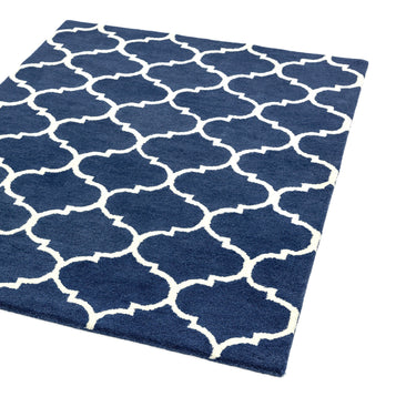 Albany Ogee Traditional Morroccan Trellis Design Hand Tufted Wool Rug in Blue