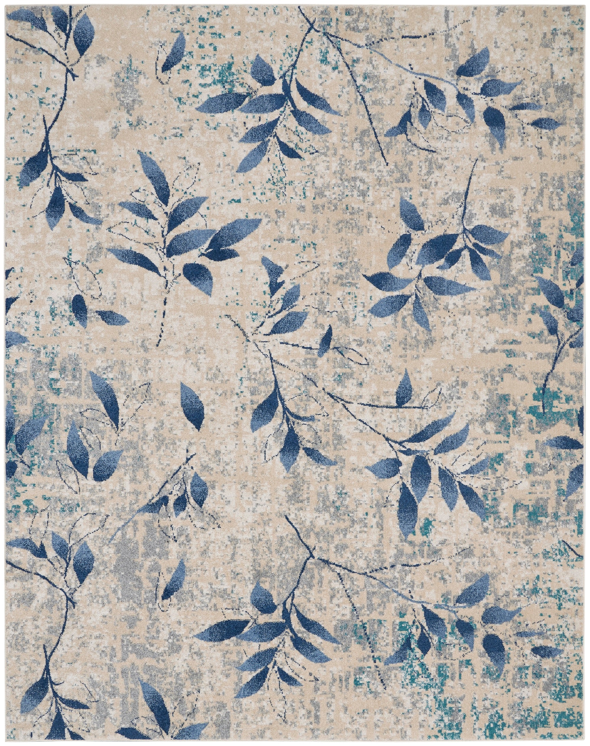 Calvin Klein River Flow Leaf Floral Abstract Botanical RFV03 in Navy Beige Blue