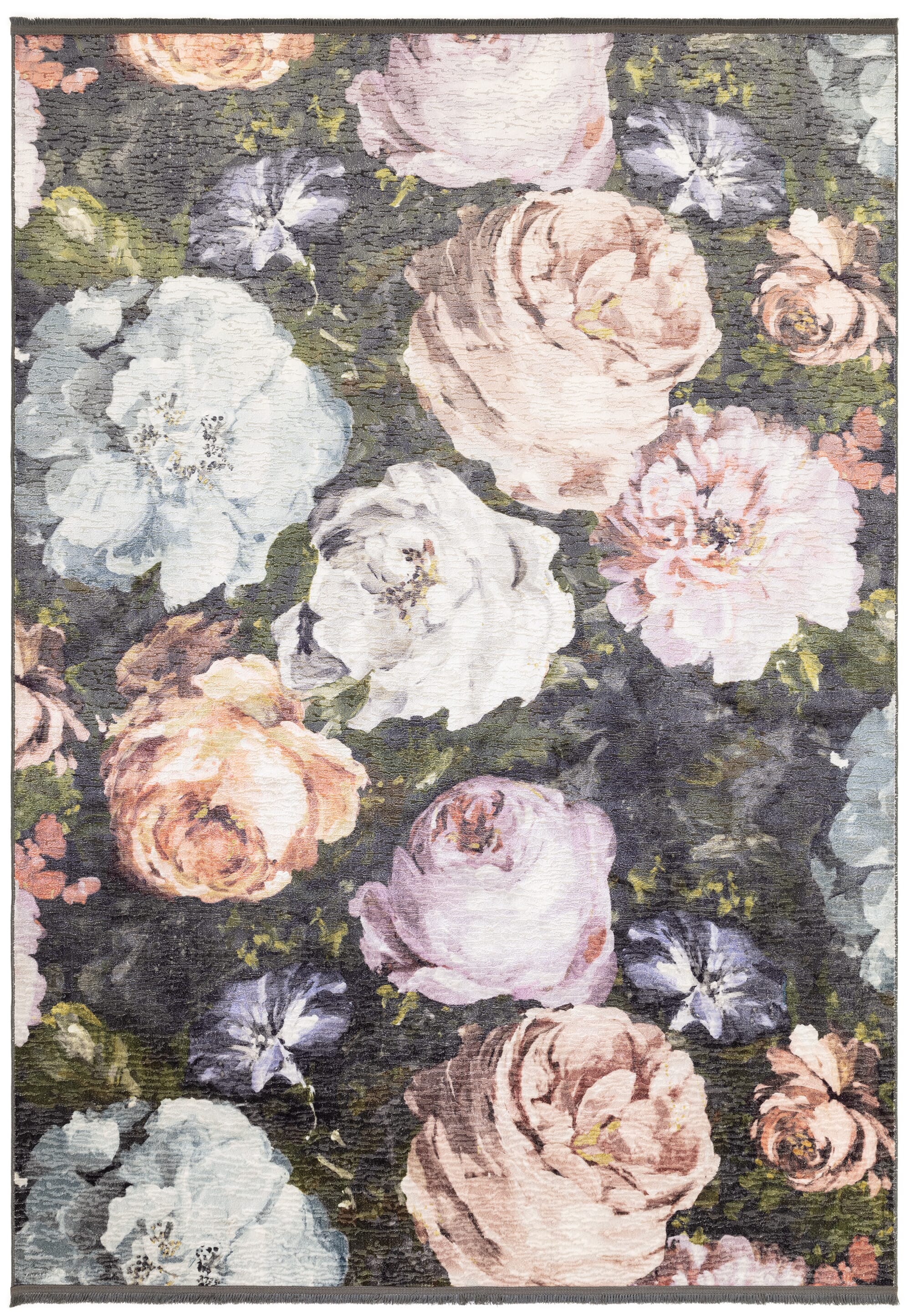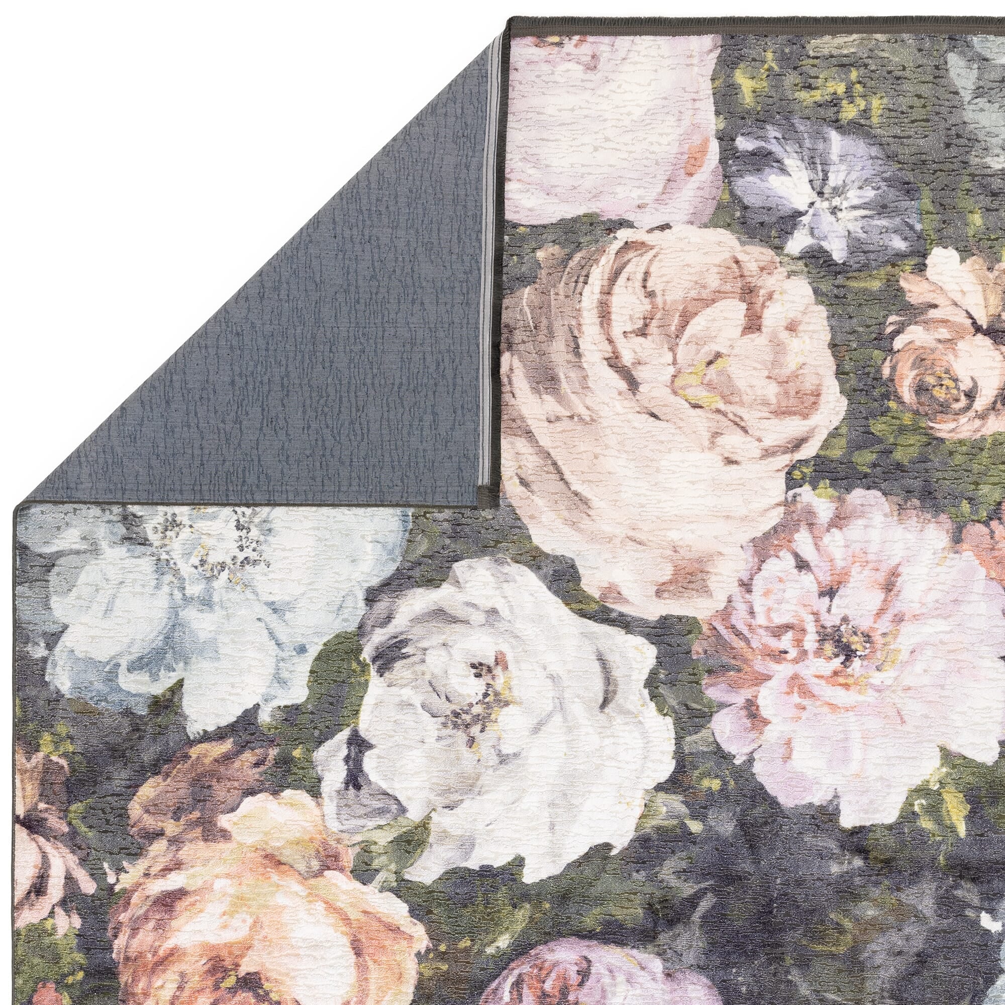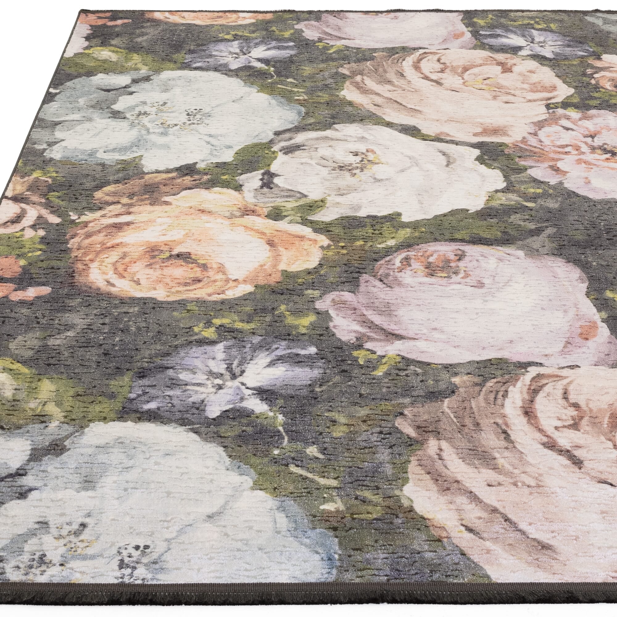 Adding a touch of decadence to your home, Floretta feels as though you are stepping upon a sumptuous bed of roses. Large scale elegant roses pop from the deep charcoal ground in this digitally printed design. Subtle fringe edge detailing accompanies this textured soft velvet base. Colourways include Charcoal Blush and Mineral. Inspired by a rose garden, this beautifully crafted rug by Clarke and Clarke will bring a pop of colour into your home, creating a calming sanctuary. Featuring oversized decadent rose blooms elevated from a charcoal grey background. This dazzling rug will bring a layer of luxury, glamour, and style to your space, perfect for a living room, hallway or bedroom with a shabby chic or farmhouse vibe. Machine woven with 100% polyester making this rug durable, stain resistant and comfortable beneath the feet. Available in a range of sizes from small to large. To tie the look together team with the matching bedding set