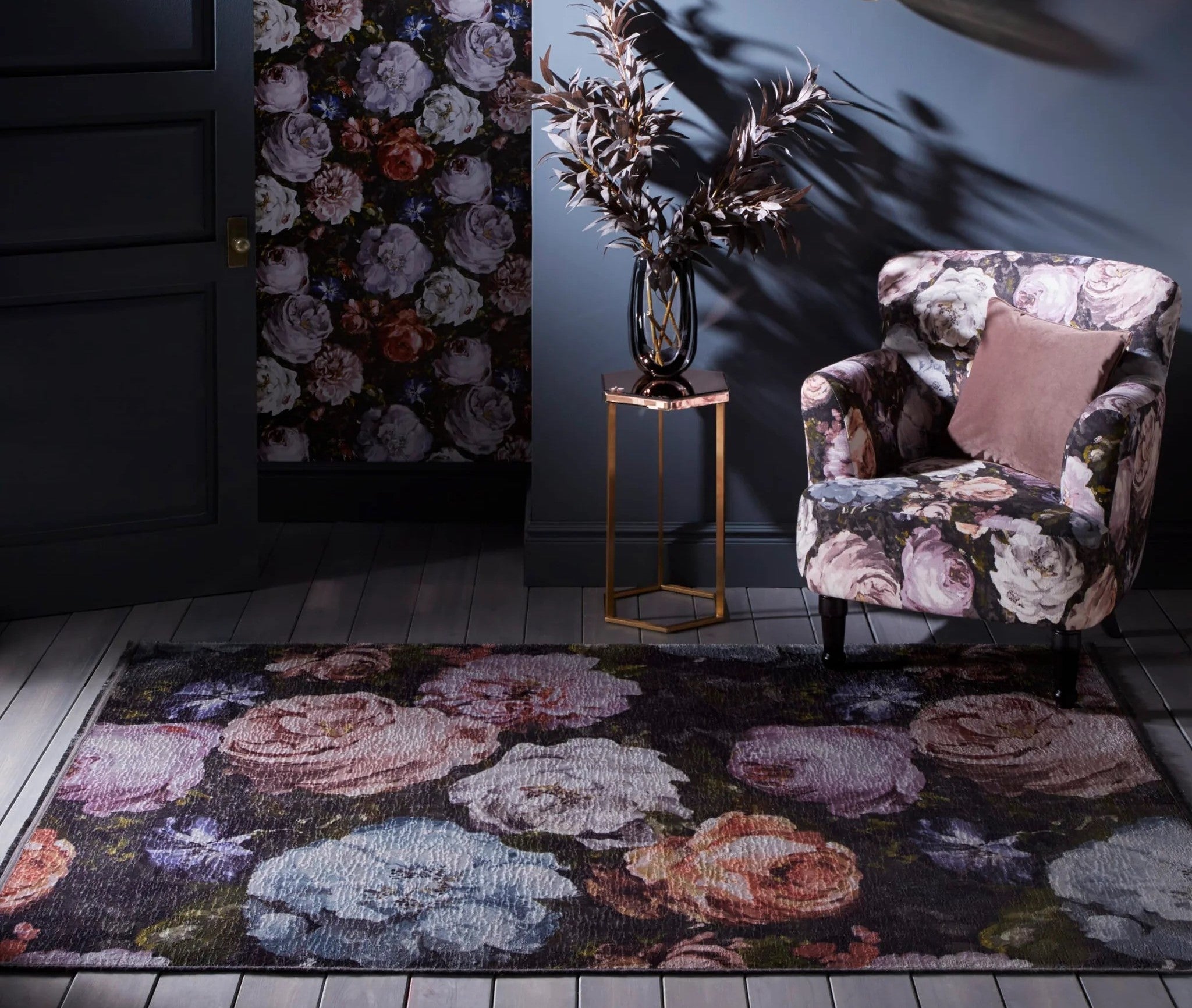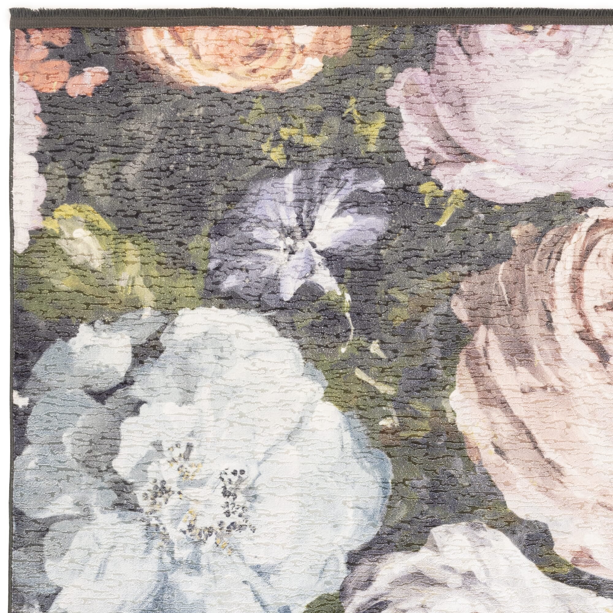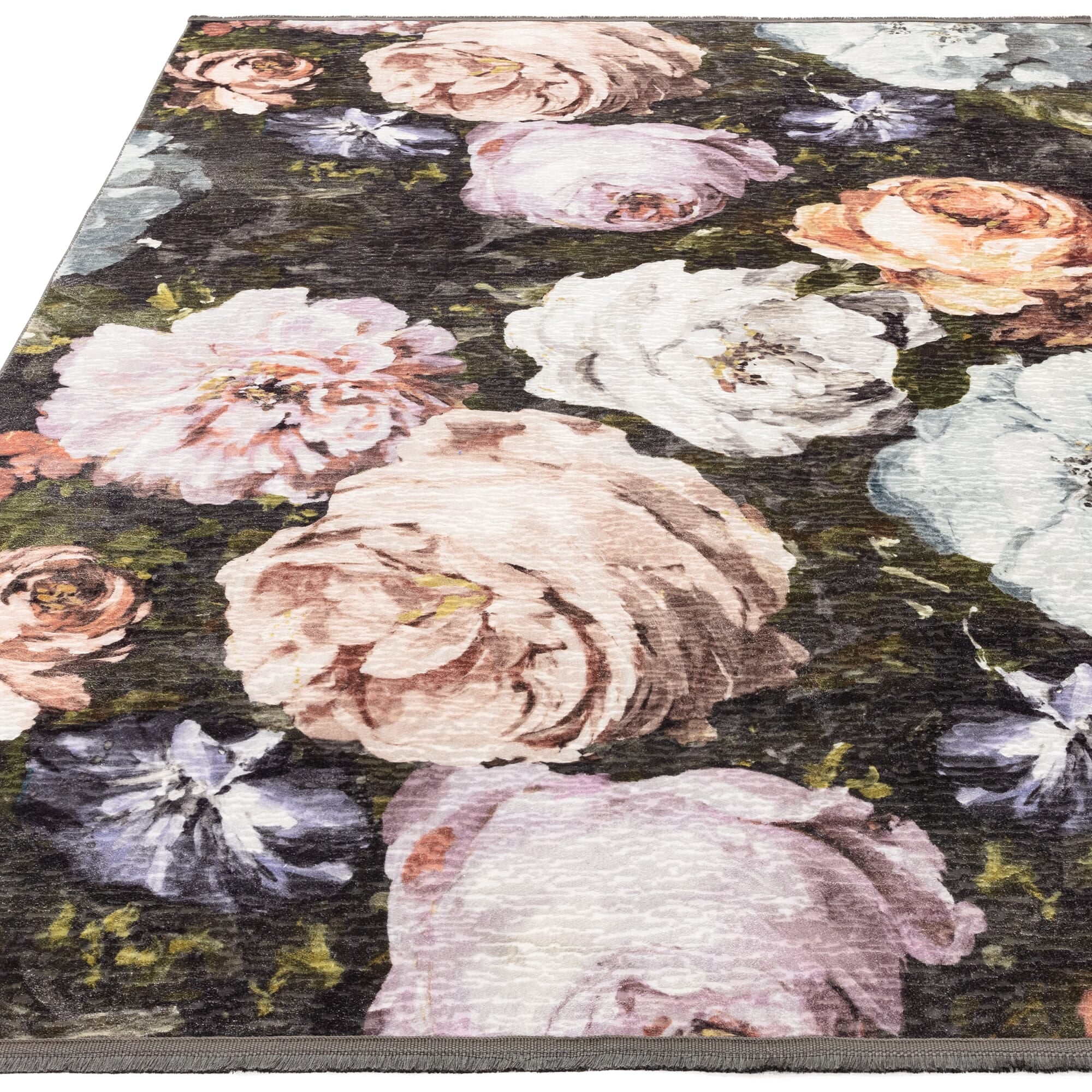 Adding a touch of decadence to your home, Floretta feels as though you are stepping upon a sumptuous bed of roses. Large scale elegant roses pop from the deep charcoal ground in this digitally printed design. Subtle fringe edge detailing accompanies this textured soft velvet base. Colourways include Charcoal Blush and Mineral. Inspired by a rose garden, this beautifully crafted rug by Clarke and Clarke will bring a pop of colour into your home, creating a calming sanctuary. Featuring oversized decadent rose blooms elevated from a charcoal grey background. This dazzling rug will bring a layer of luxury, glamour, and style to your space, perfect for a living room, hallway or bedroom with a shabby chic or farmhouse vibe. Machine woven with 100% polyester making this rug durable, stain resistant and comfortable beneath the feet. Available in a range of sizes from small to large. To tie the look together team with the matching bedding set