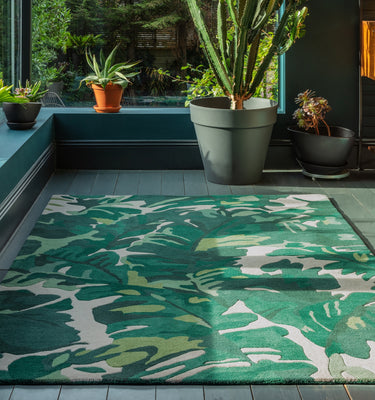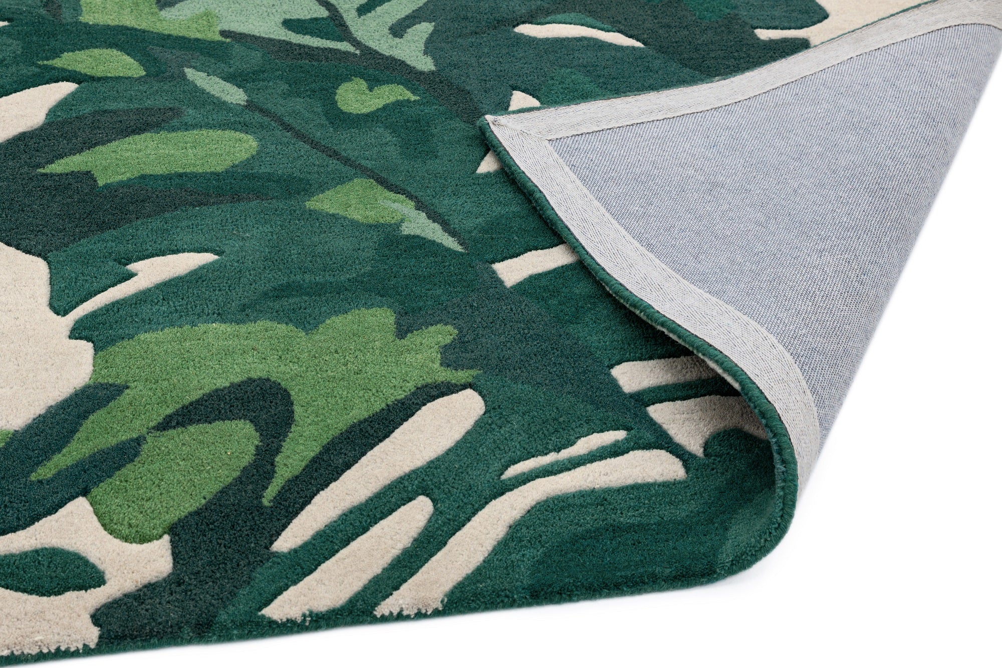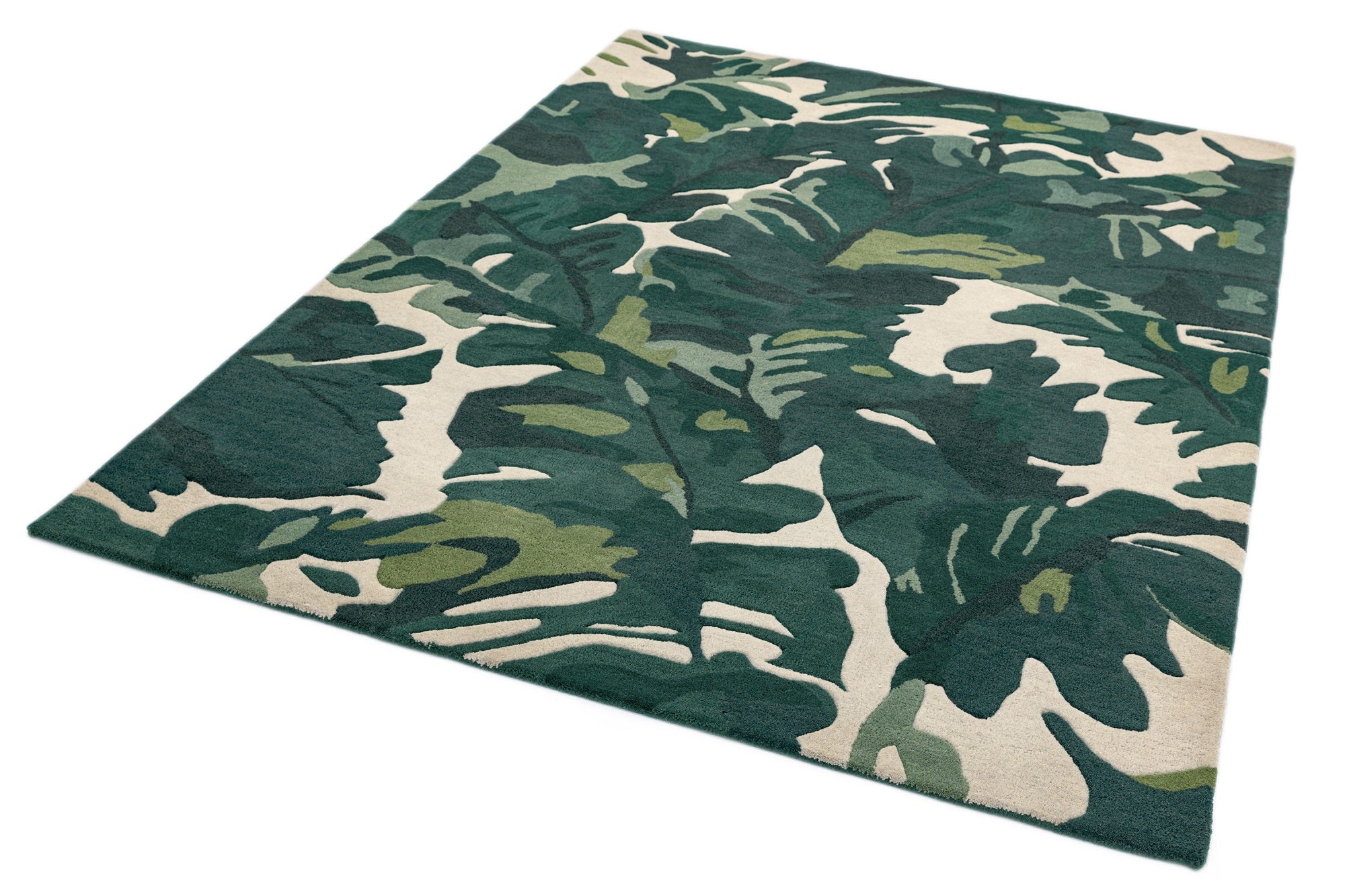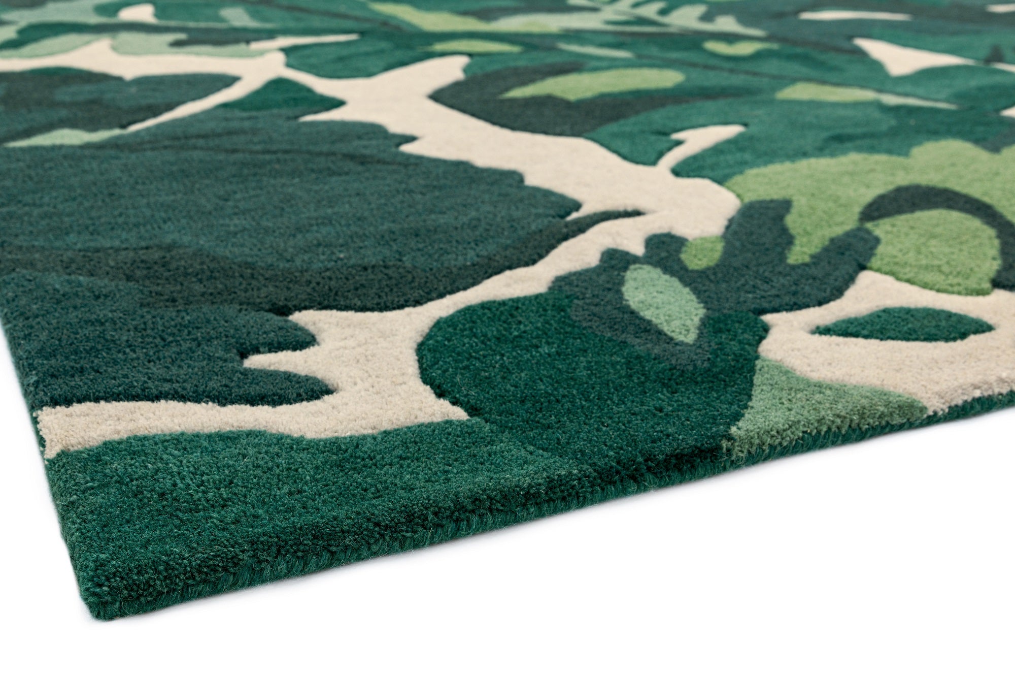 Matrix MAX73 Floral Tropical Palm Green Rug Quality Soft Wool Hand Made Rug