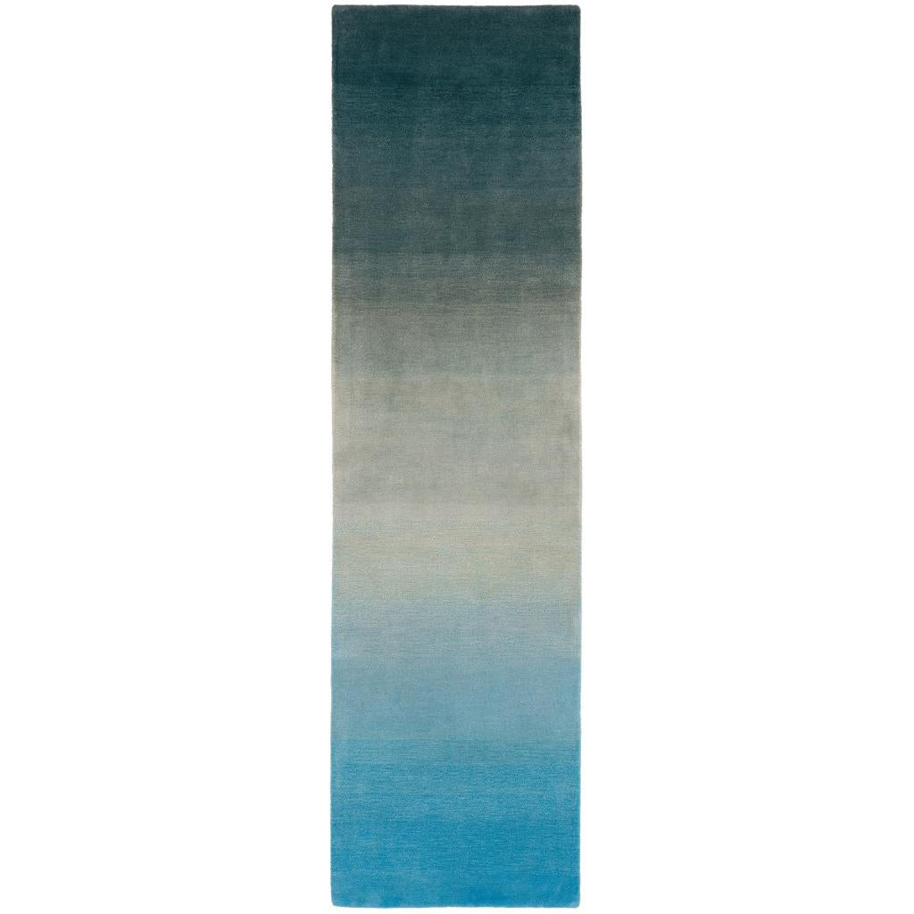 Ombre Quality Hand Tufted Wool Rug Hallway Runner in Blue, Green and Rust