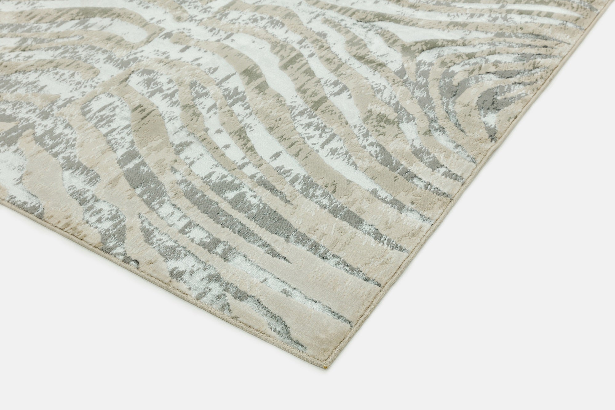 Home Shop Rugs Quantum Zebra Print QU04 High Shine Rug in Beige Grey