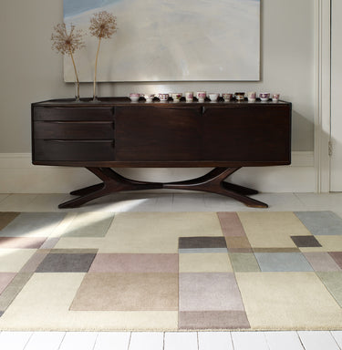 Change your living space according to your mood and give your room an instant update with the Reef Blocks Pastel rug RF17. Hand tufted using a 100% Wool yarn, this unique design displays a geometric motif. The bright, playful shades used in this luxuriously soft rug are harmonised with complimentary colours, creating a bold design, without being a sensory overload. Pile weight 2200g. Pre-order available now. New stock arriving in January.