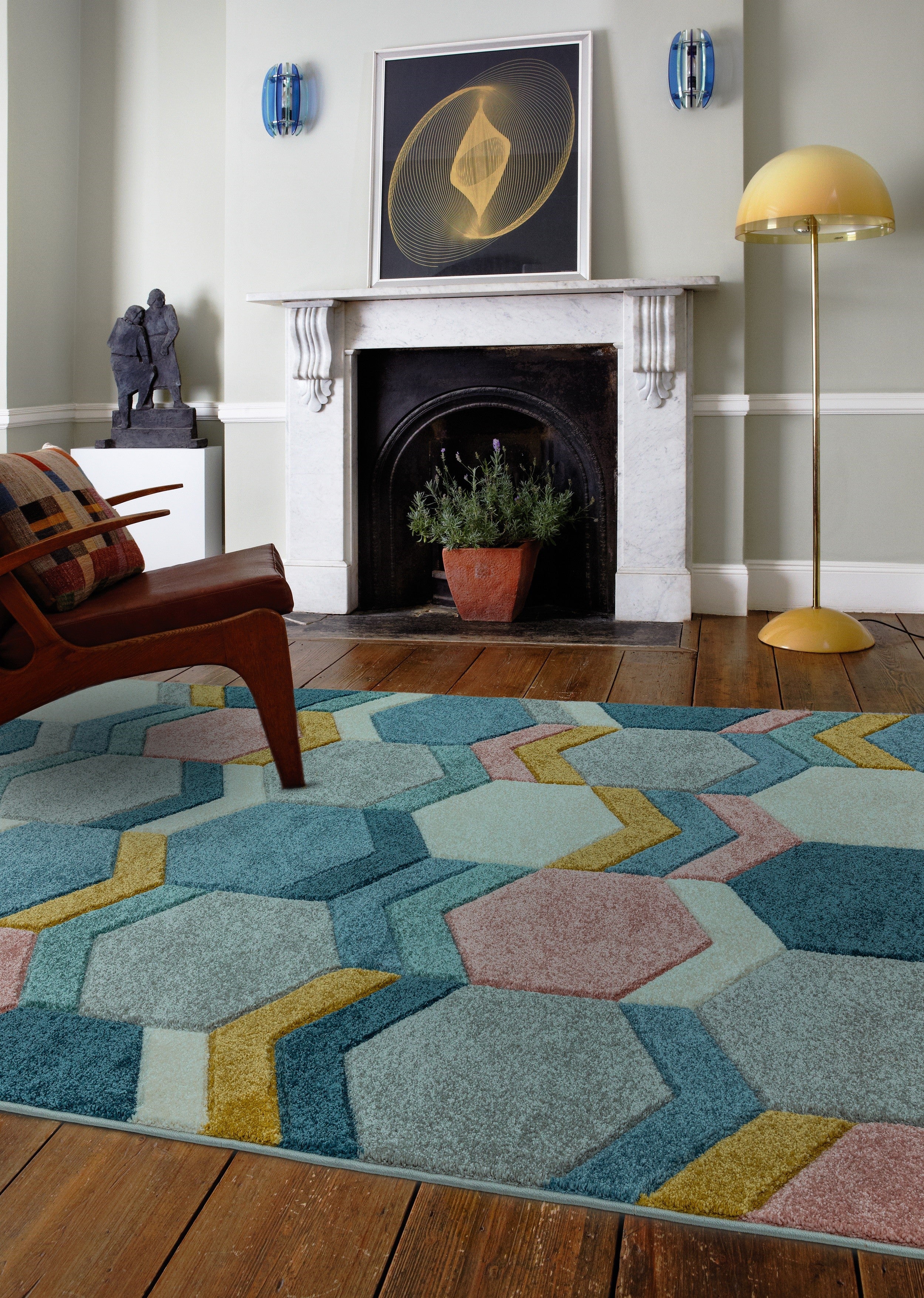 Home Shop Rugs Sketch SK10 Hexagon Geometric Hand Carved Rug in Pastel Multicolours