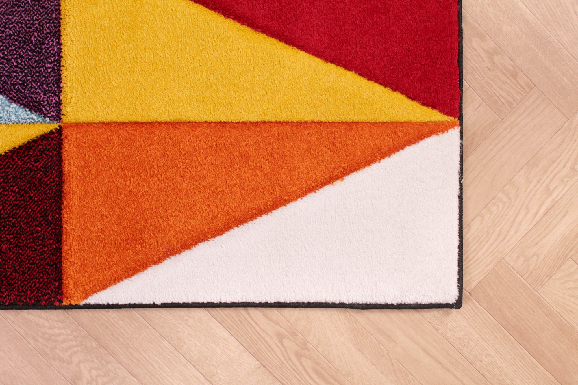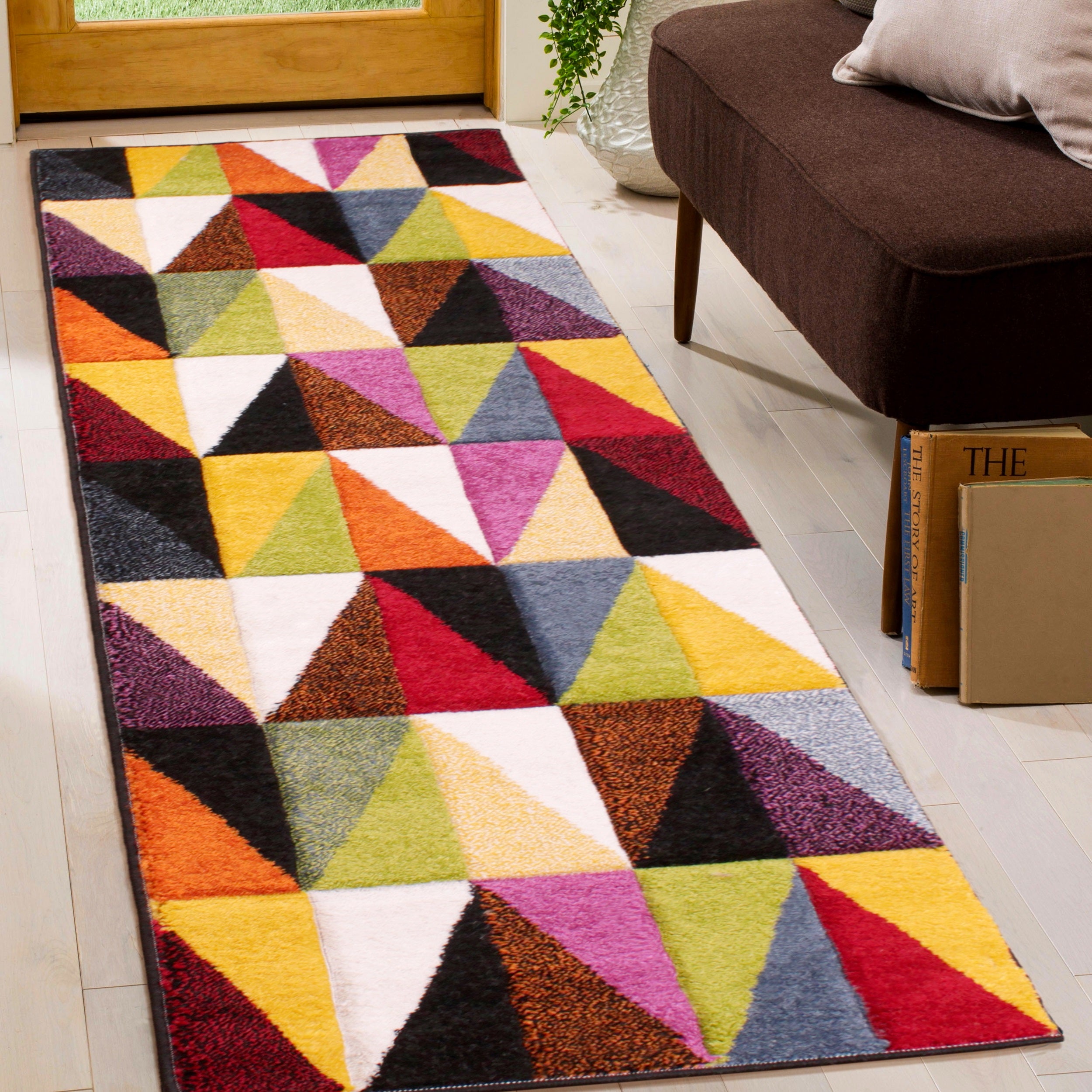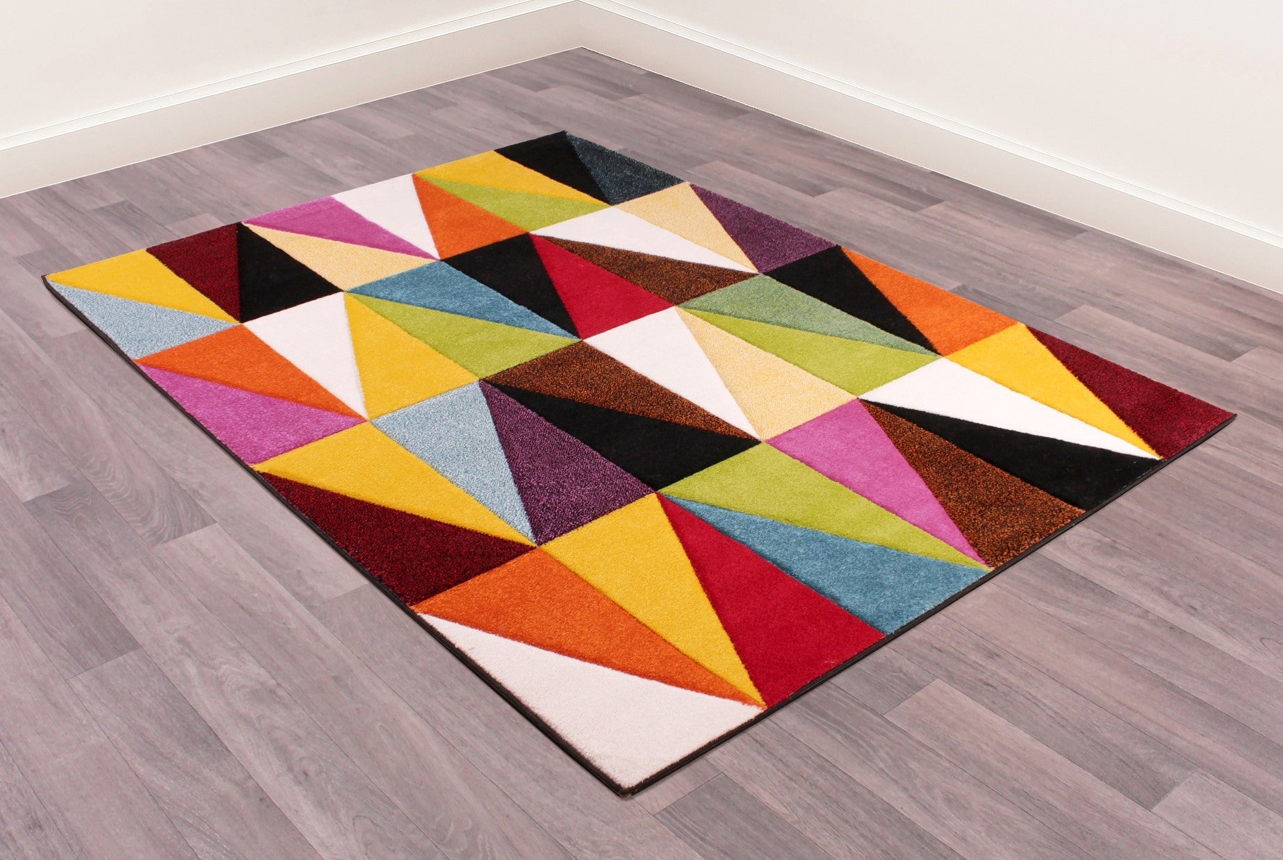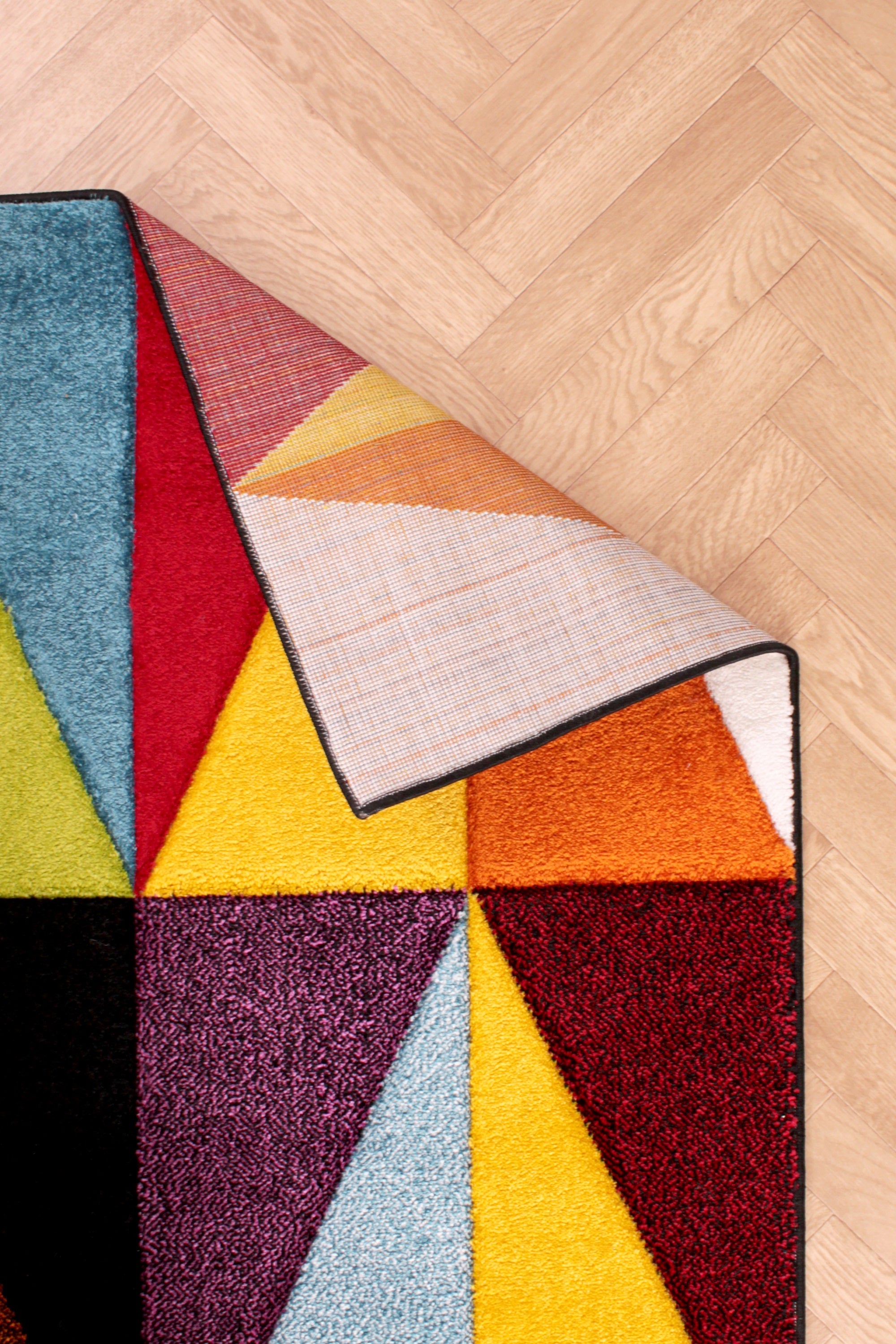 Home Shop Rugs Spectra Carved Tampa Geometric Rainbow Bright Multi Coloured Soft Rug Hallway Runner