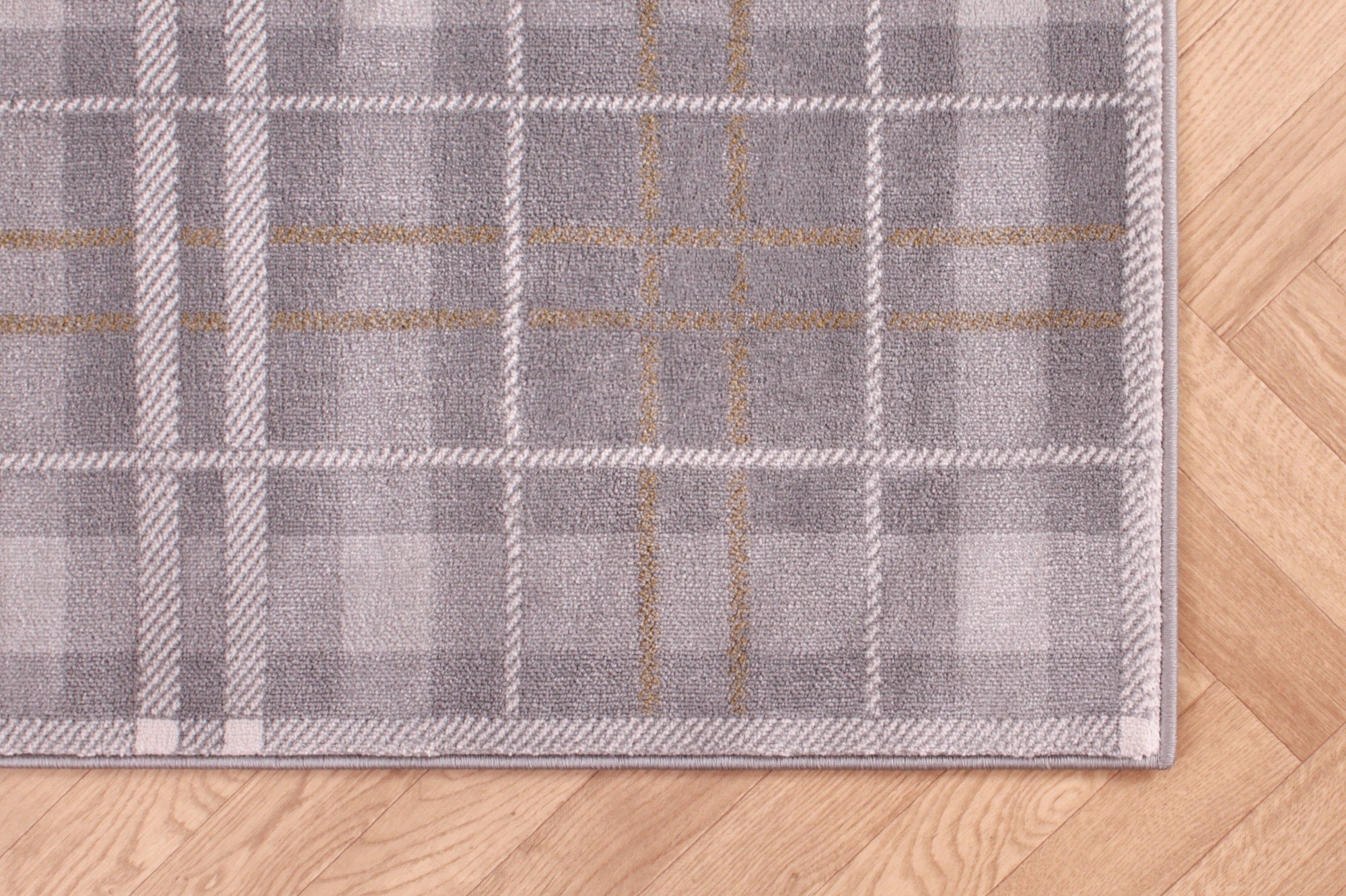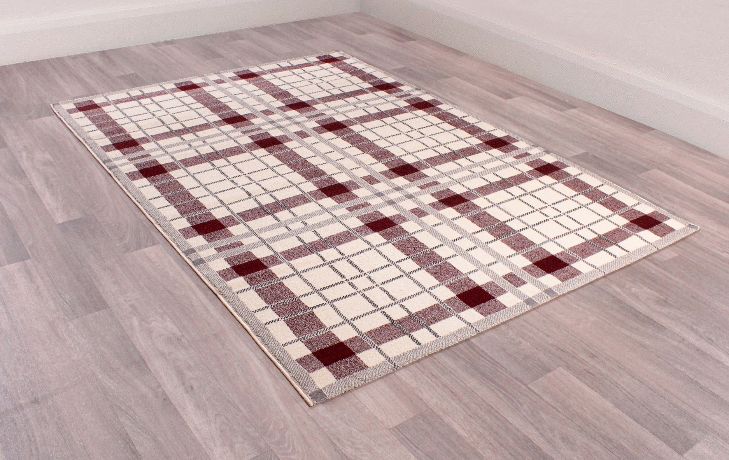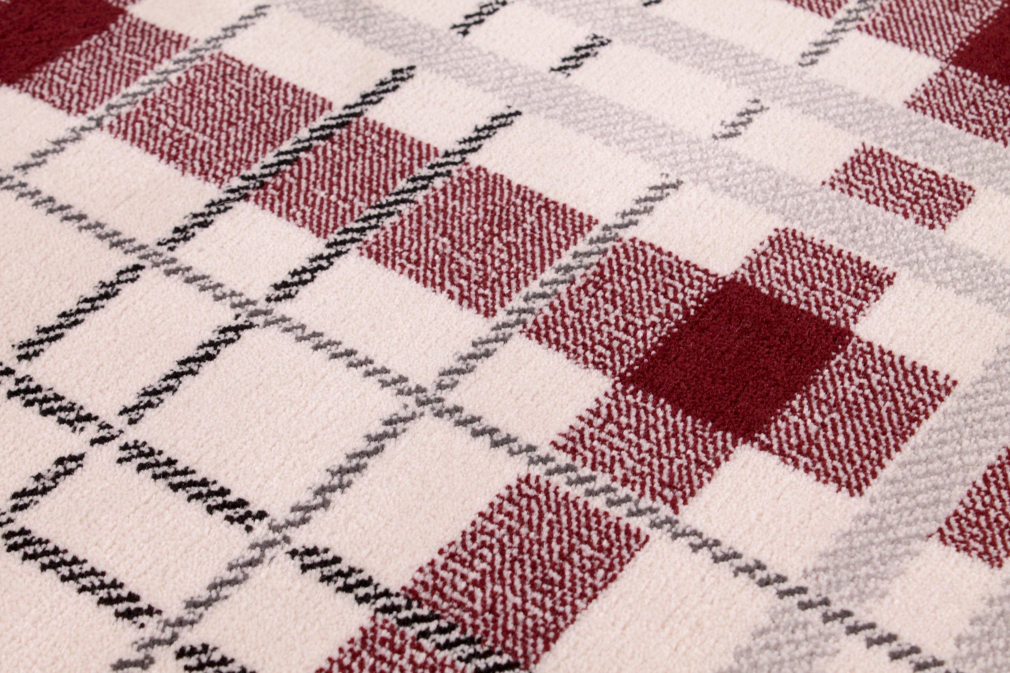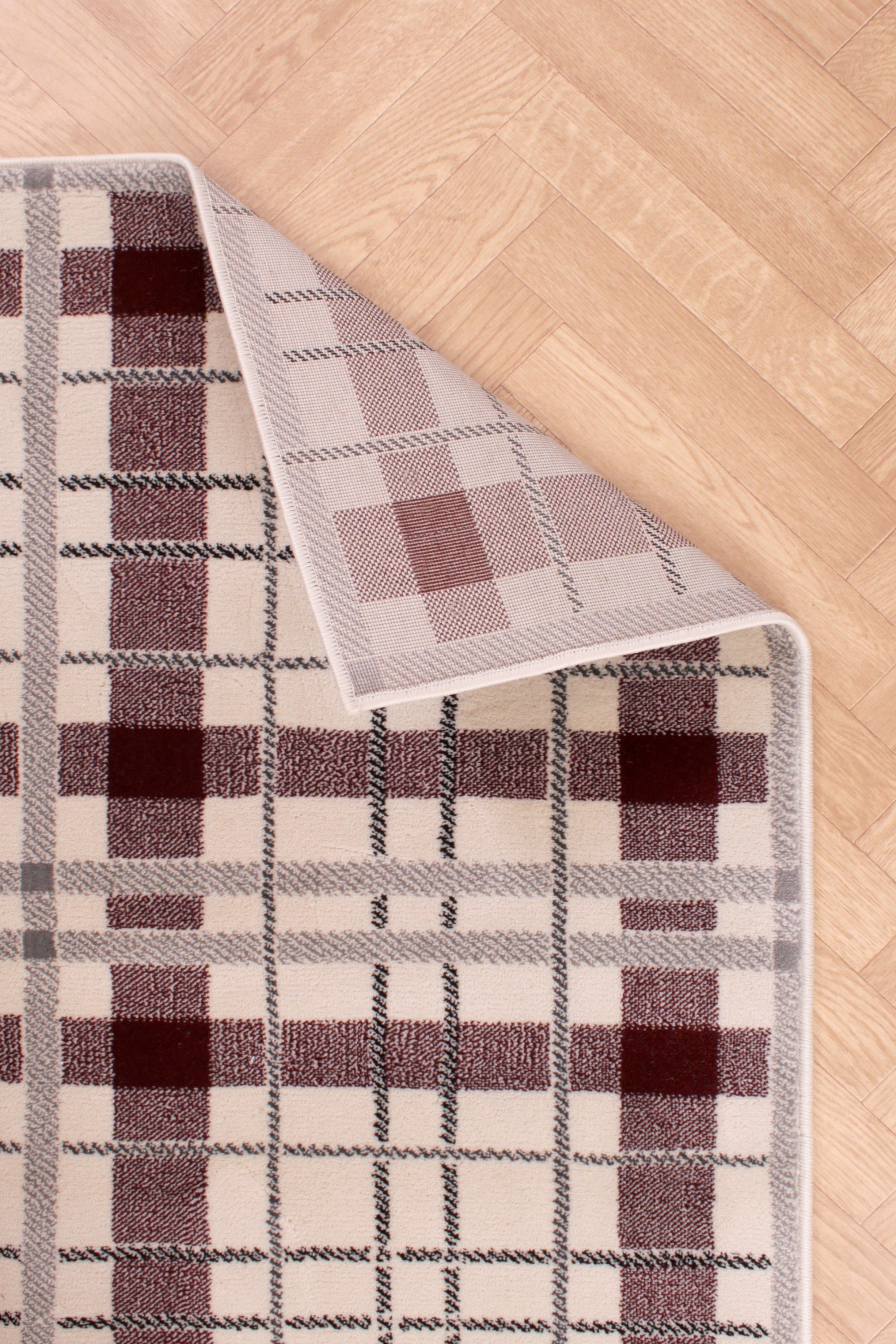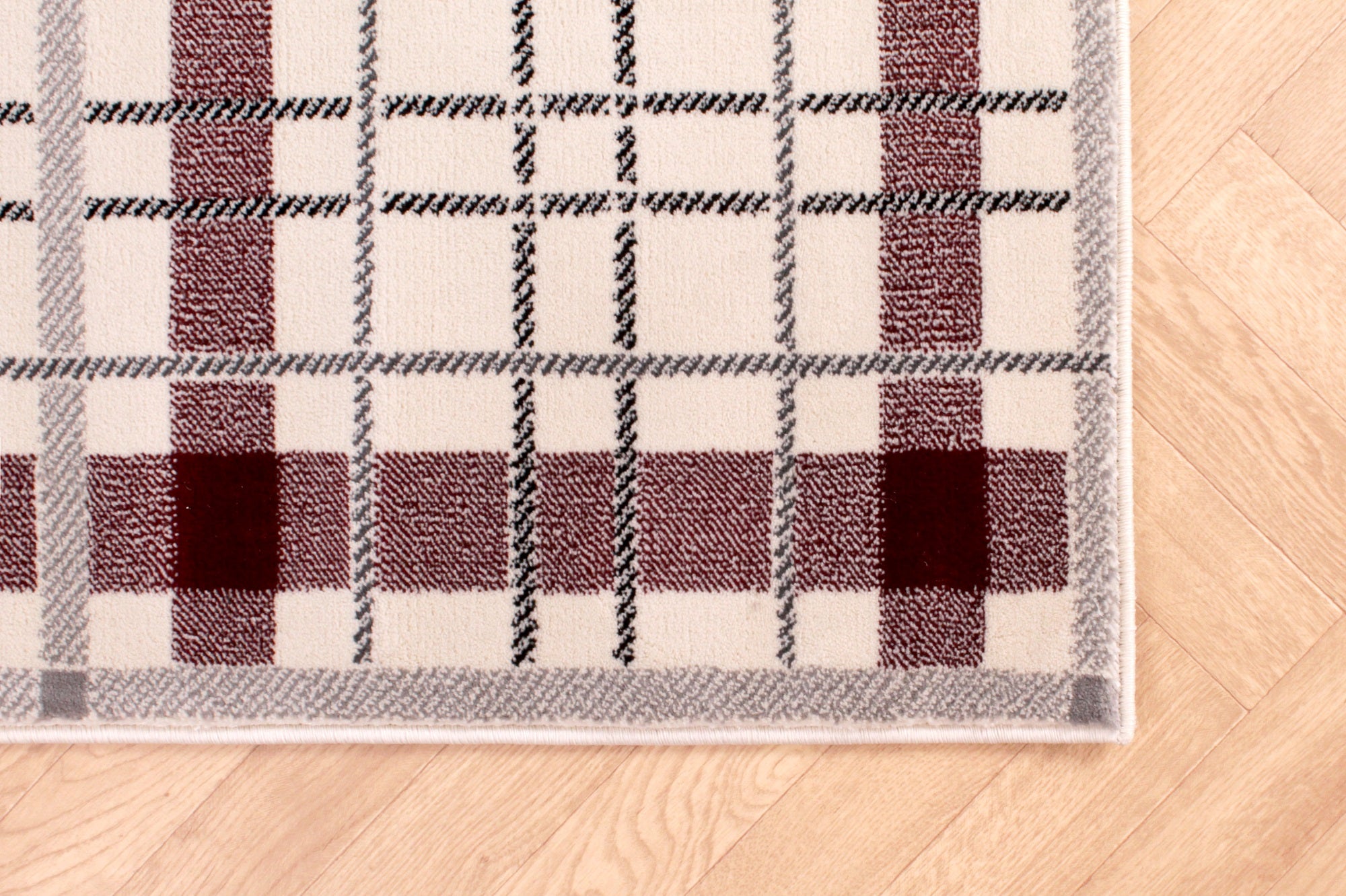 Tartan Check Pattern Rug Hallway Runner in Cream Red, Grey Ochre
