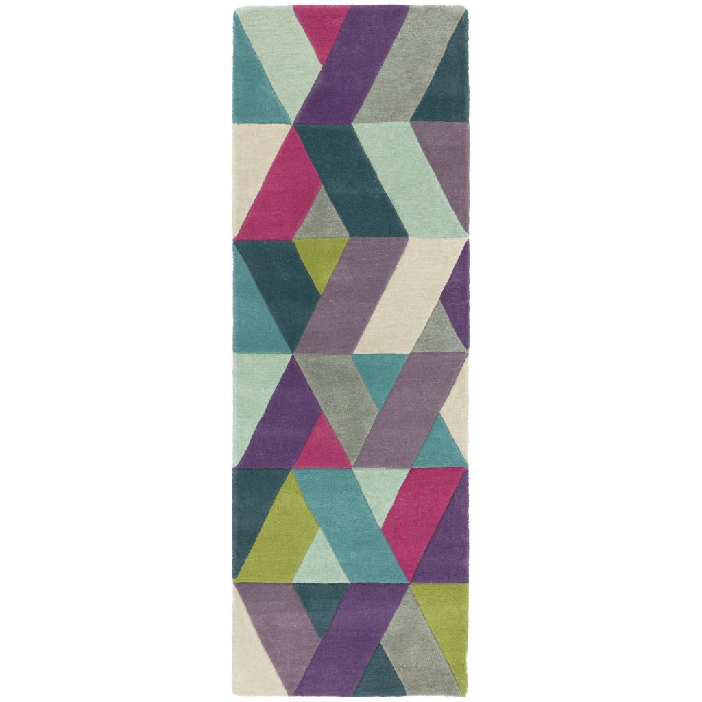 Home Shop Runners Funk Hand Tufted Wool Chevron Geometric Multi Coloured Blue Green Rug Hall Runner