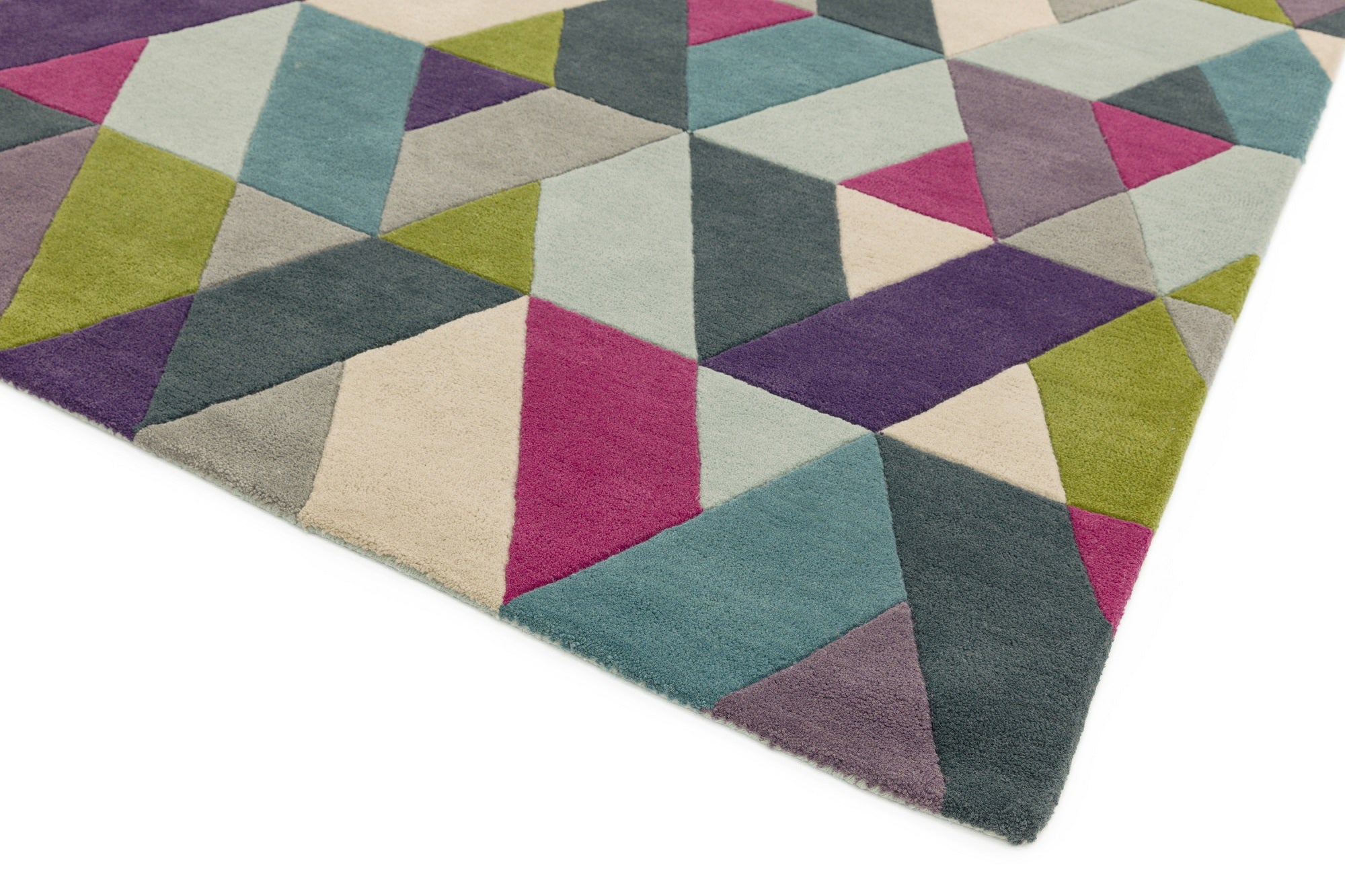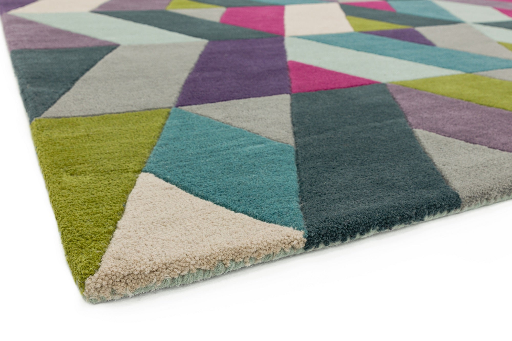 Funk Hand Tufted Wool Chevron Geometric Multi Coloured Blue Green Rug Hall Runner