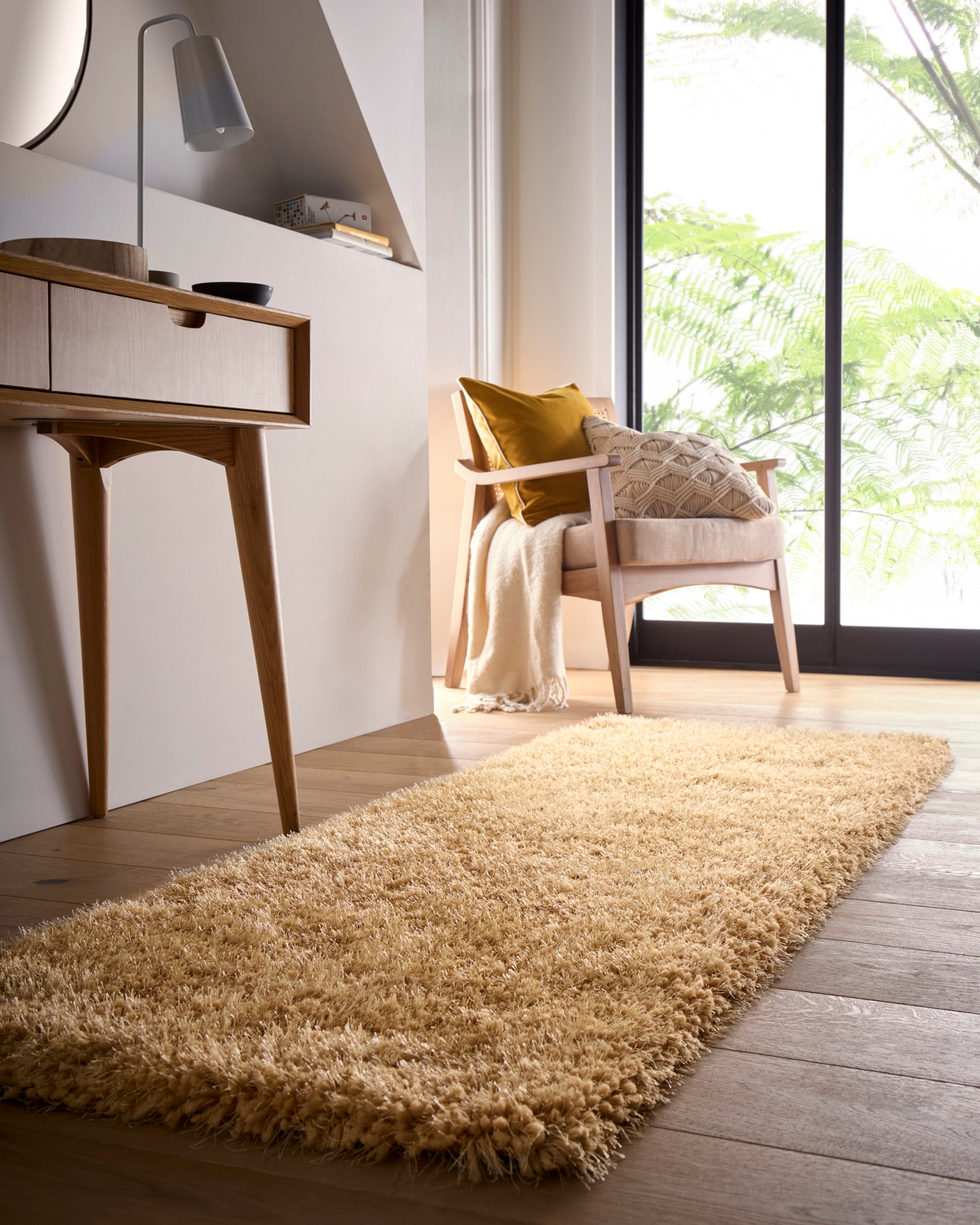 Chicago Shaggy Modern Plain Rug Hallway Runner Circle in Ochre