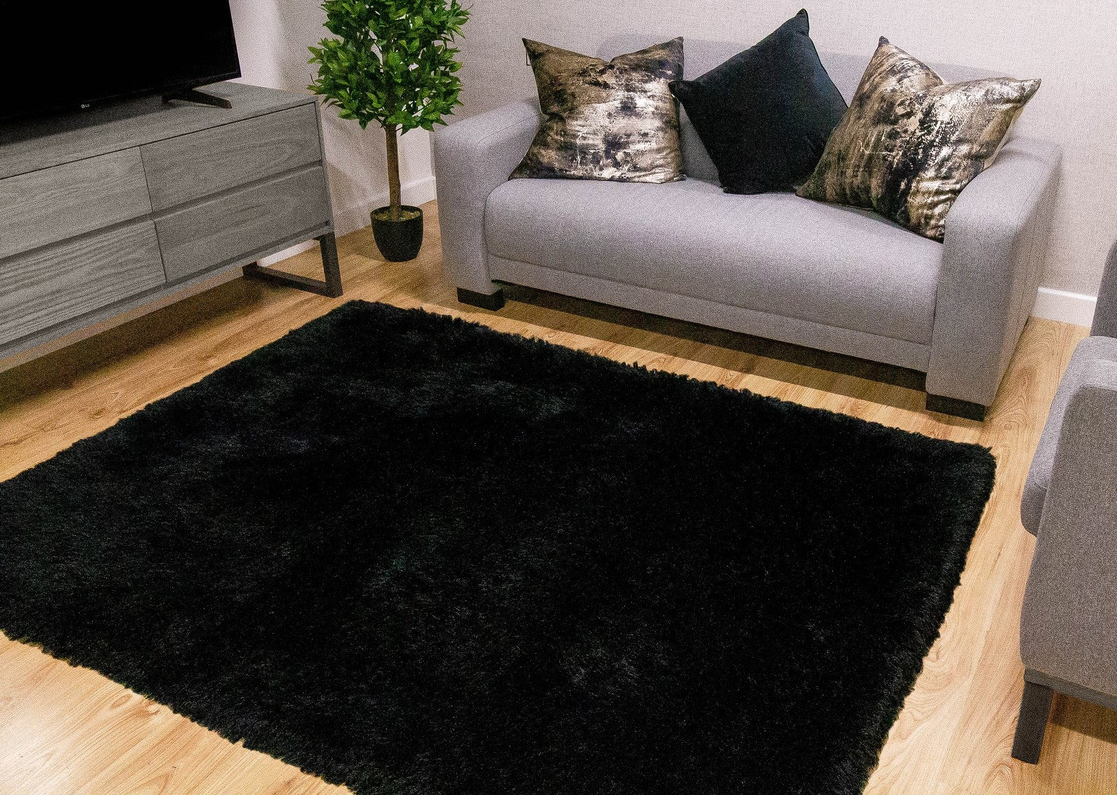 Mayfair Modern High Pile Thick Luxurious Plain Shaggy Rug in Black, Red, Mink, Silver, Ivory, Mauve, Green, Grey, Natural, Pink and Ochre
