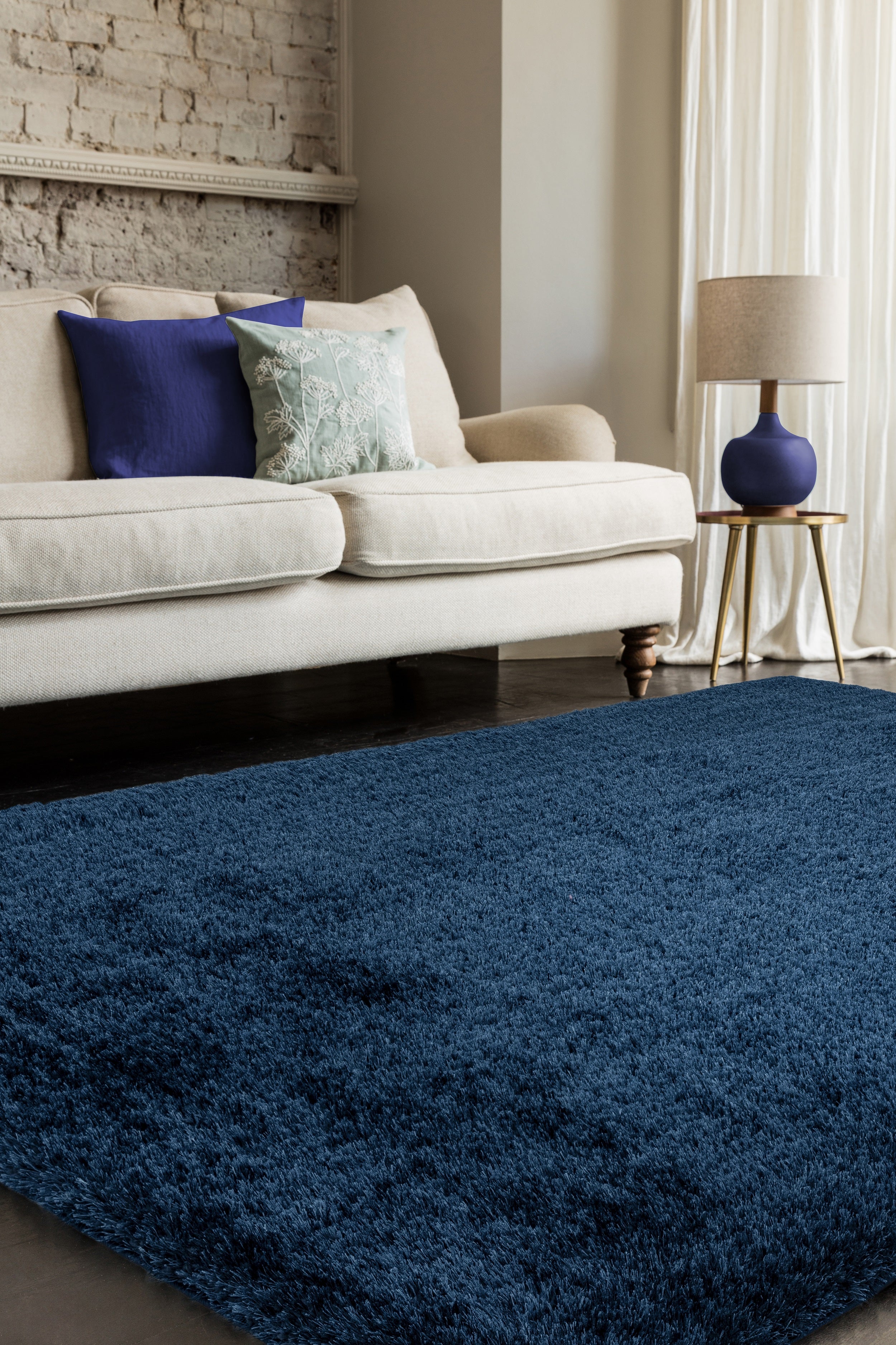 Payton Shaggy Rug Soft Fluffy Living Room Bedroom Silky Shimmer Navy Rug