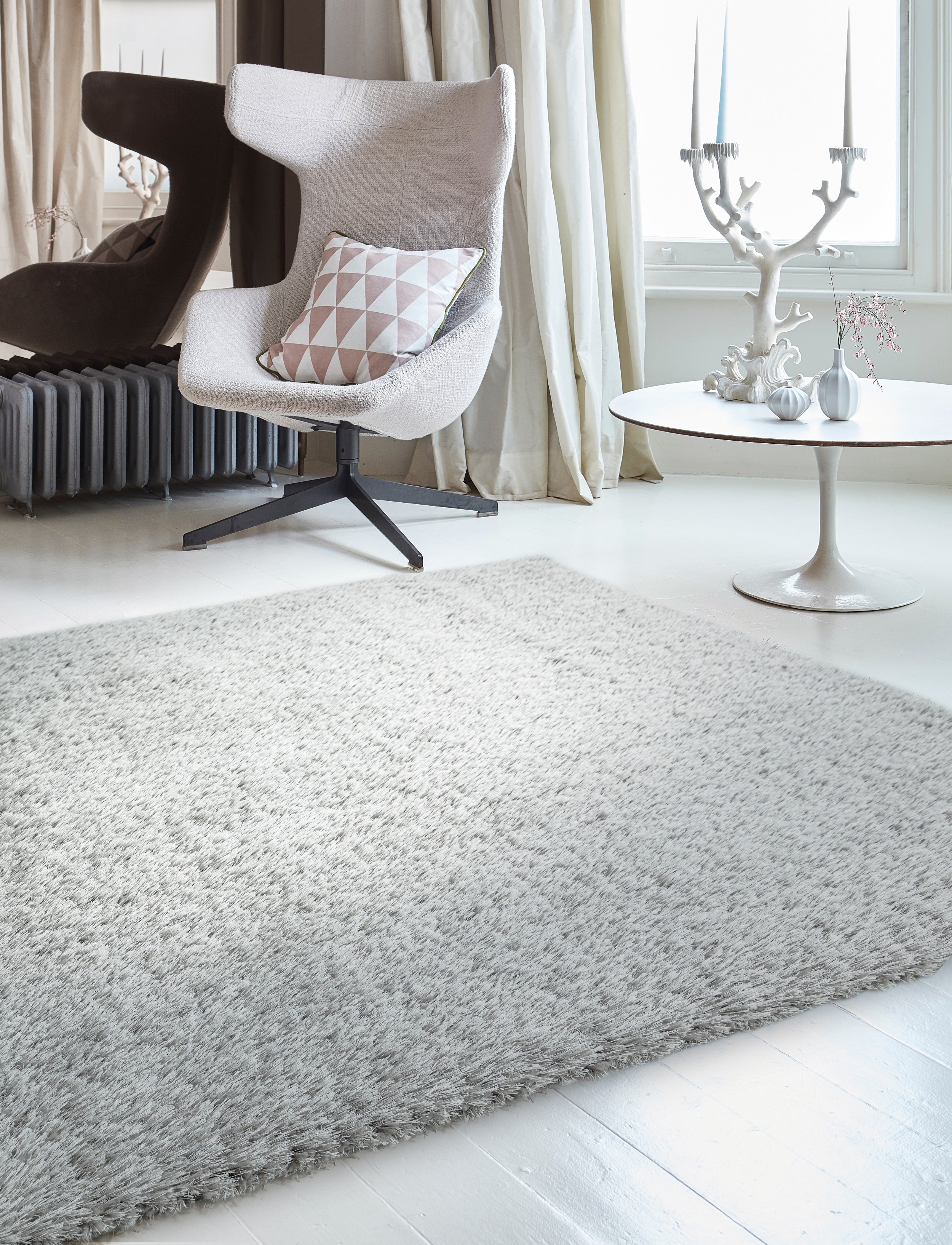 Payton Shaggy Rug Soft Fluffy Living Room Bedroom Silky Shimmer Silver Rug