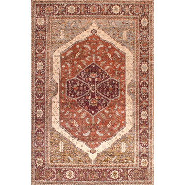 Orient 2529 Traditional Medallion Floral Bordered Rug Hallway in Terracotta, Red, Navy and Cream