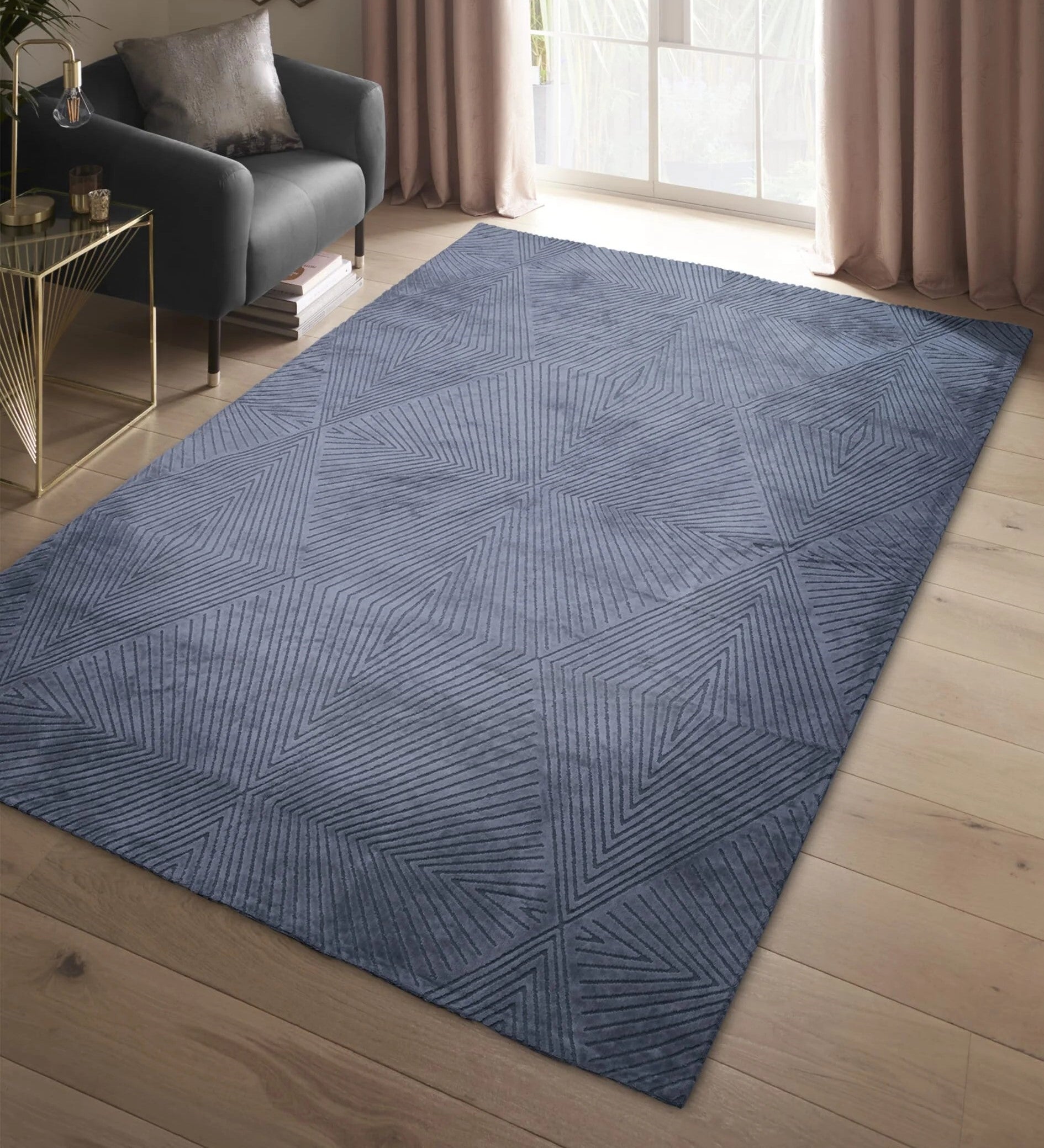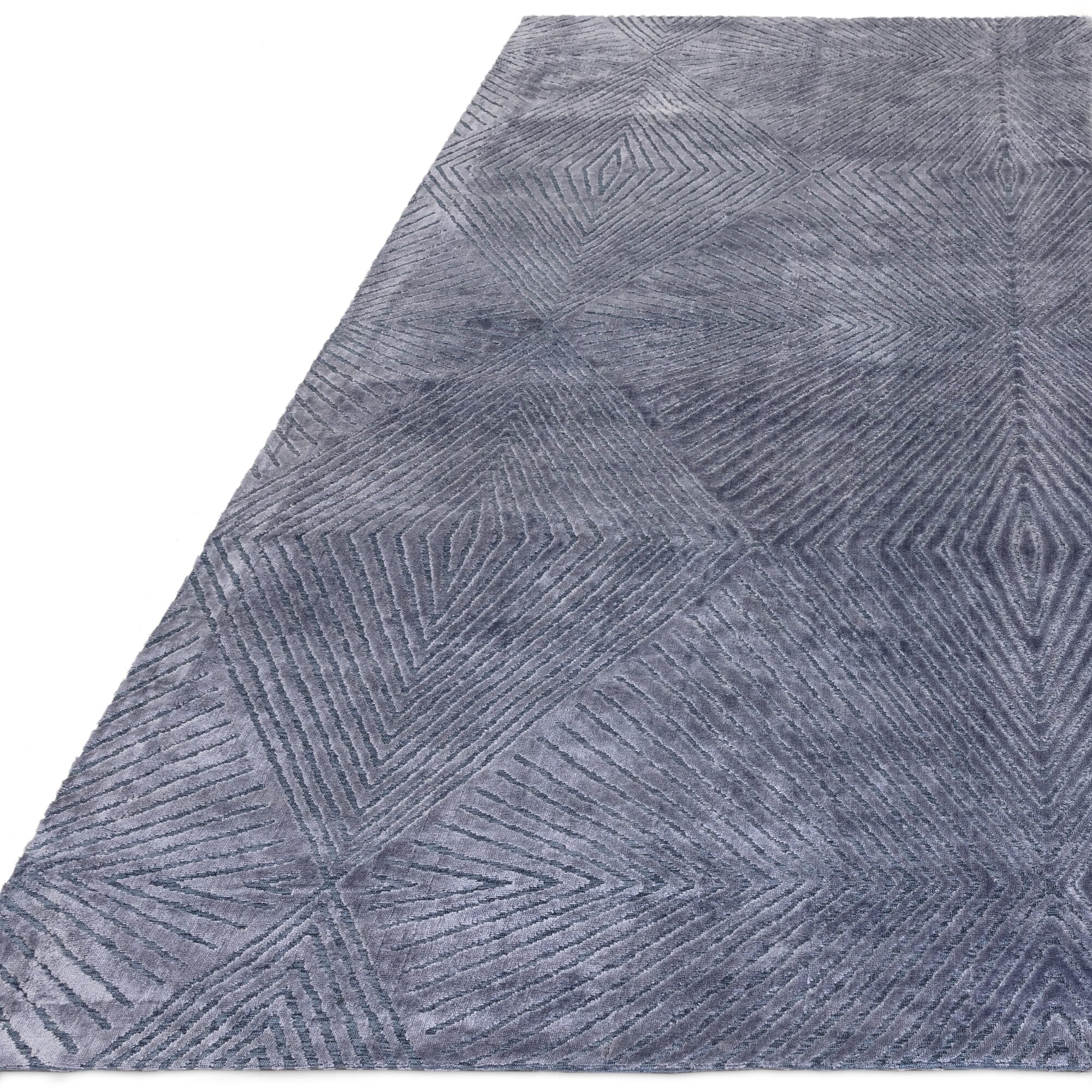Blaize Geometric Rug by Clarke & Clarke Soft Silky Quality Viscose Geometric Design Rug in Blue Twilight