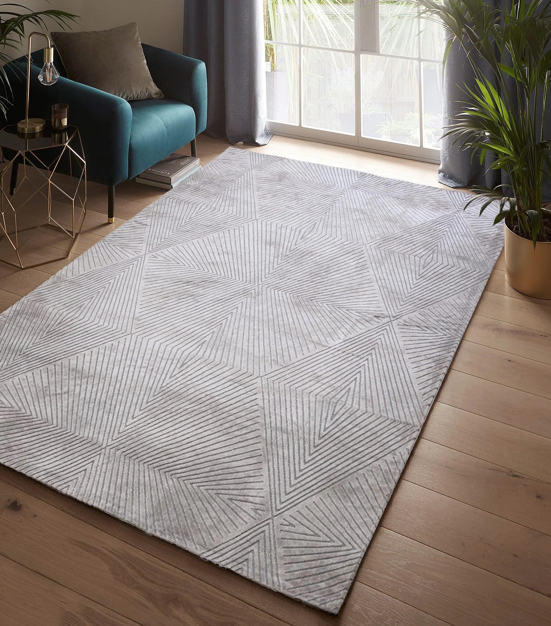 Home Shop Viscose Soft Thick Rugs Blaize Geometric Rug by Clarke & Clarke Soft Silky Quality Viscose Geometric Design Rug in Silver Grey