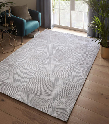 Blaize Geometric Rug by Clarke & Clarke Soft Silky Quality Viscose Geometric Design Rug in Silver Grey