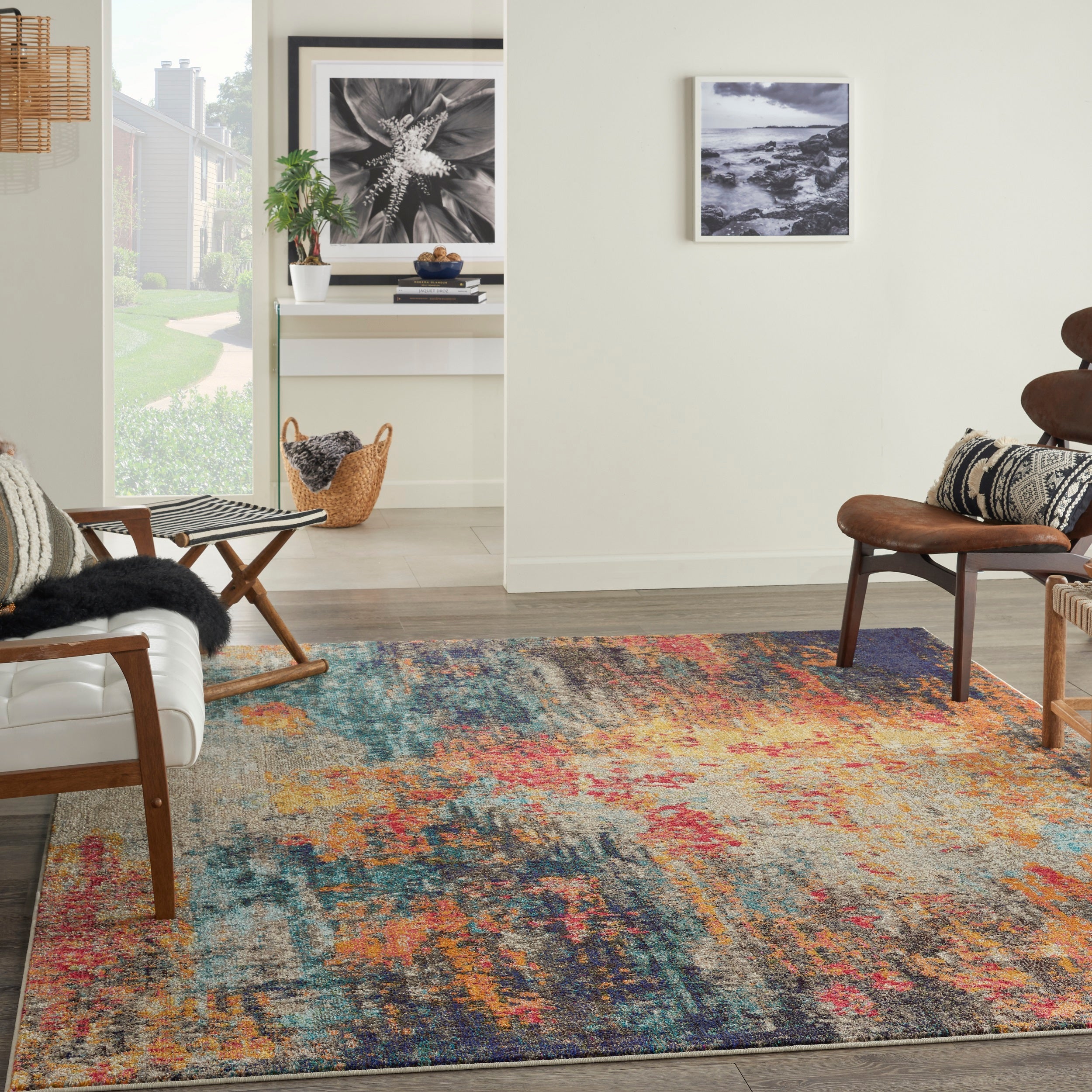 Whether you're decorating your boho sanctuary or adding the finishing touches to your modern loft, this Celestial Collection area rug invites cheerful vibrance to your space. A colorful explosion of blue, pink, orange, yellow, grey, and black tones are designed to command attention. Expertly power-loomed of polypropylene, this visually appealing abstract design creates a wonderfully textured foundation for your bedroom, living room, or home office decor. Cosmic consciousness inspires the Celestial Collection by Nourison. These heavenly area rugs possess a dramatic beauty, with rich, saturated colors that swirl together in unique and vivid designs. Each stunning area rug conveys a sense of movement and energy that verges on divine.