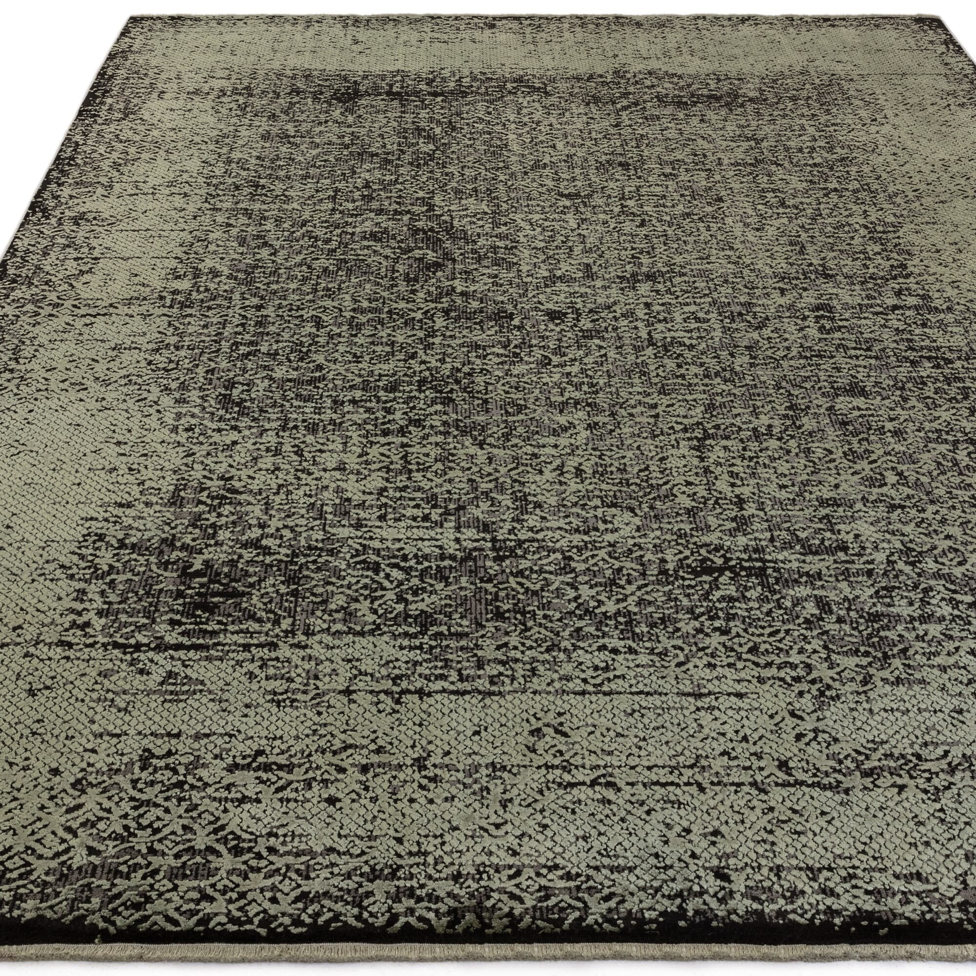 Elodie Contemporary Rug Modern Luxurious Soft Silky Metallic Shine Abstract Rug in Sage Black