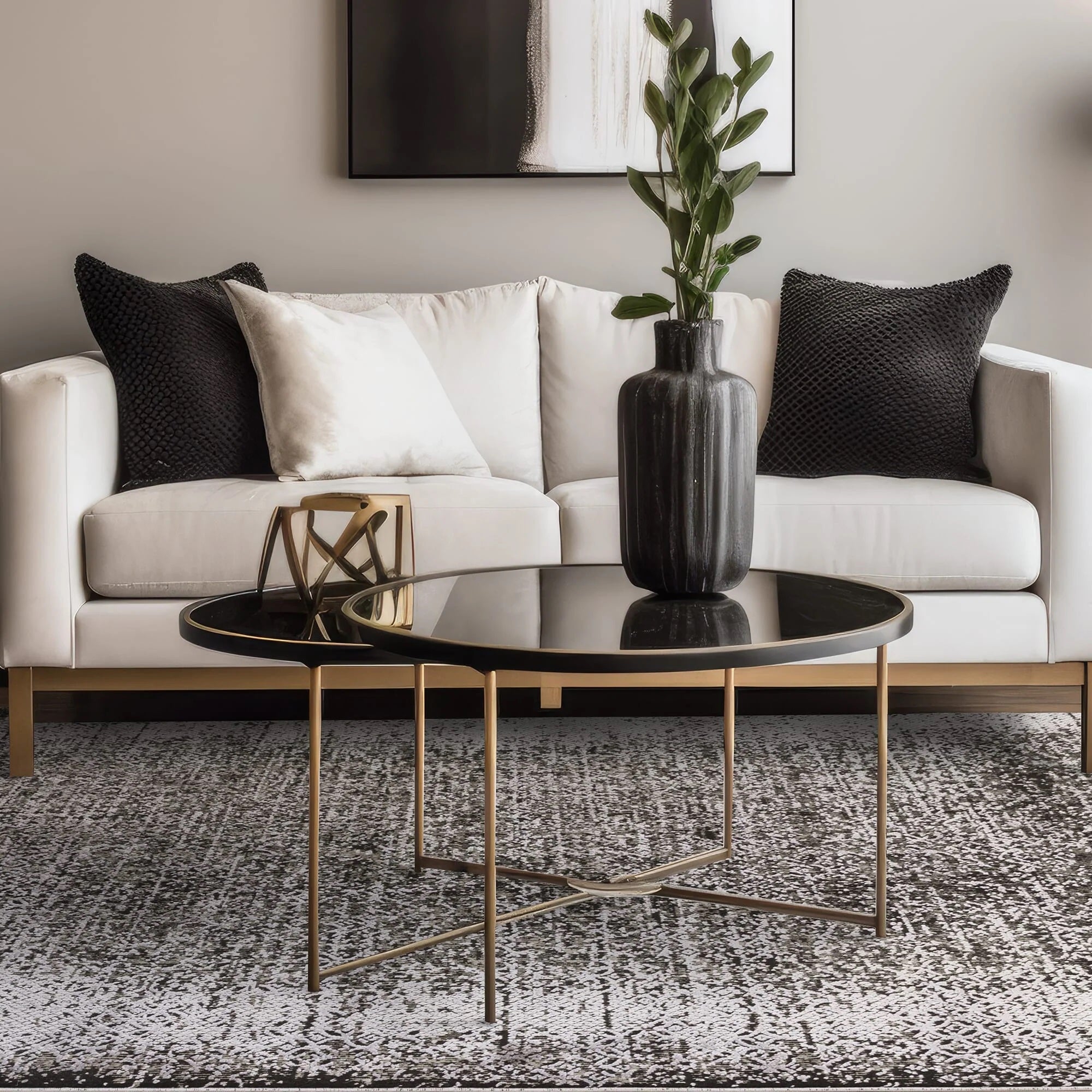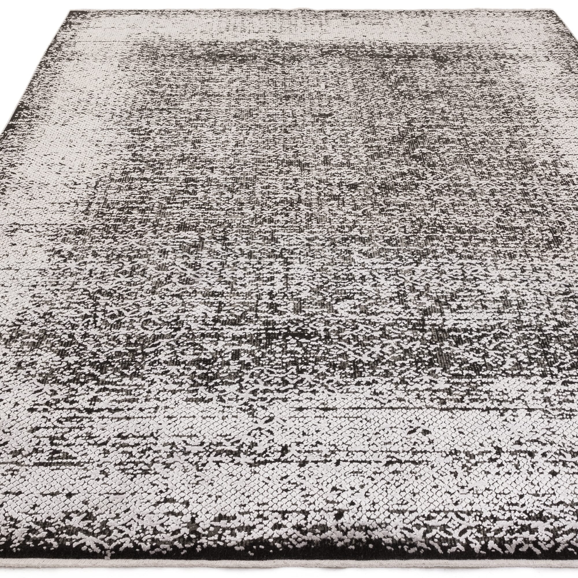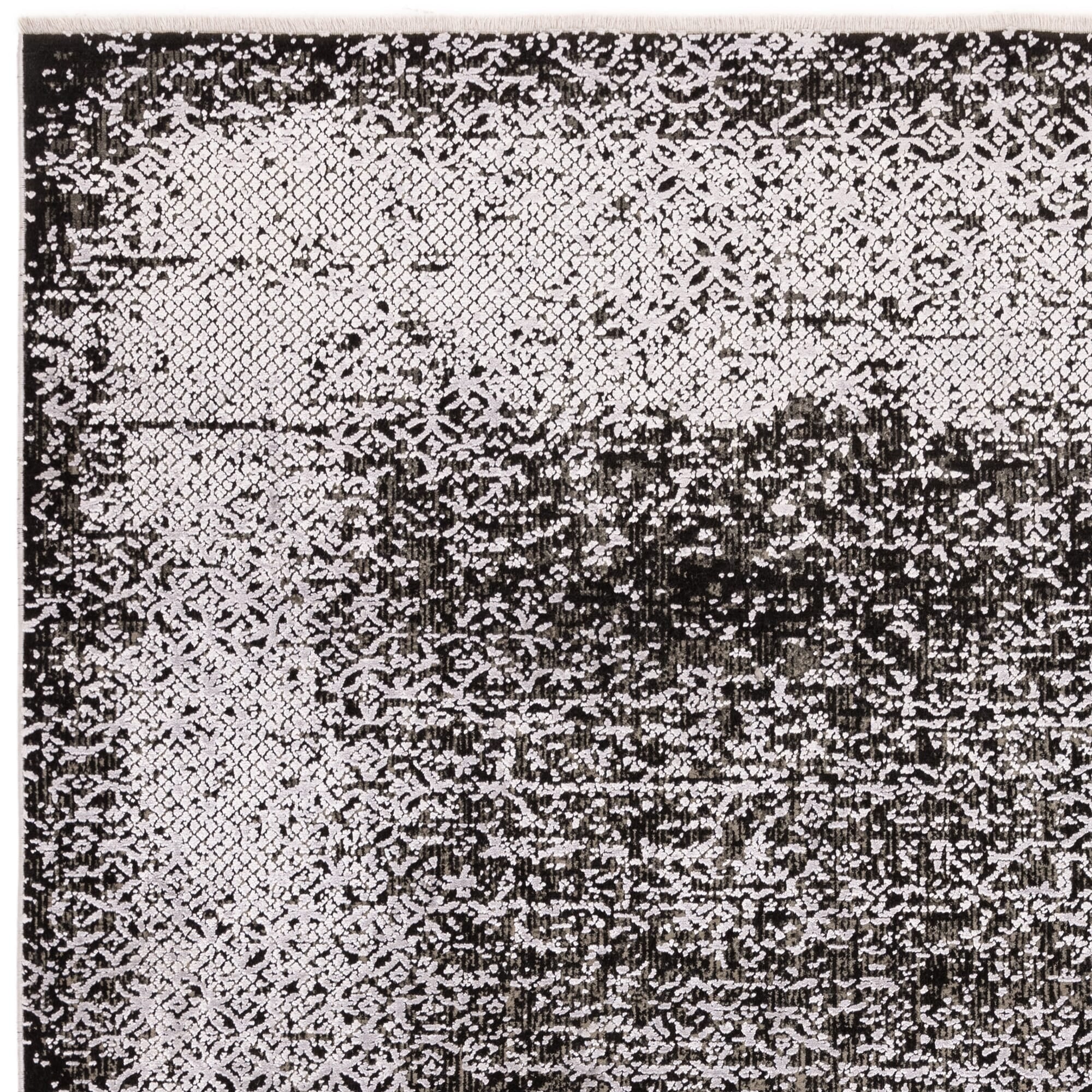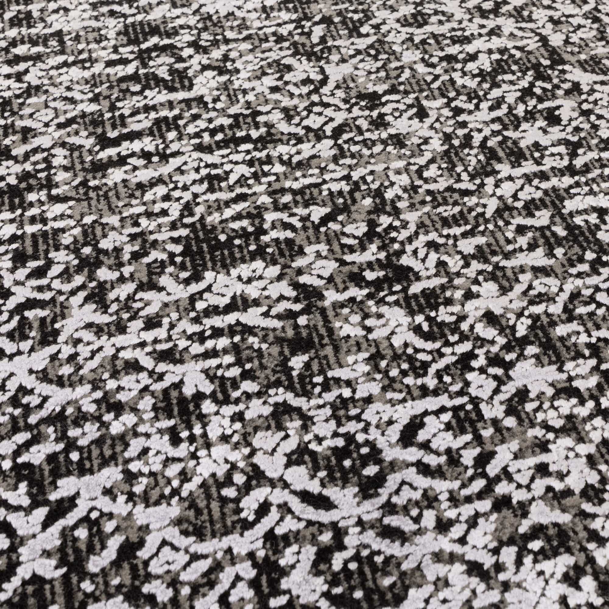 Elodie Contemporary Rug Modern Luxurious Soft Silky Metallic Shine Abstract Rug in Silver Black