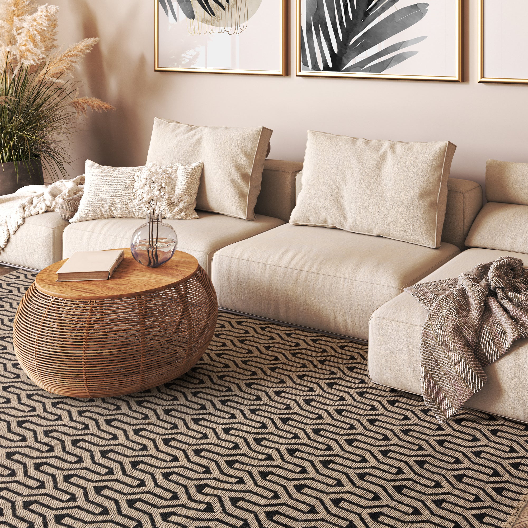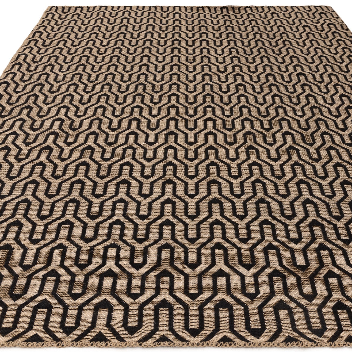 Global Lattice Geometric Flatweave Jute Rug in Black