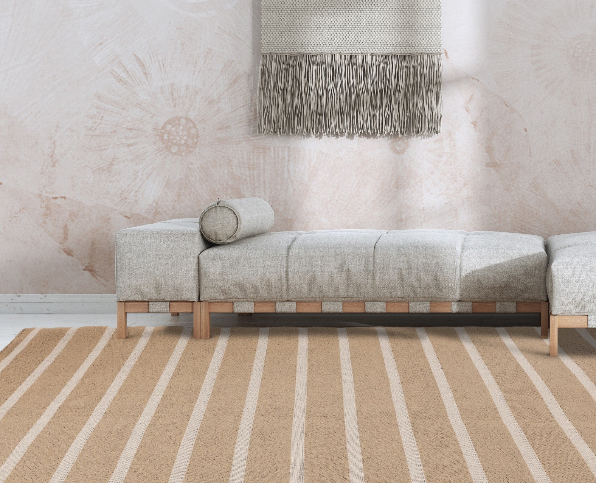 Global Stripe Flatweave Jute Rug in Beige Cream Natural Rug