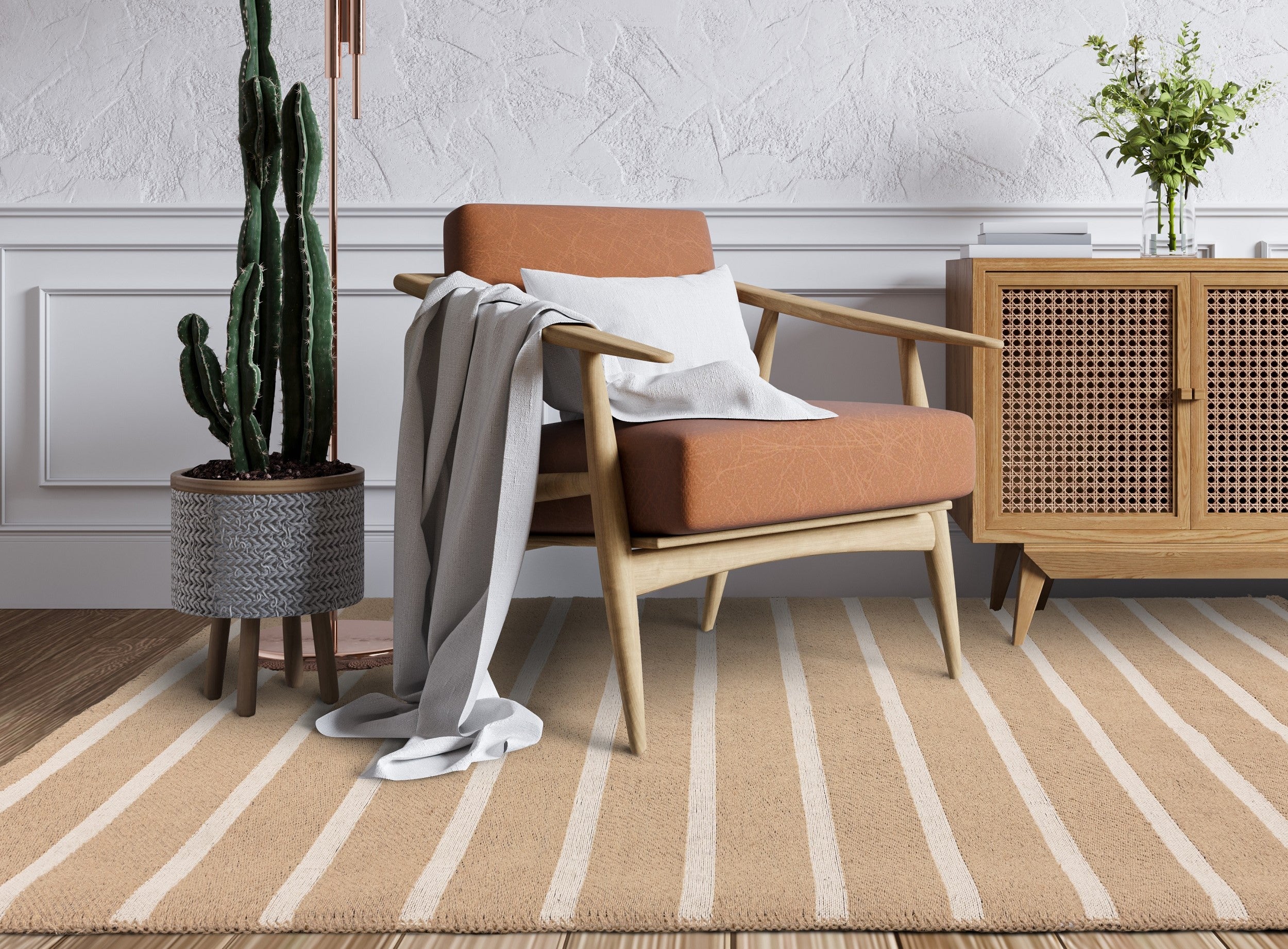 A minimalist dream, this classic jute rug has an earthy base to soften hardwood or tile floors and features an anti-slip back. Global is machine woven in a flat weave design with a mix of cotton and jute for a soft touch. Sustainable and hardwearing, Grove has all the qualities for modern living. The Global Stripe rug has been machine woven in a flat weave design from 80% cotton & 20% jute for a soft to touch, durable, and hardwearing rug. This low pile rug has all the qualities for modern living, and is an ideal option for high-traffic areas, perfect for any hallway or living room where you want to create a coastal vibe. Available in three sizes.