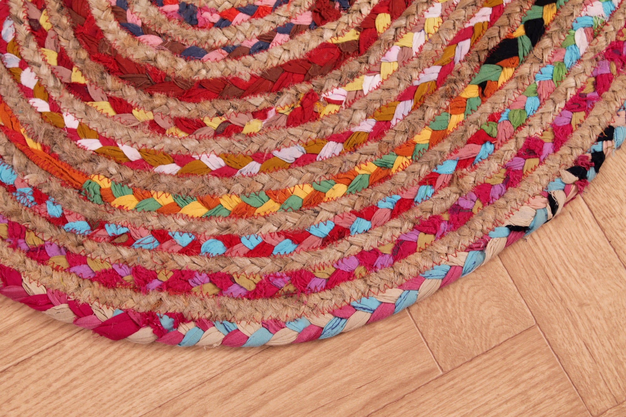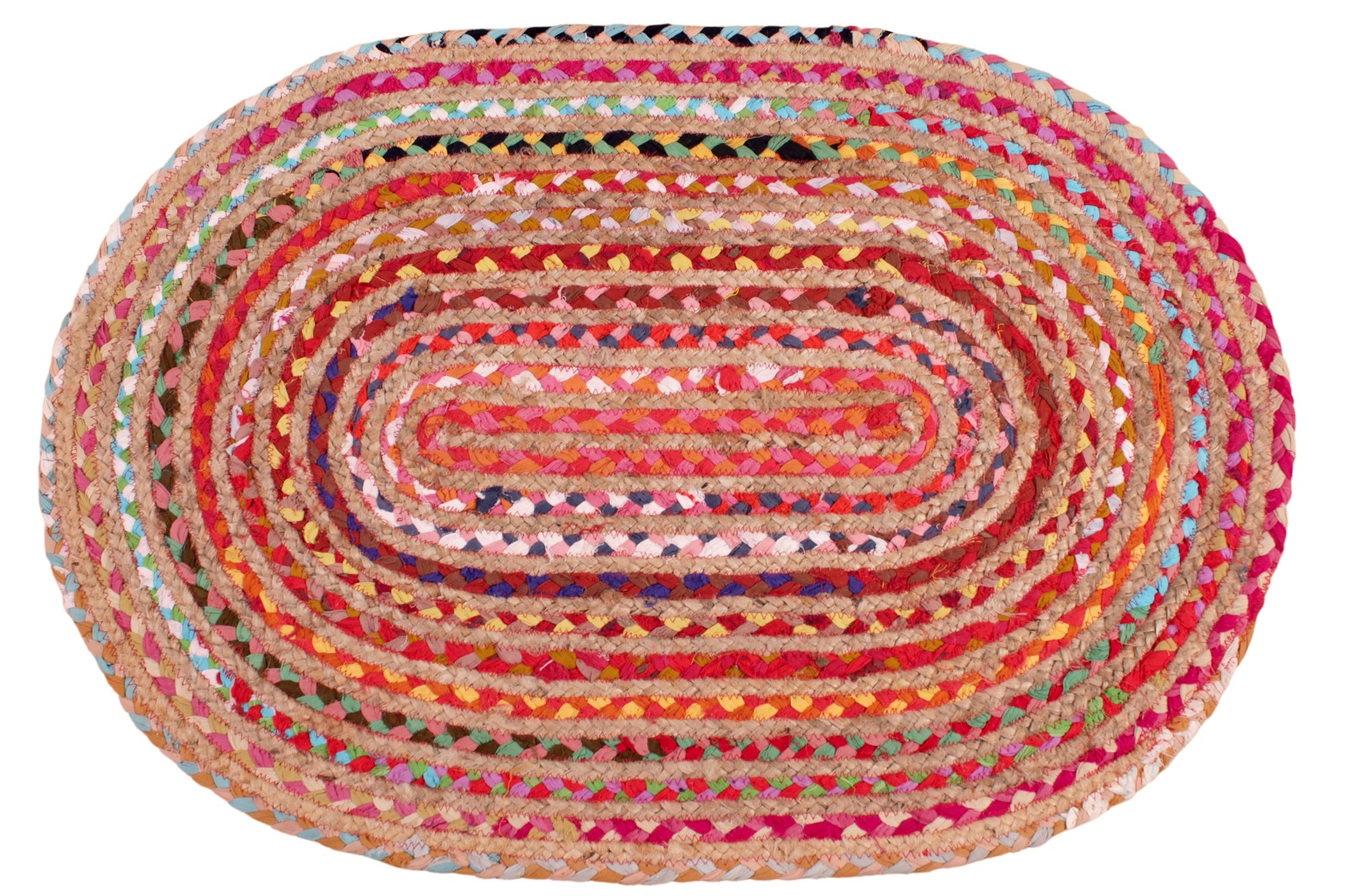 Home Hand Woven Jute Braided 4201 Multi Natural Oval and Circle Rug