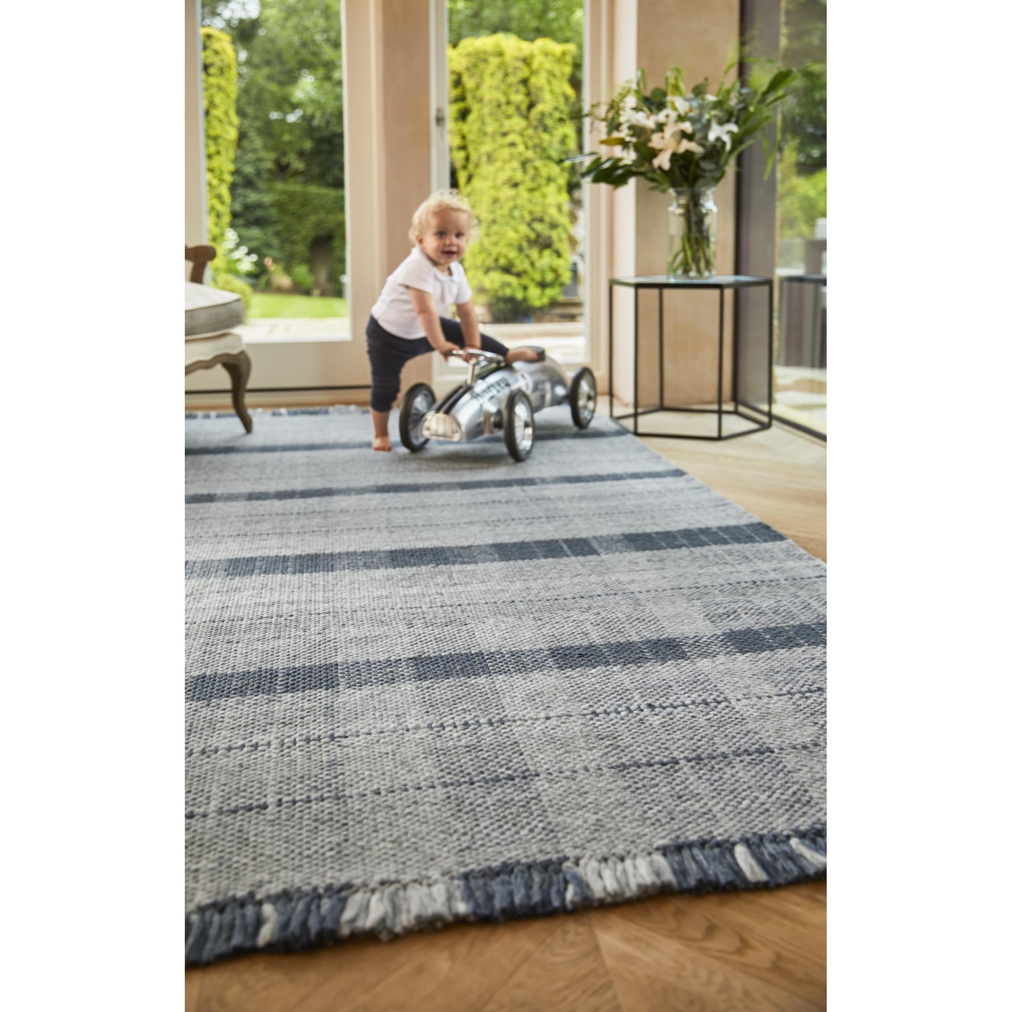 Handmade Origins Highland Check Geometric Rug Hallway in Navy Blue