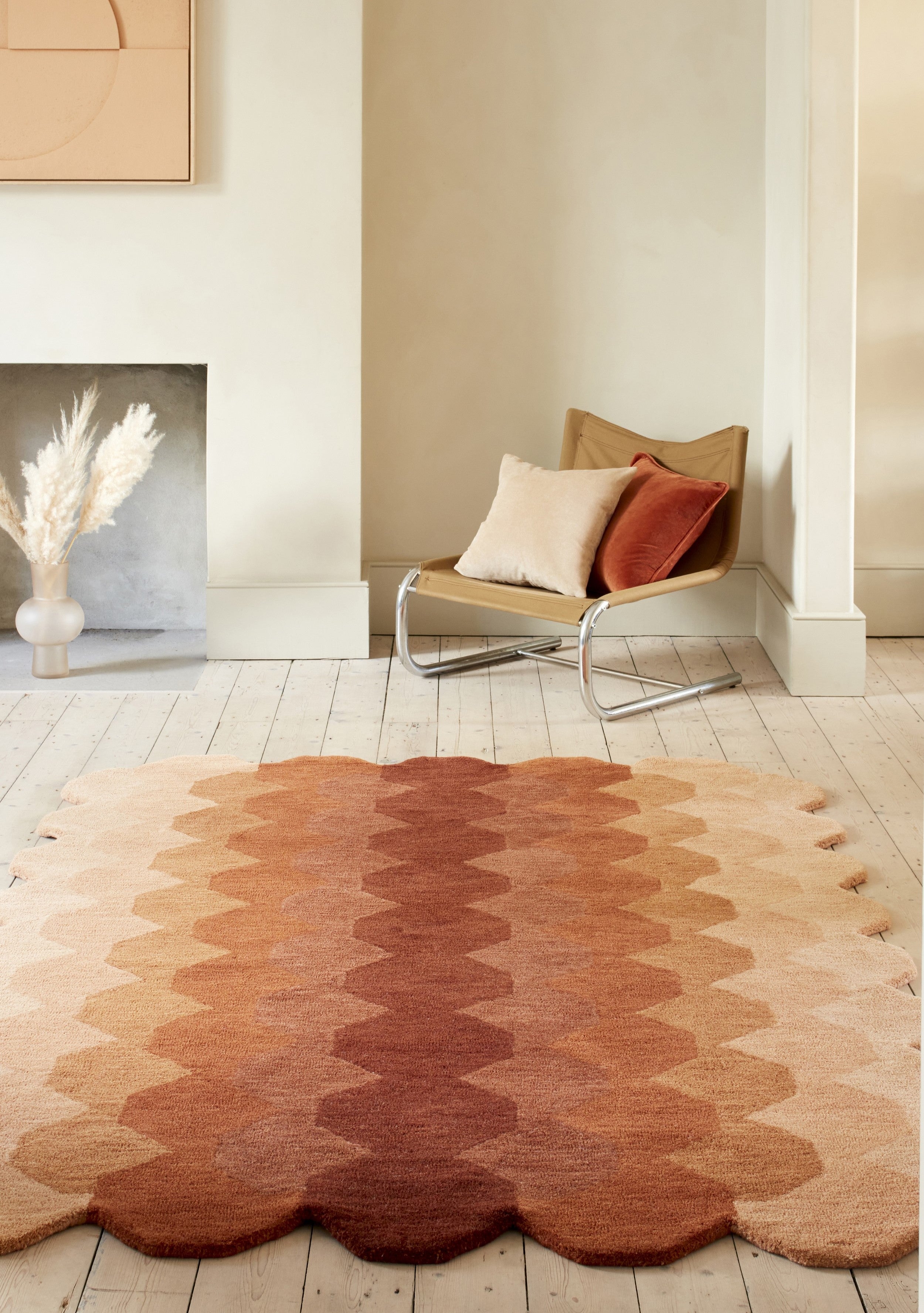 Hive Rug Modern Soft 100% Wool Hand Tufted Elegant Geometric Gradient Effect Rug in Rust