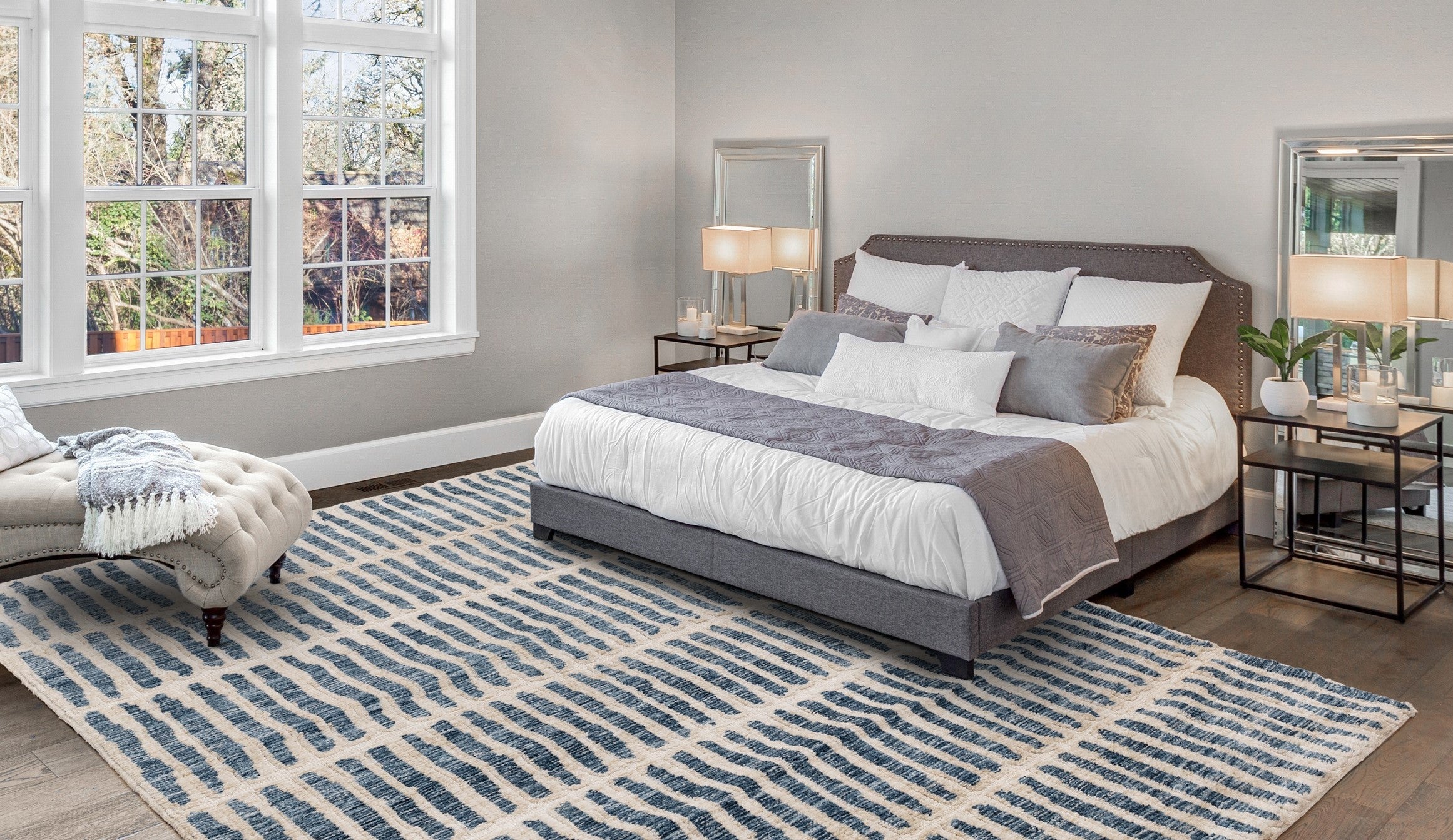 The Grid rug from the Mason range is beautifully soft, featuring a contemporary, artistic, geometric design in a blue and cream colourway, with a high low finish. The Grid rug will make a statement in your home, whether positioned in the living room, bedroom or hallway, this rug will make a great addition to any modern home. The soft pile has been machine woven using a cut and loop technique, made with 100% microfibre polyester which benefits from being durable, lightweight, shape-retaining, and spill resistant. Available in 3 sizes. We recommend using an underlay with this rug. Place it in your living room under the coffee table, in your hallway to create a sophisticated appeal or in your bedroom as a bedside rug, this rug’s sure to accentuate your interior décor.