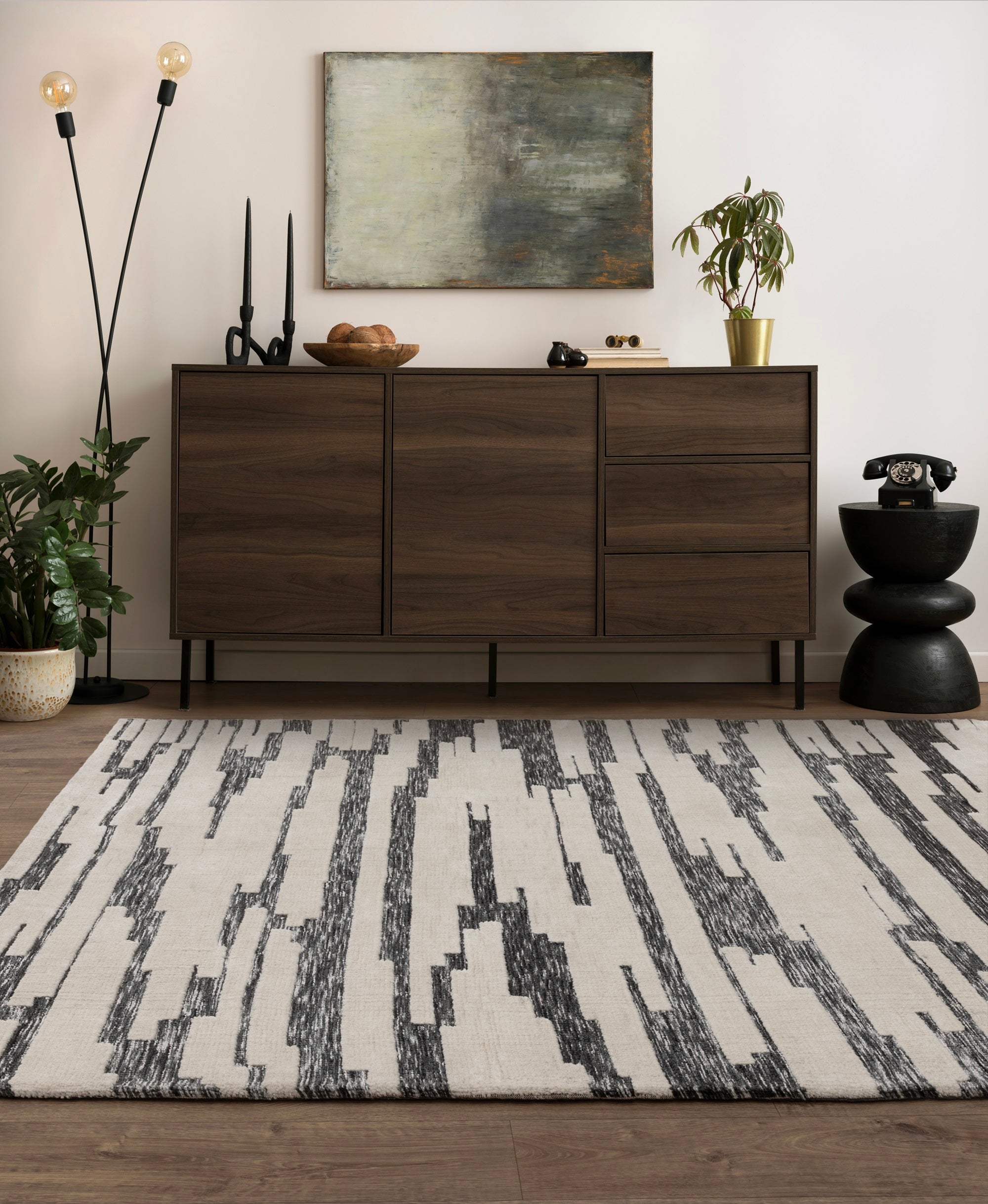 Home Mason Ikat Modern Abstract Rug in Charcoal Grey Cream