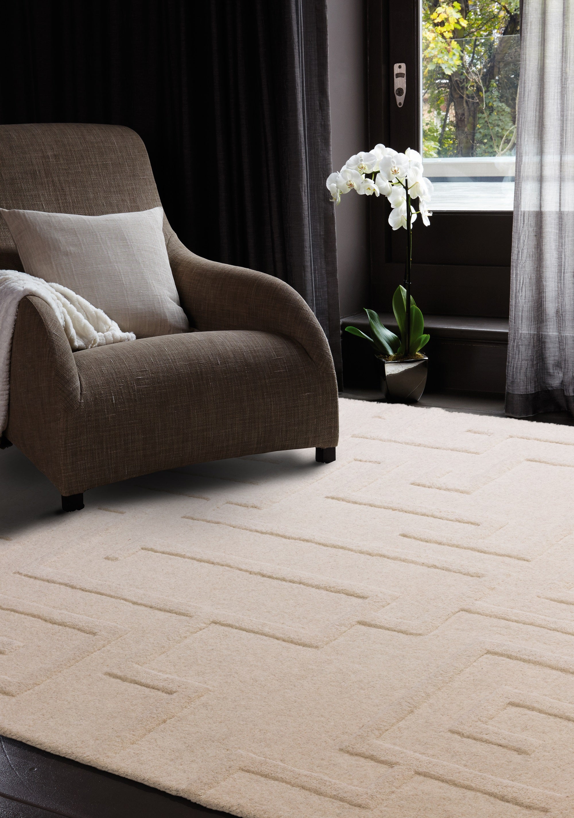 Get lost in the ornate details of the maze collection. This collection features an elegant high low pile on solid colours to create a ccalm oasis in your living space. Hand-crafted by skilled rug artisans, the Maze rug is composed of 100% wool to embrace natural warmth. This rug is ideal for adding texture to contemporary homes. Maze will add a bold statement into your home interior, perfect for living room and bedroom areas, wherever you want to make a statement. This modern classic design is hand tufted using 100% wool for a soft underfoot experience, whilst creating a calm oasis in your living space.
