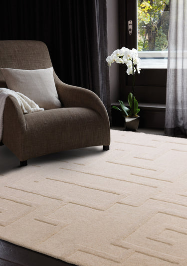 Maze Wool Rug Hand Tufted Modern Classic Rug in Cream