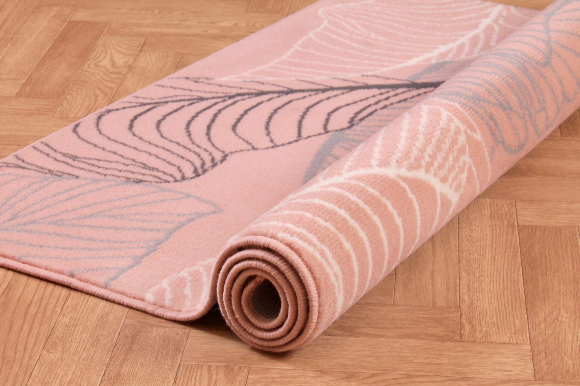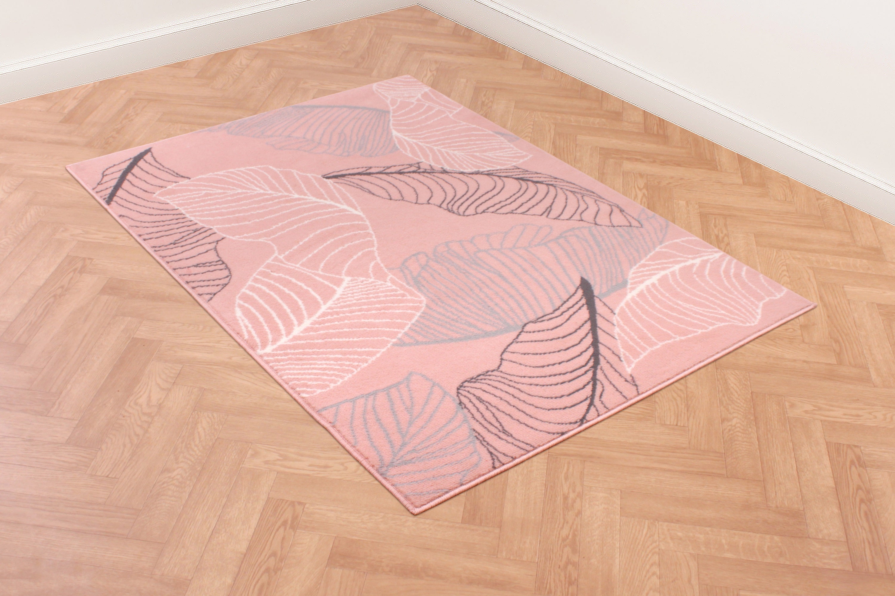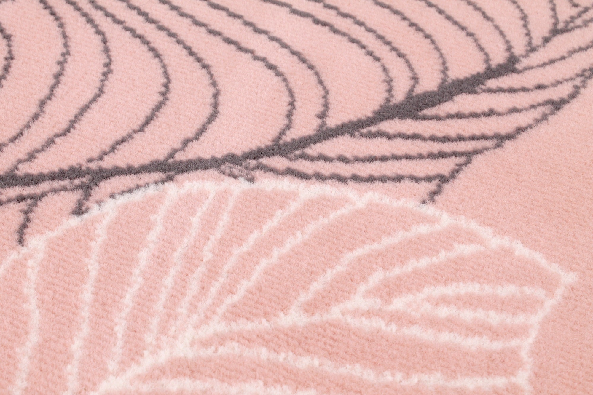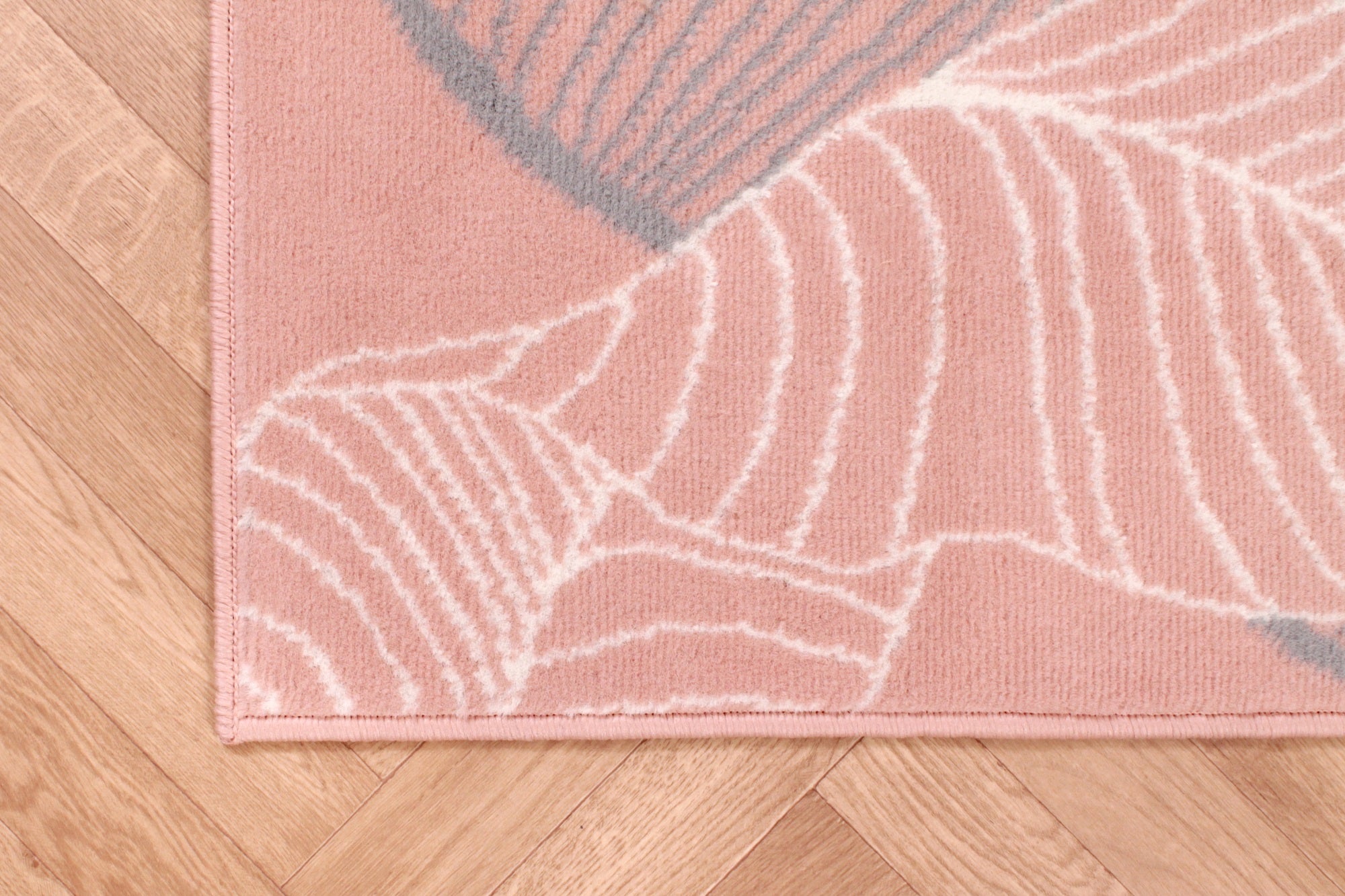 Home Modern Poly Autumn Leaves Rug in Pink, Grey and Navy