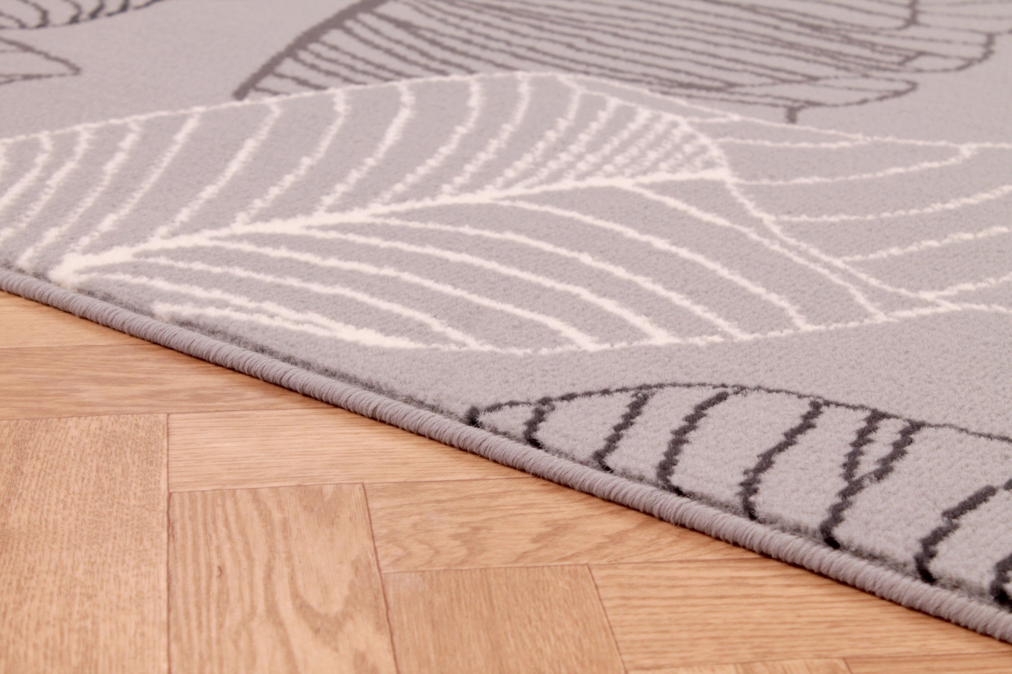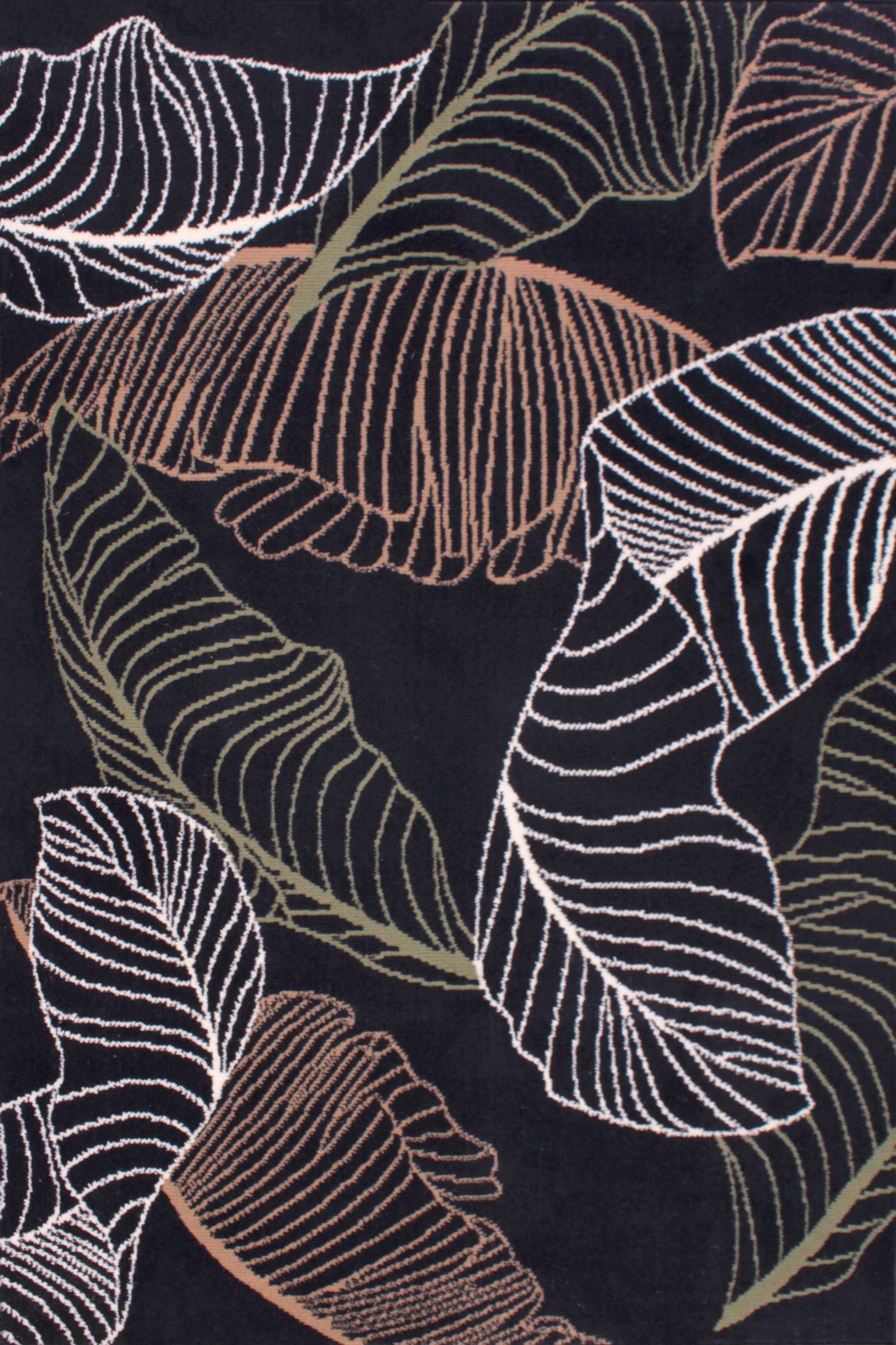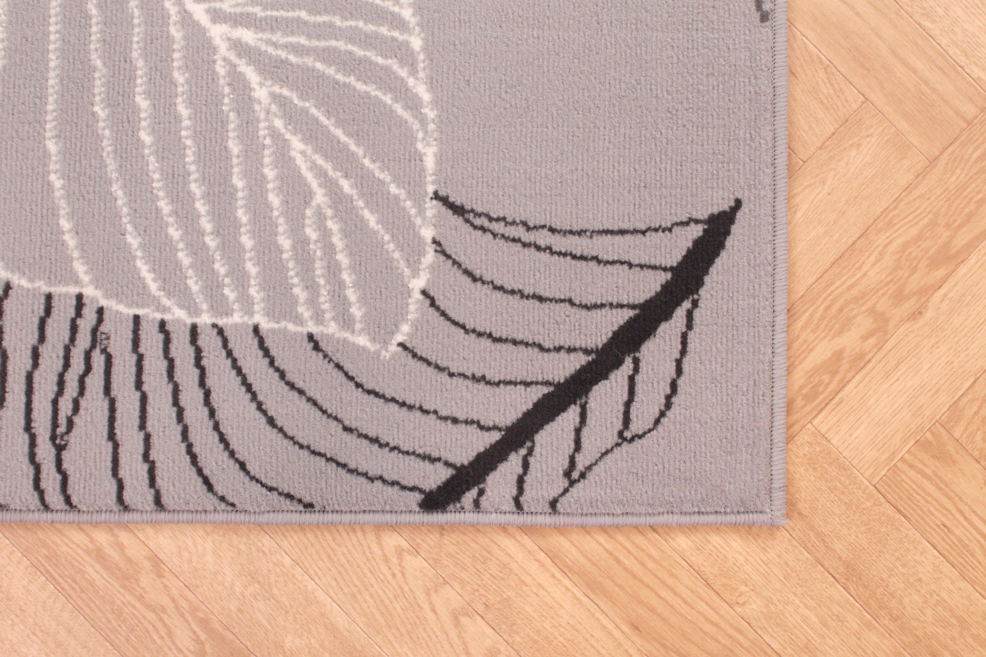 Home Modern Poly Autumn Leaves Rug in Pink, Grey and Navy
